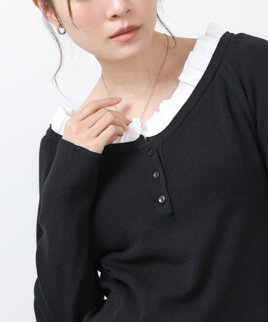 衿フリルニットトップス