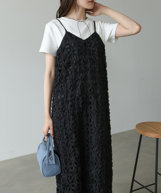 【サイズ展開あり】フラワーレースキャミワンピース