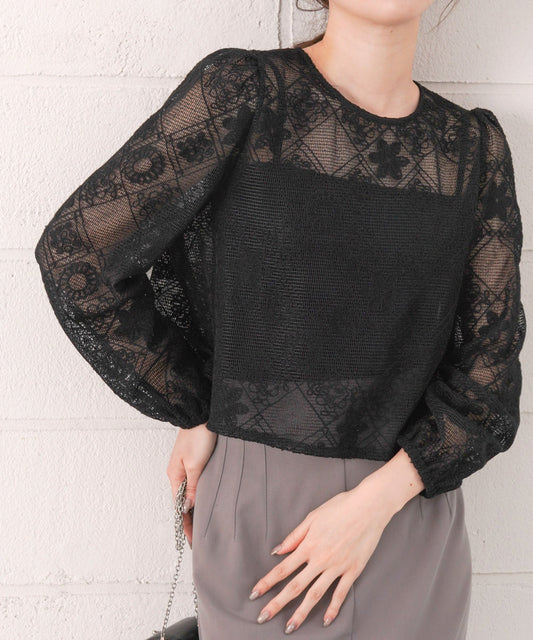 PEARL SHEER VOLUME SLEEVE SHIRT BL