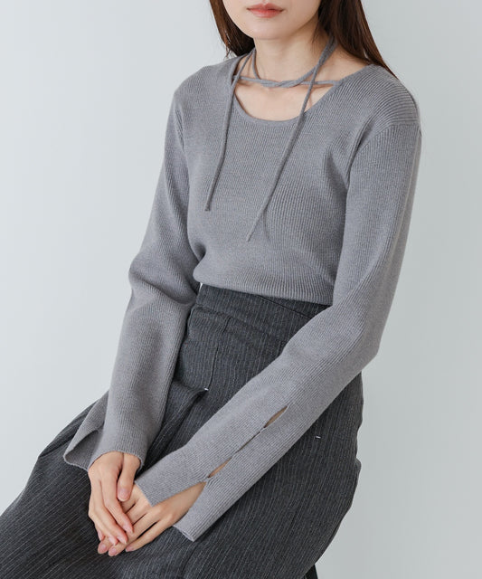 【選べるネック】レイヤード風ドッキングニットワンピ
