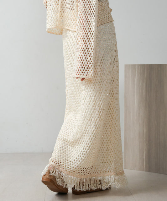 スパンコールメッシュフリンジスカート