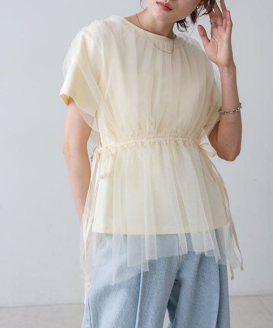チュールドッキングギャザーカットソー