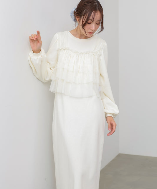 前後2WAYフリルチュールベスト+ベーシックカットソー
