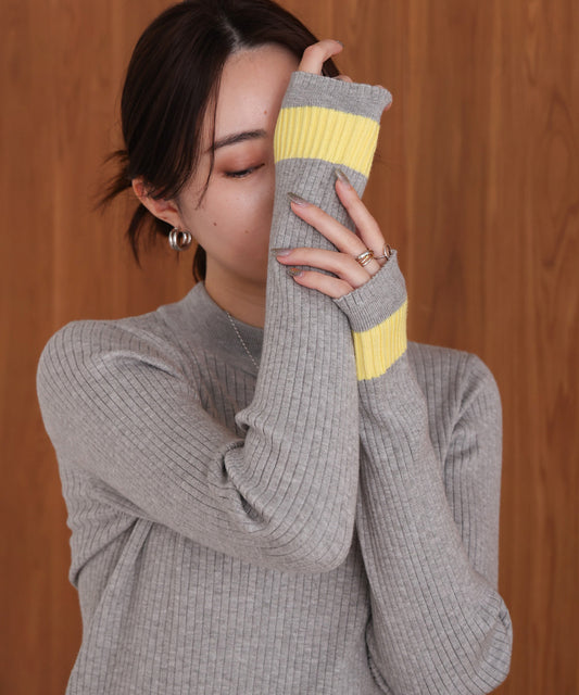 袖ラインベーシックリブニット