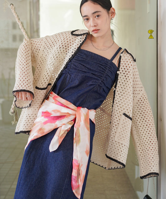 マルチWAY水彩柄サテン大判スカーフ