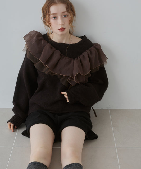 アシンメトリーフリルニットトップス