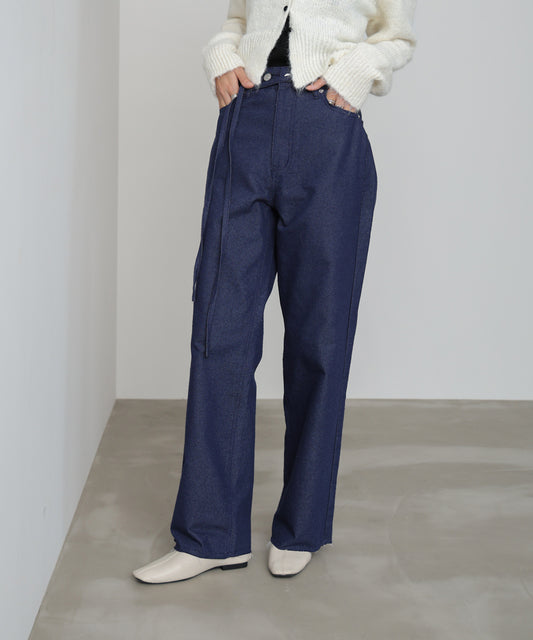 【M・Lサイズ展開】ウエストデザイン ルーズデニムパンツ