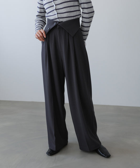ウエストフラップ釦ワイドタックパンツ