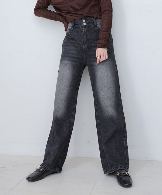【M・Lサイズ展開】ダブルボタンデニムパンツ