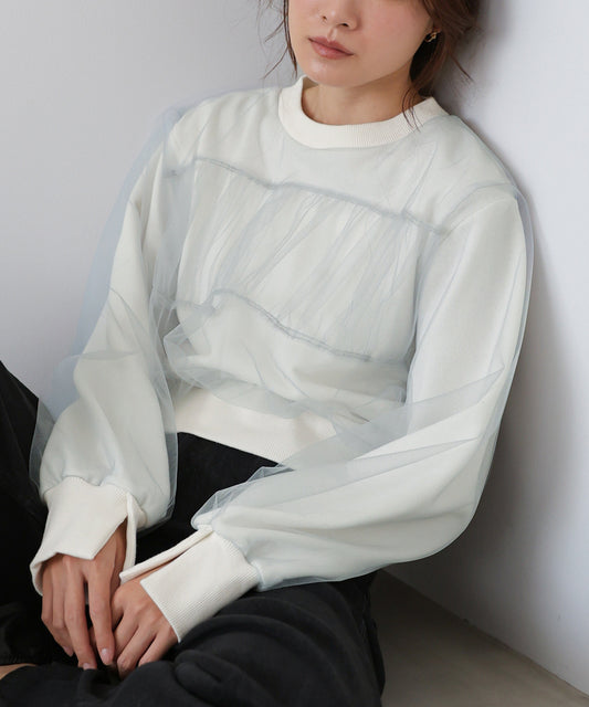ショート丈チュールレイヤードスウェット