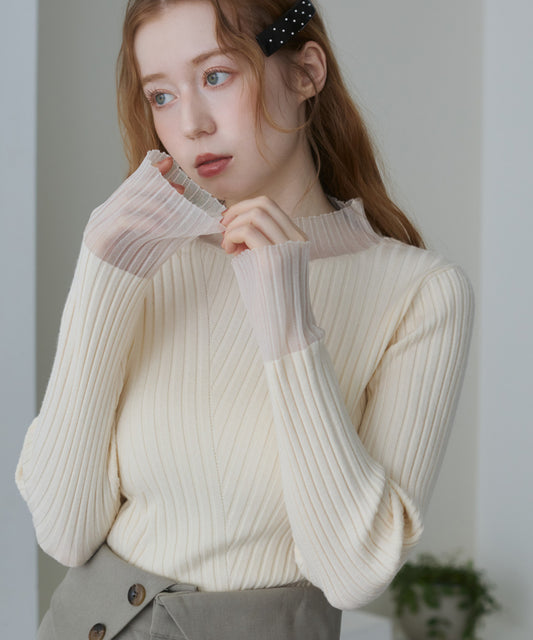 【選べるネック】チュールレイヤードリブニット
