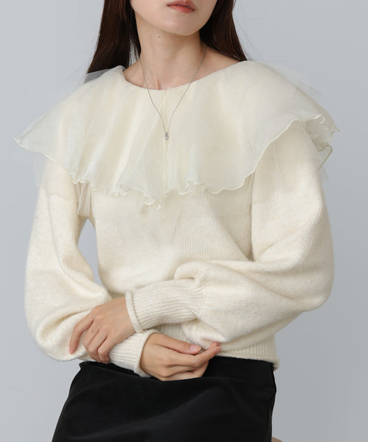 チュールラッフルカラーニットトップス