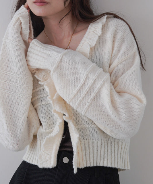 起毛フリルカラーホックカーディガン