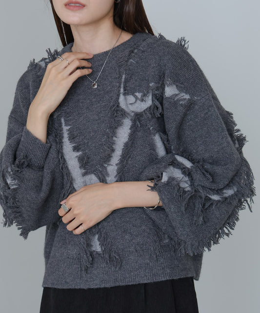 シャギージャガードニットトップス