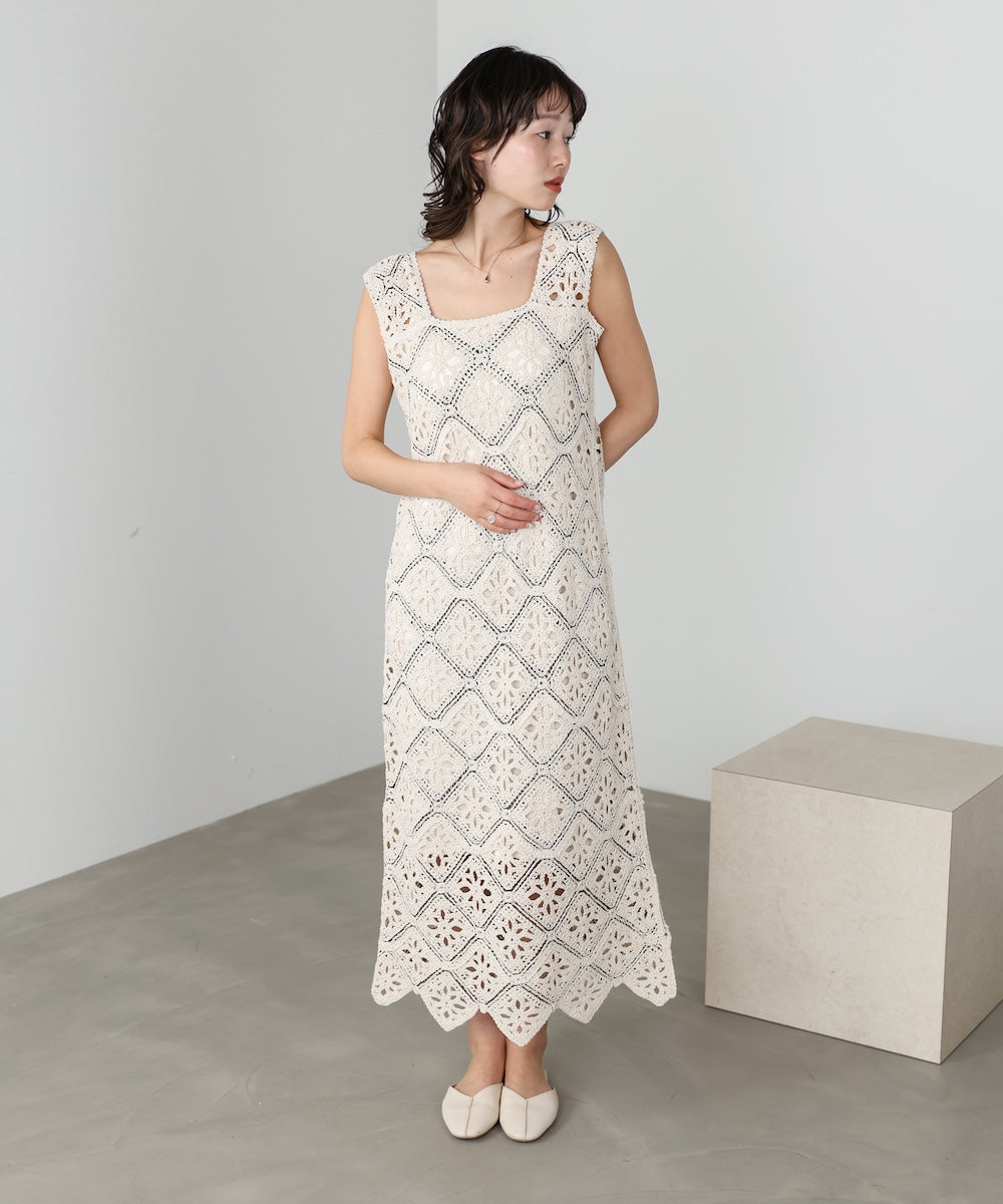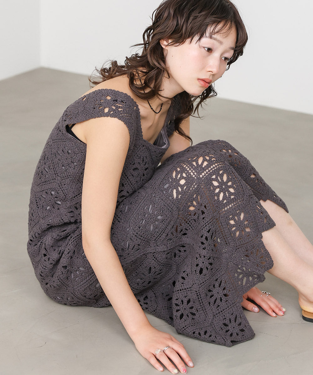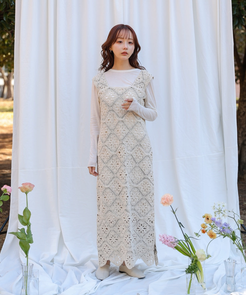 【選べるサイズ展開】ロムバスクロシェロングワンピース