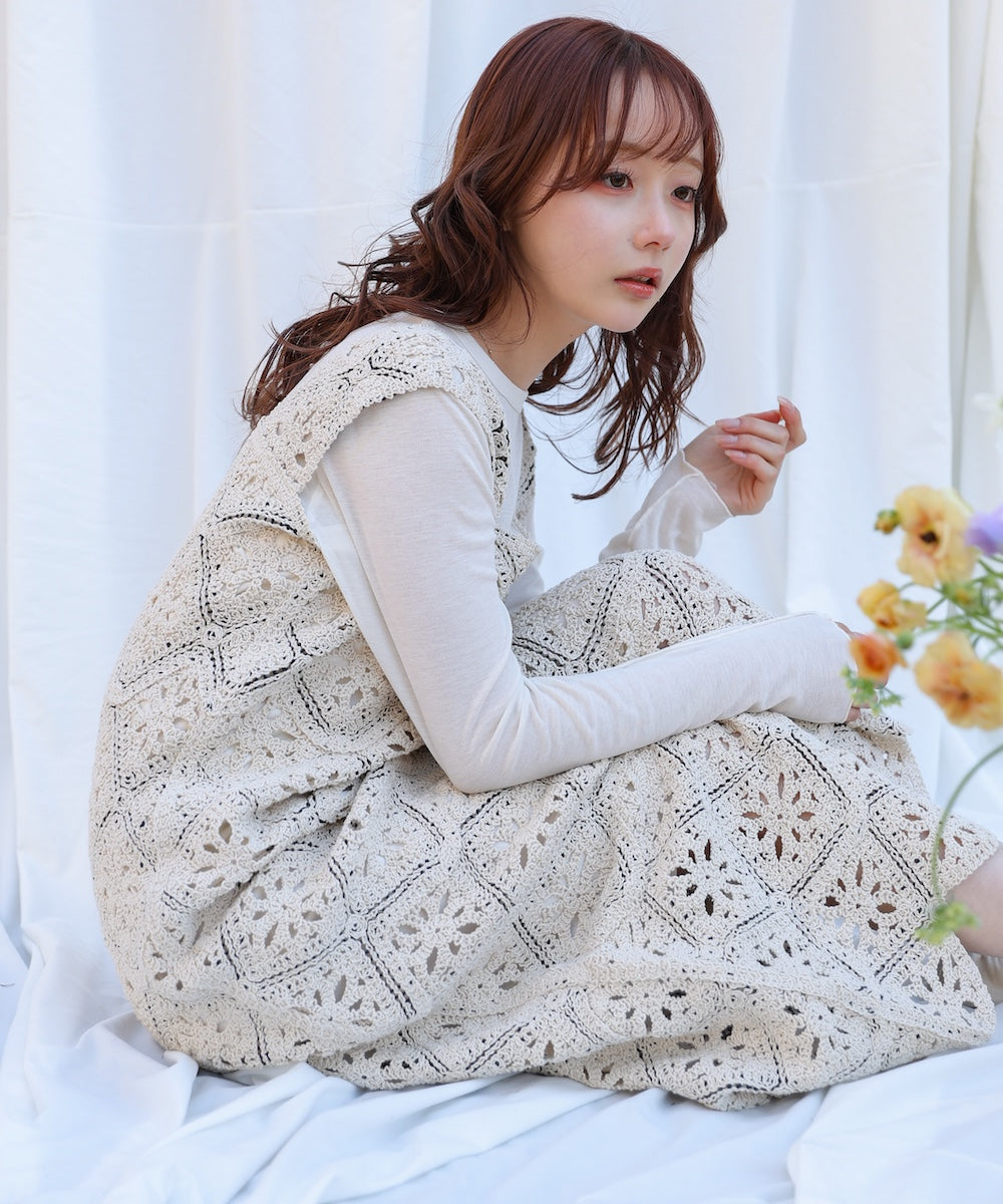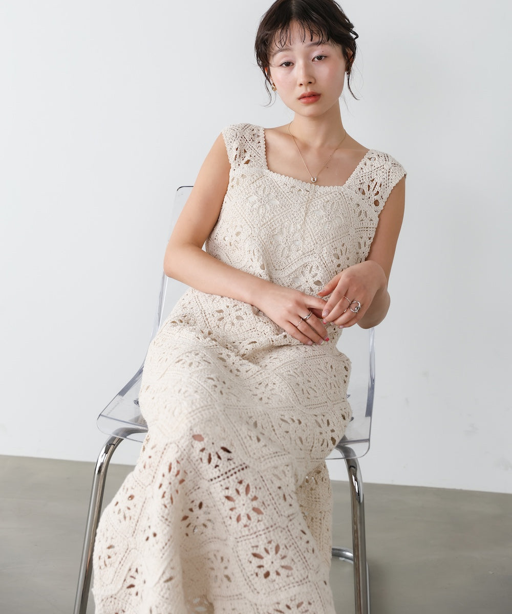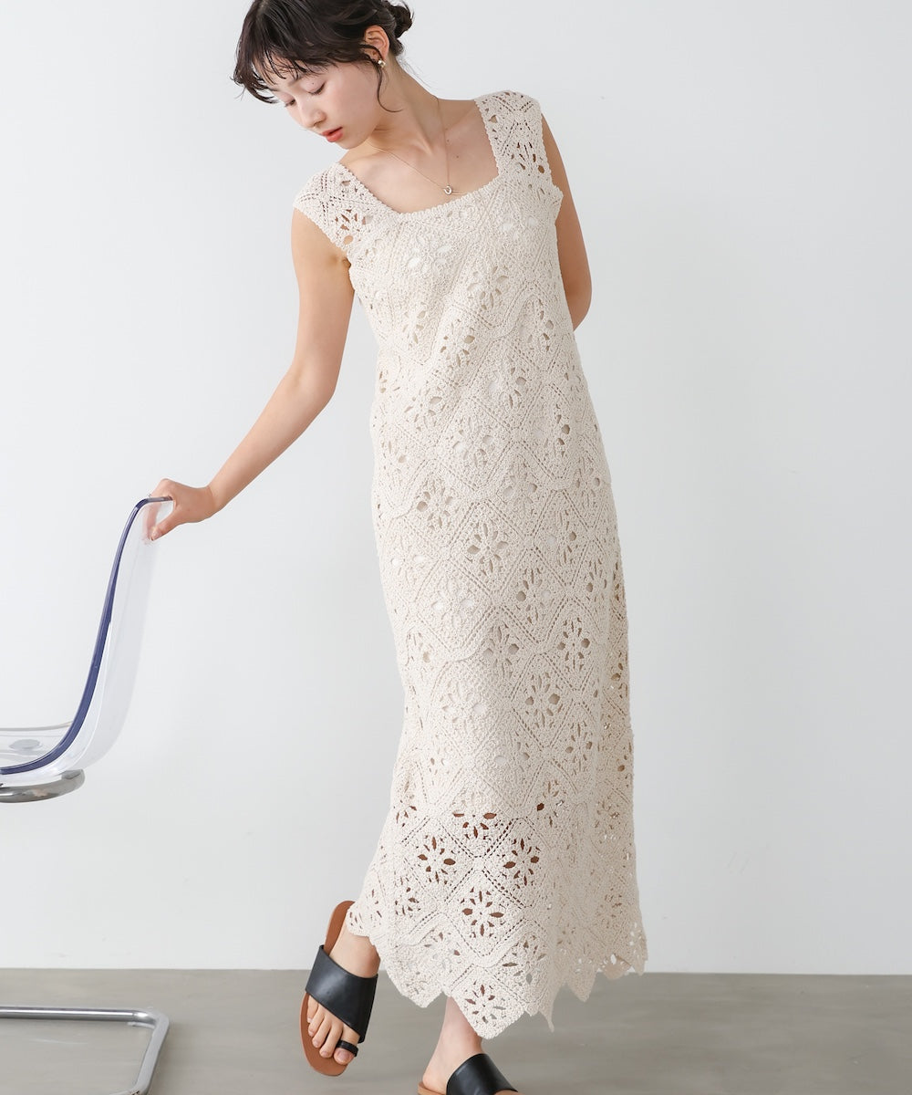 【選べるサイズ展開】ロムバスクロシェロングワンピース