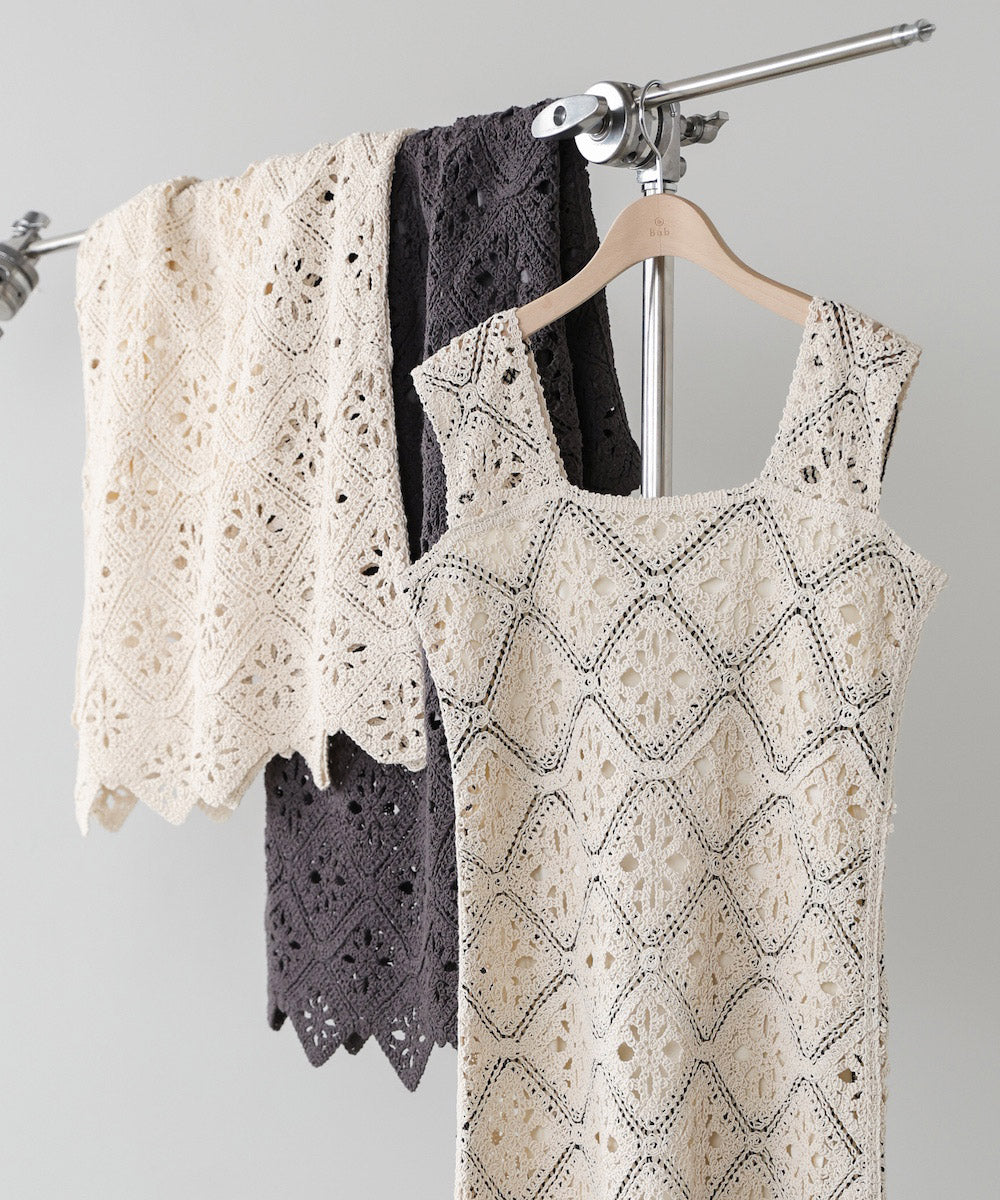 Babで大人気のクロシェワンピースシリーズから、新デザインが登場。繊細なクロシェ編みがヴィンテージライクな雰囲気を演出し、1枚で着映えするロングワンピースです。程よく広がるシルエットとナチュラルな素材感が、柔らかく女性らしい印象に。シーズンムードを高めてくれる軽やかなデザインで、デイリーからお出かけまで幅広く活躍します。配色デザインのAカラーは、コントラストがコーディネートのアクセントに。Babらしいニュアンス感のあるスタイリングが楽しめる一枚です。