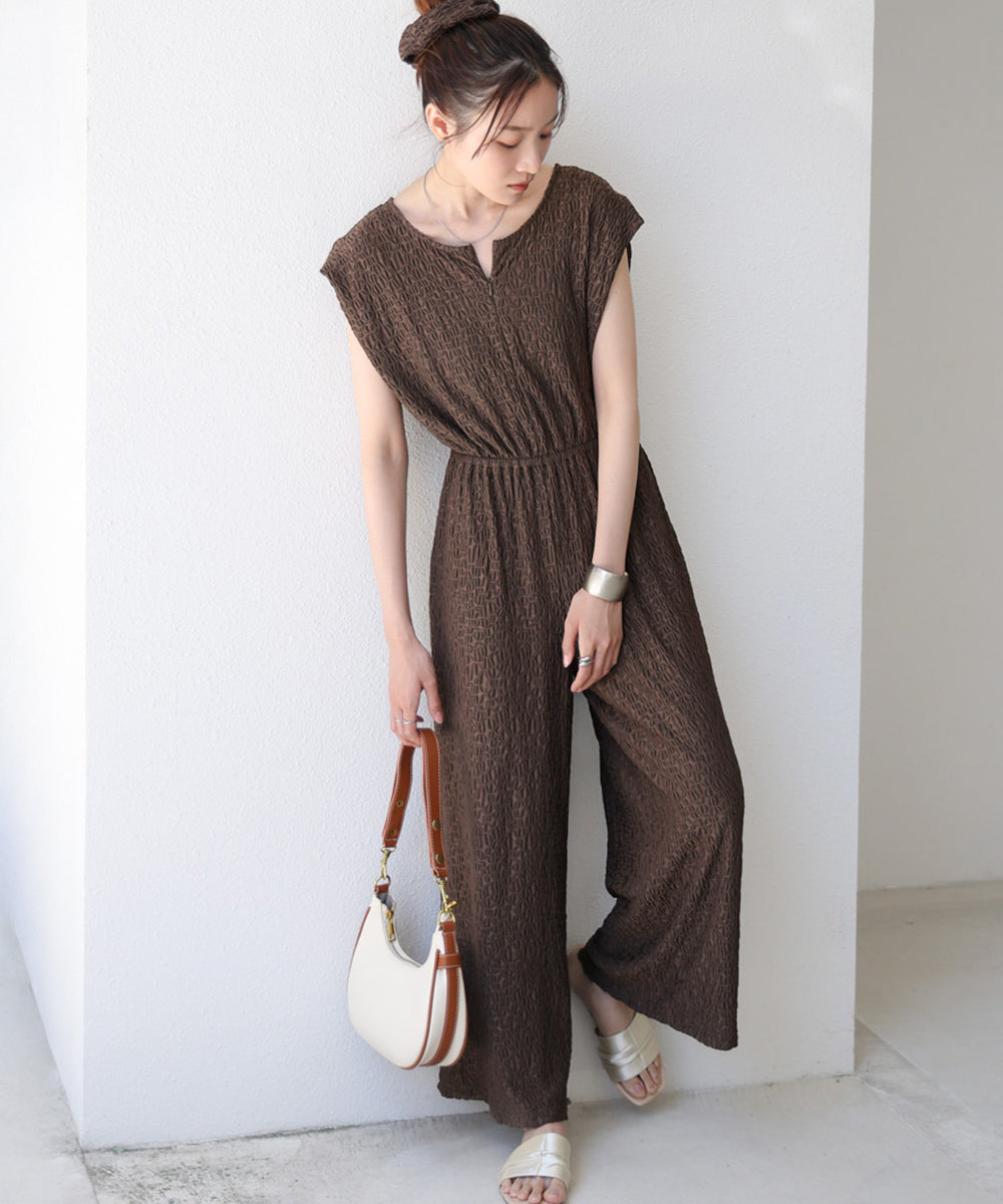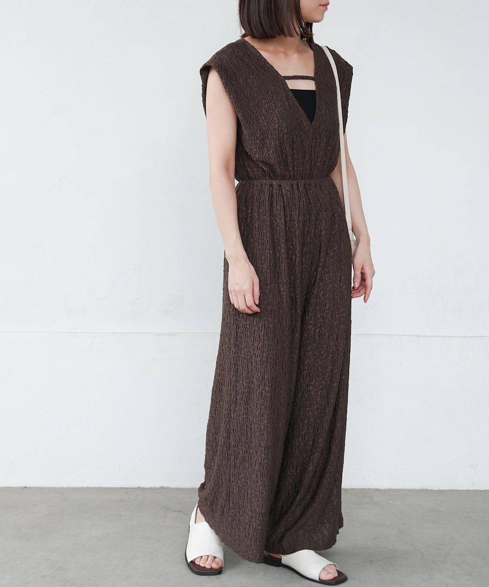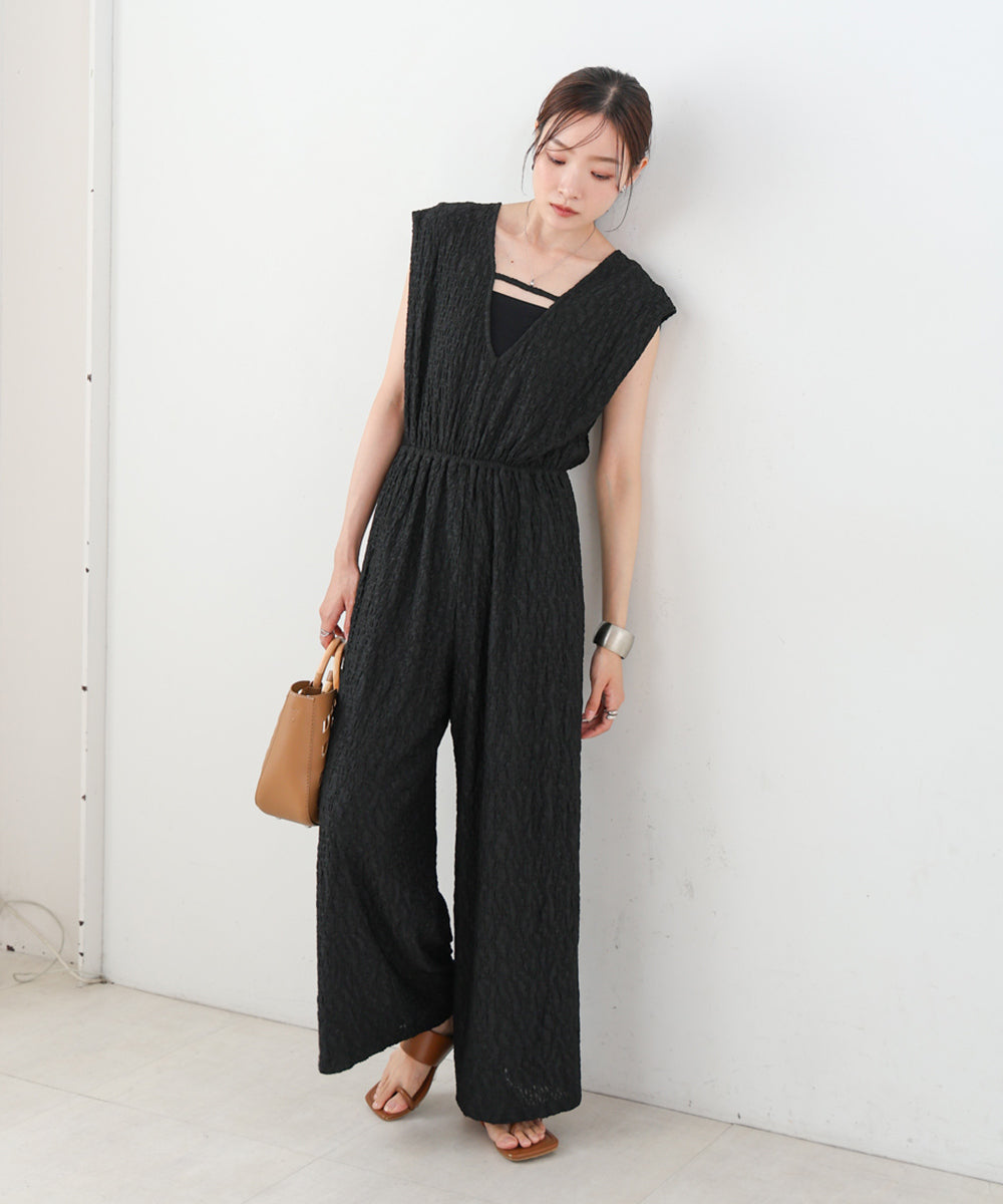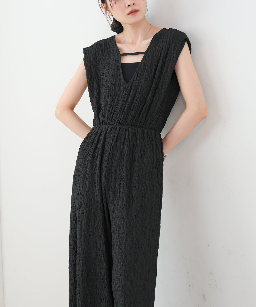 前後2WAY使用のワンピース・オールインワンが登場!柔らかい質感になっています。片面はVネックになっていてキャミソールなどと合わせていただくのがおすすめです!もう片方はジッパーが付いているUネックタイプでジップを調節してお好きな空き具合にしていただけます◎どちらのタイプも鎖骨が見えるので着瘦せして見えるのポイントです!また、中央の切り替え位置がゴムになっていているのでゆったりと着ていただきながらもスタイルアップして見えます!