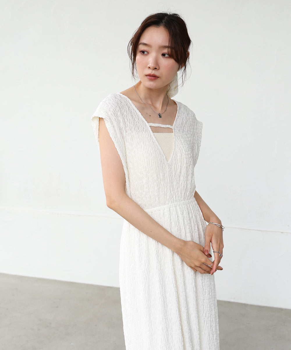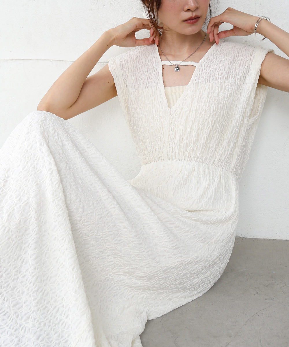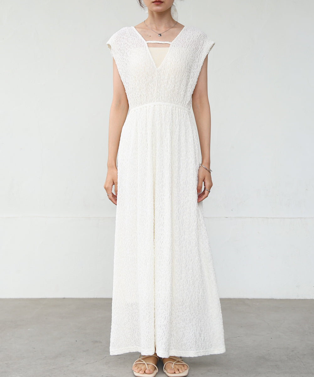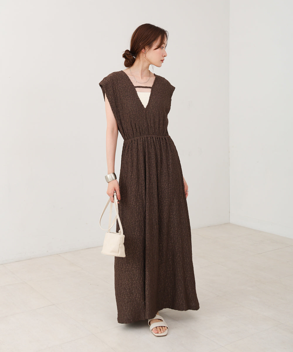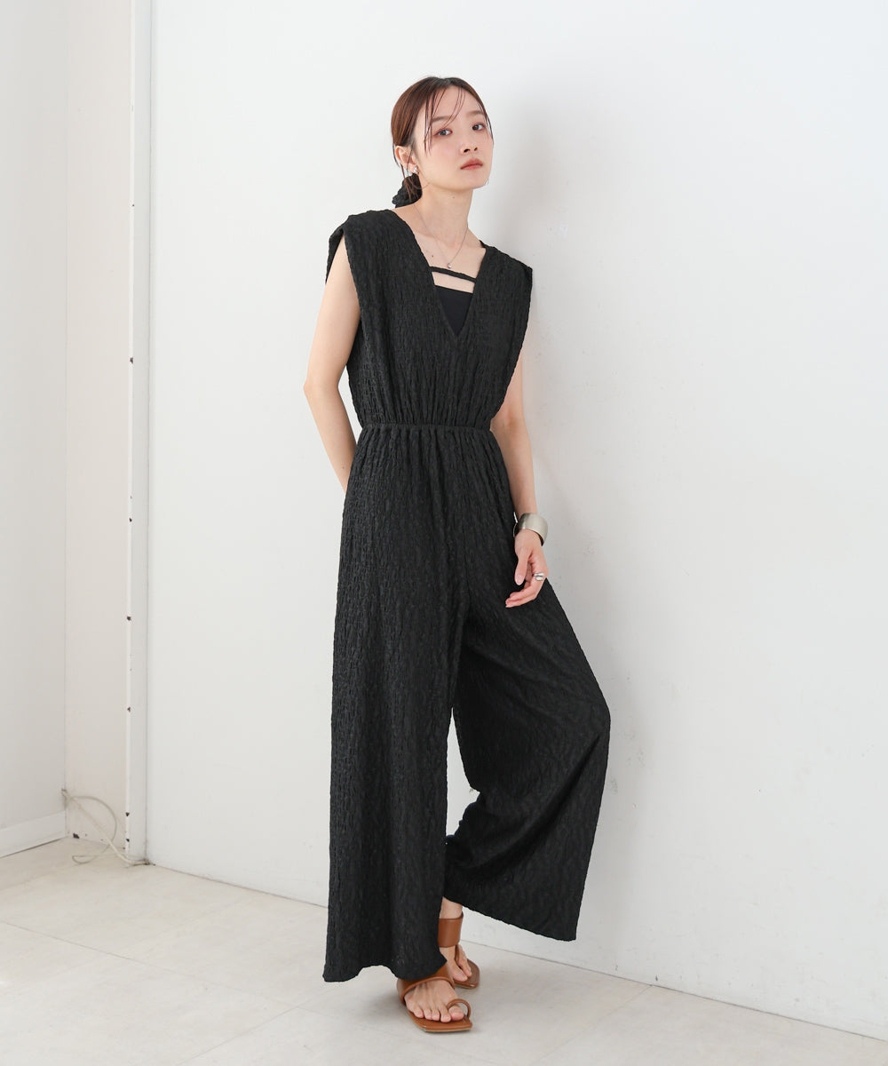 前後2WAY使用のワンピース・オールインワンが登場!柔らかい質感になっています。片面はVネックになっていてキャミソールなどと合わせていただくのがおすすめです!もう片方はジッパーが付いているUネックタイプでジップを調節してお好きな空き具合にしていただけます◎どちらのタイプも鎖骨が見えるので着瘦せして見えるのポイントです!また、中央の切り替え位置がゴムになっていているのでゆったりと着ていただきながらもスタイルアップして見えます!