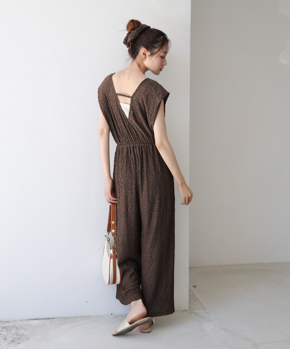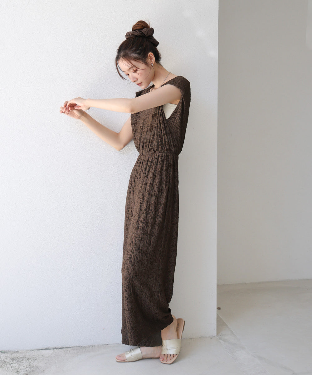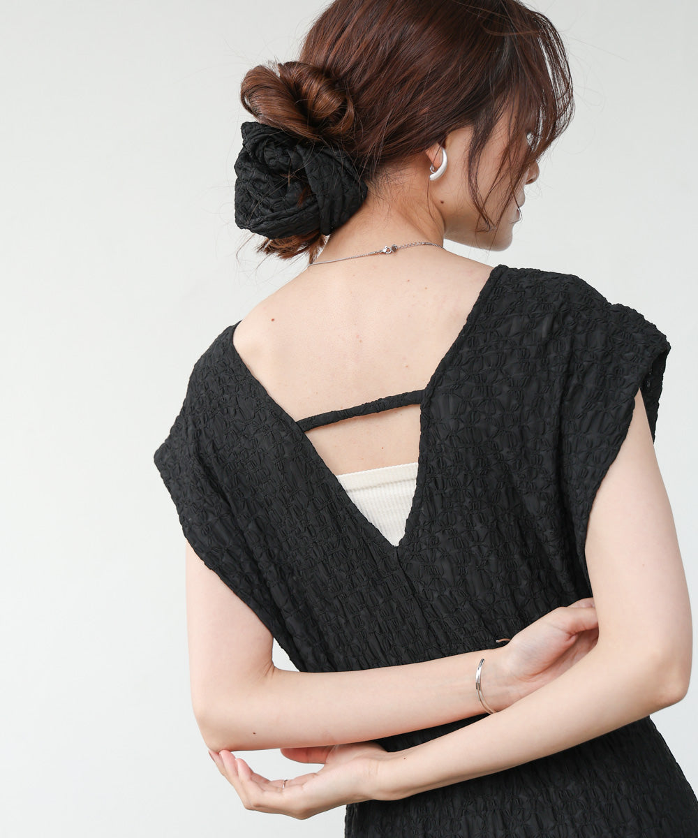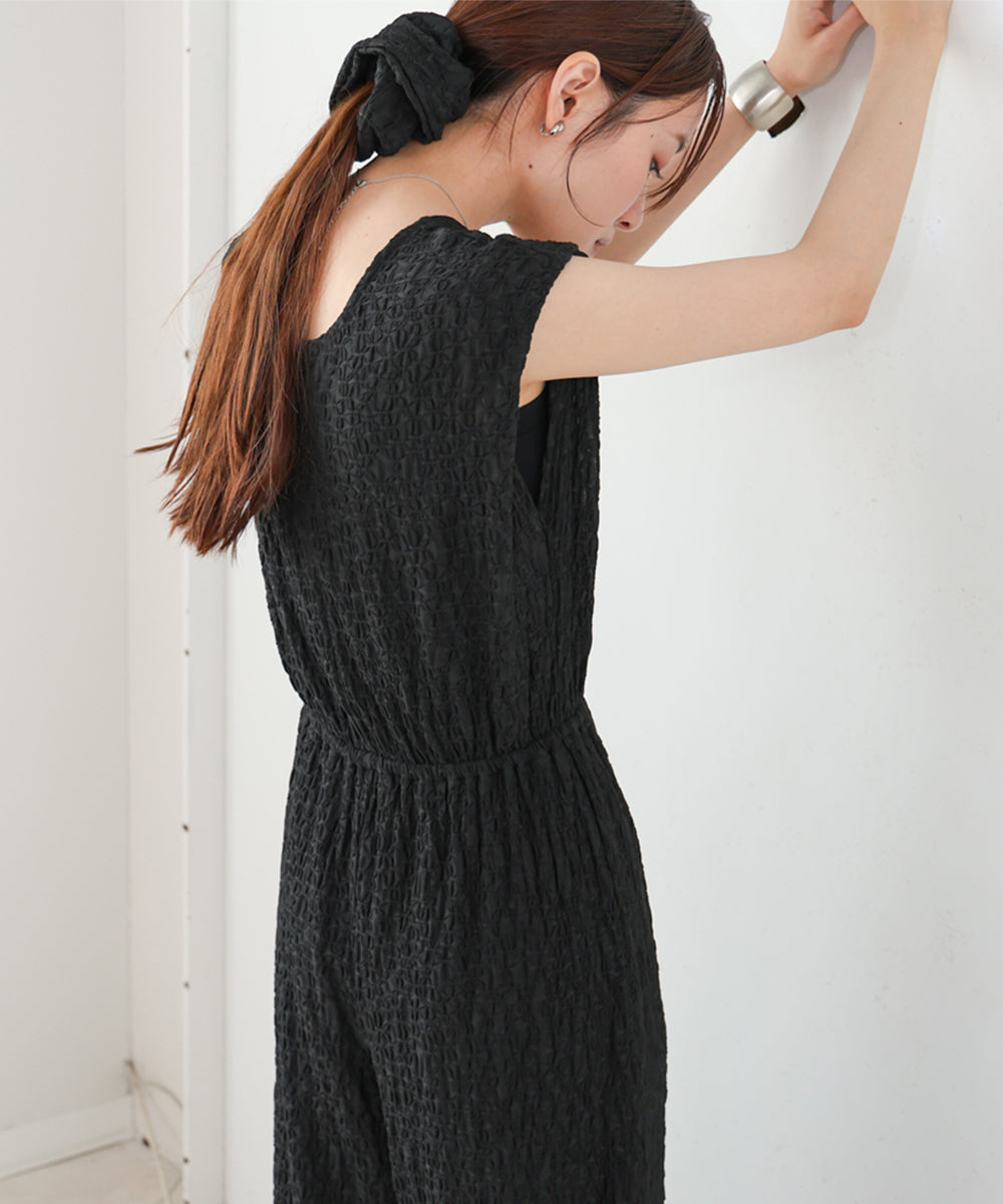 前後2WAYウェーブ柄シュシュ付ワンピース・オールインワン