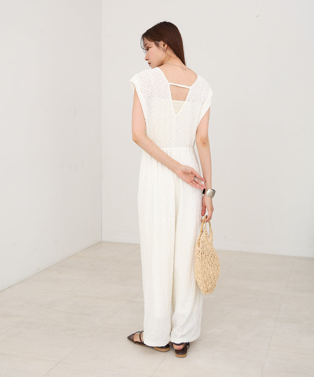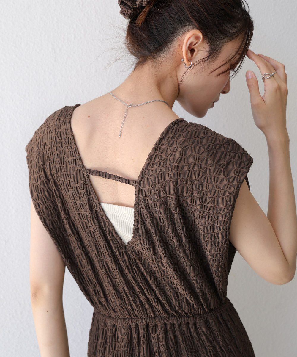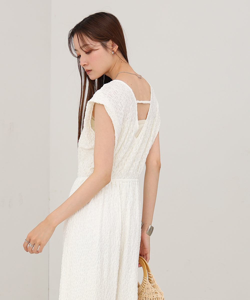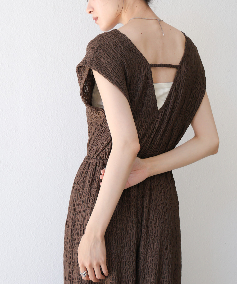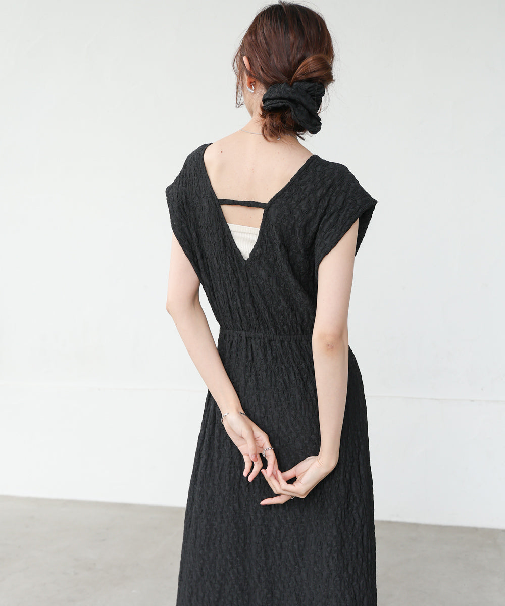 前後2WAYウェーブ柄シュシュ付ワンピース・オールインワン