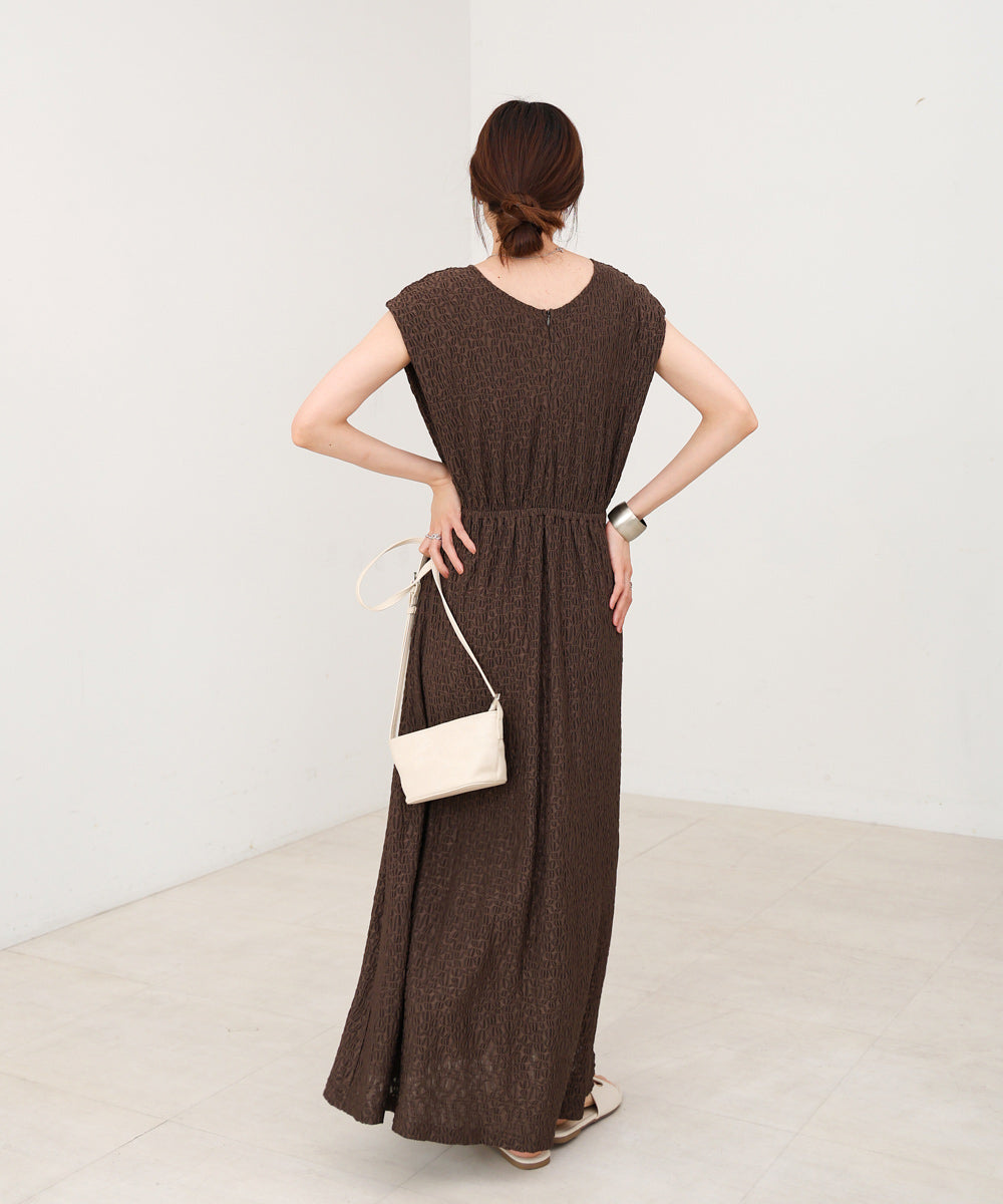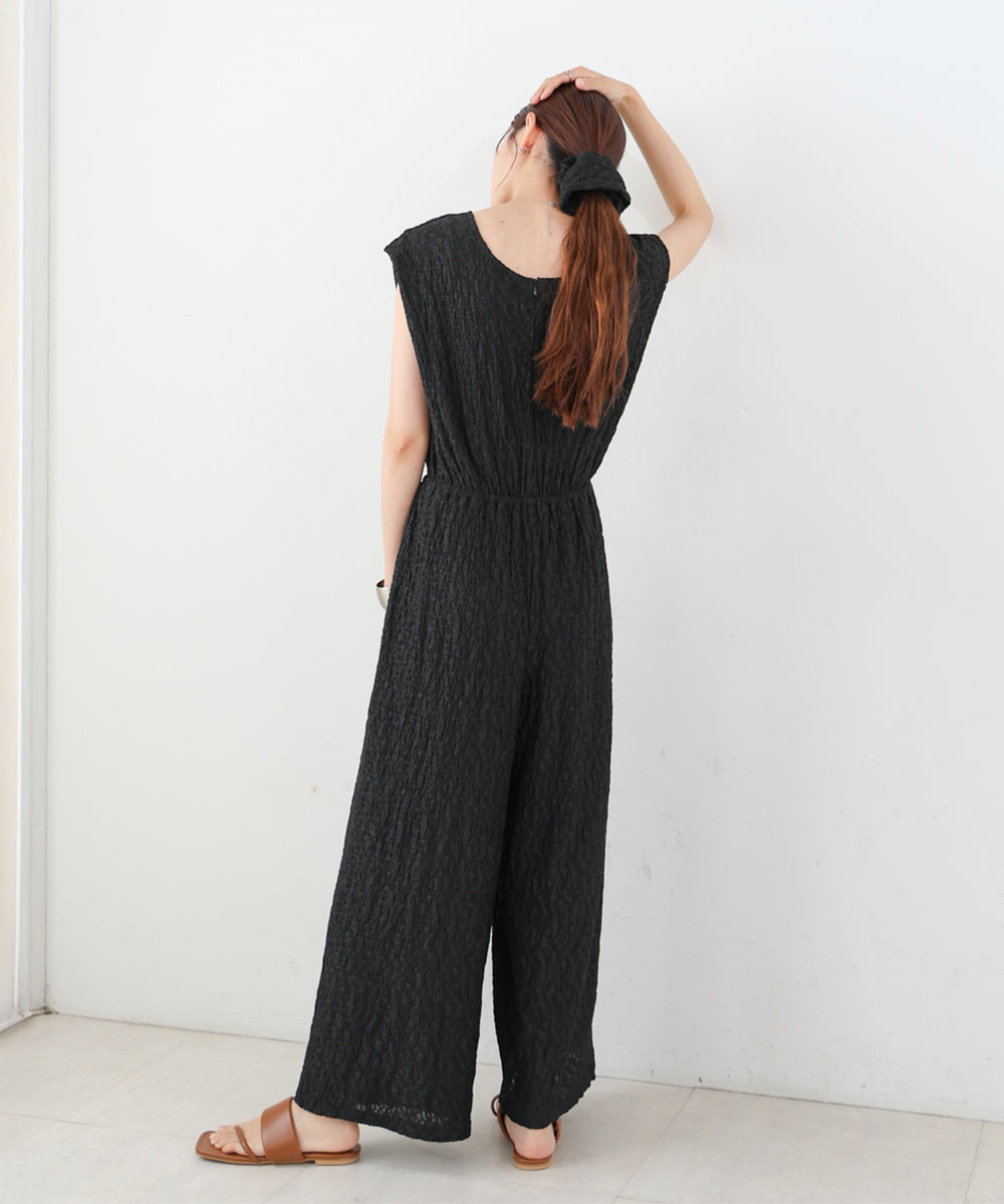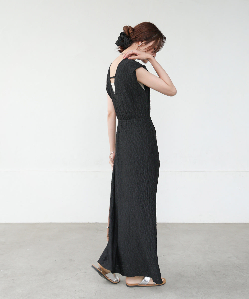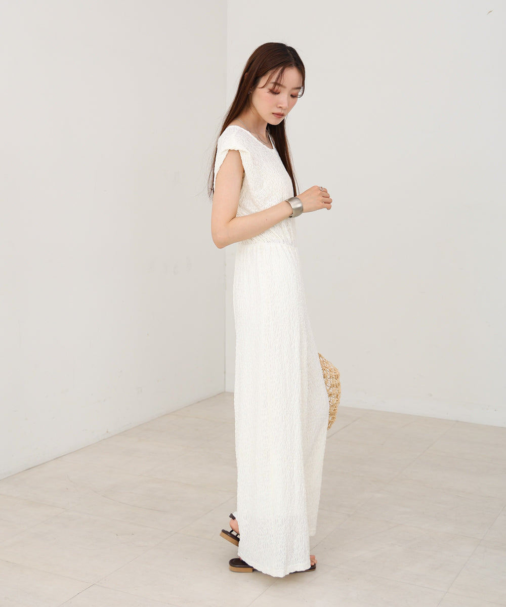 前後2WAYウェーブ柄シュシュ付ワンピース・オールインワン