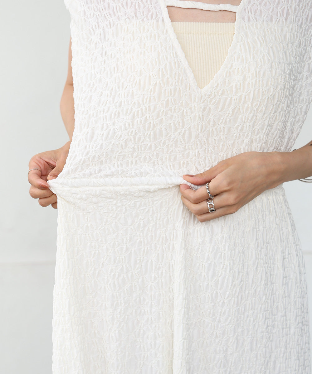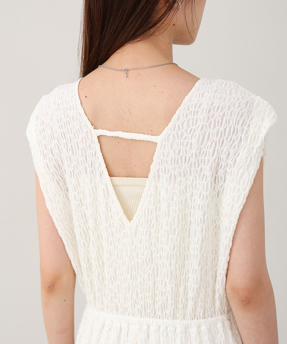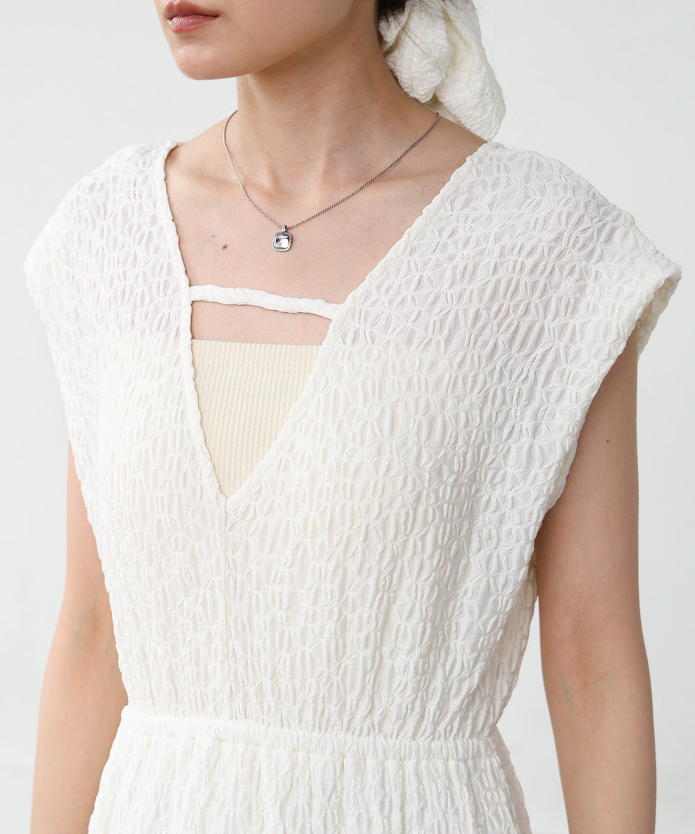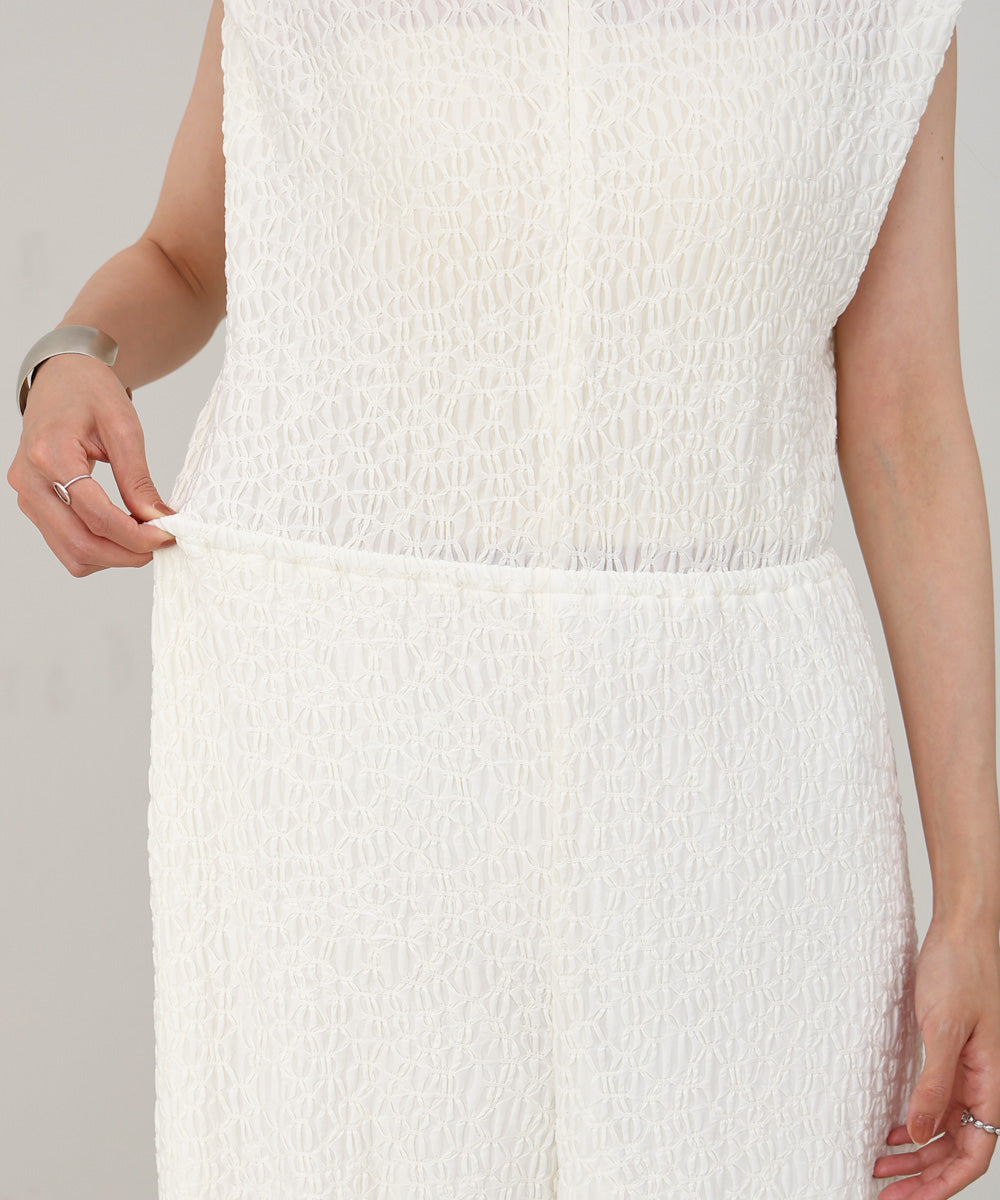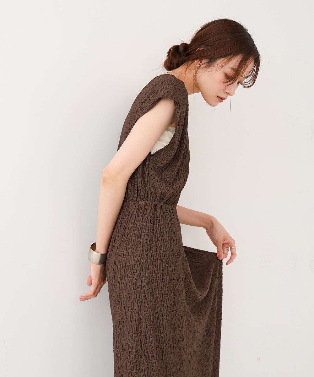 前後2WAYウェーブ柄シュシュ付ワンピース・オールインワン