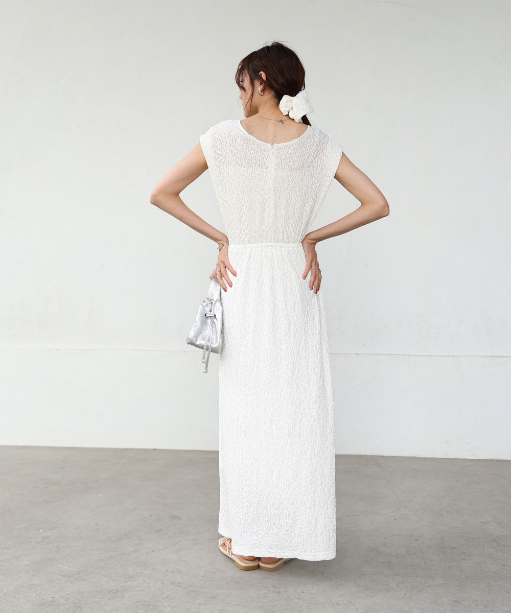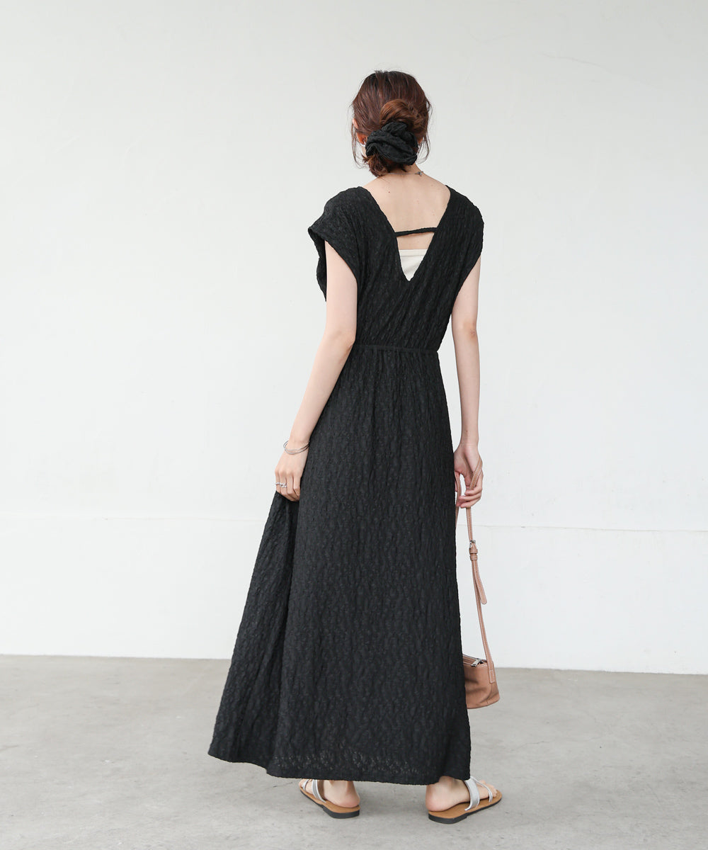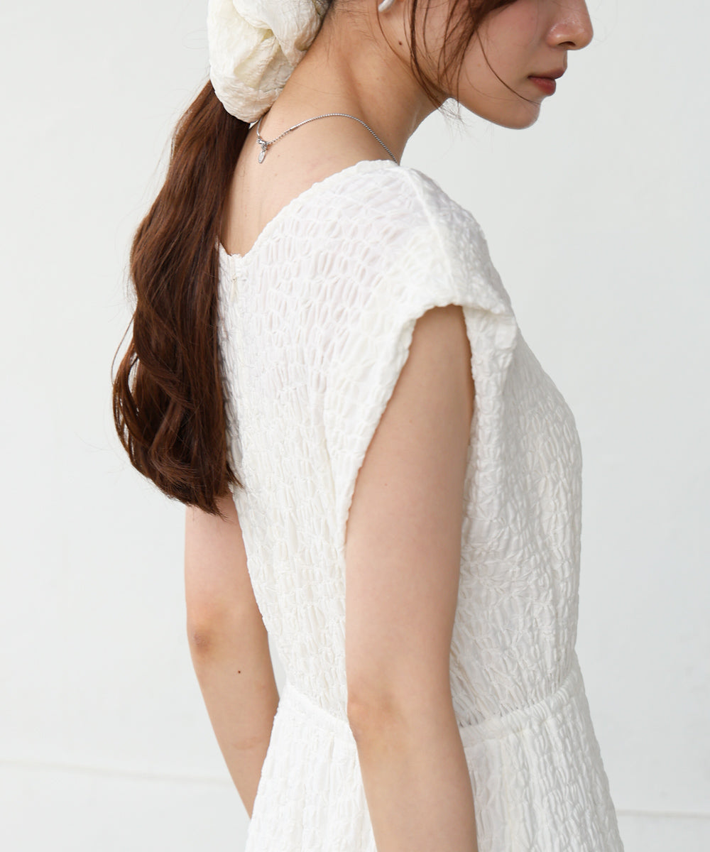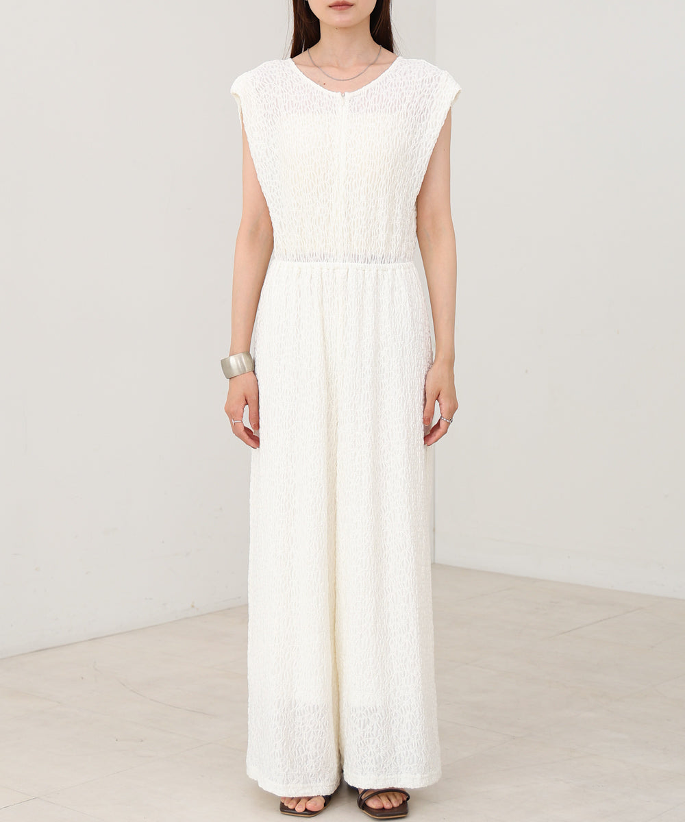 前後2WAYウェーブ柄シュシュ付ワンピース・オールインワン