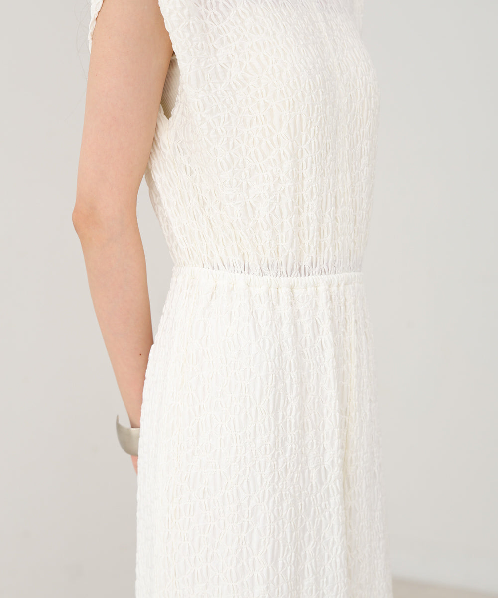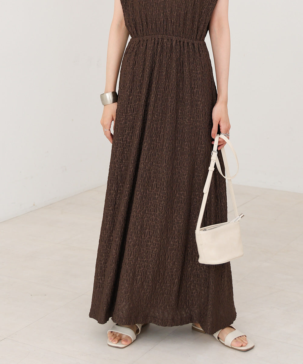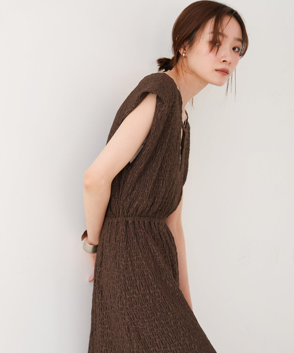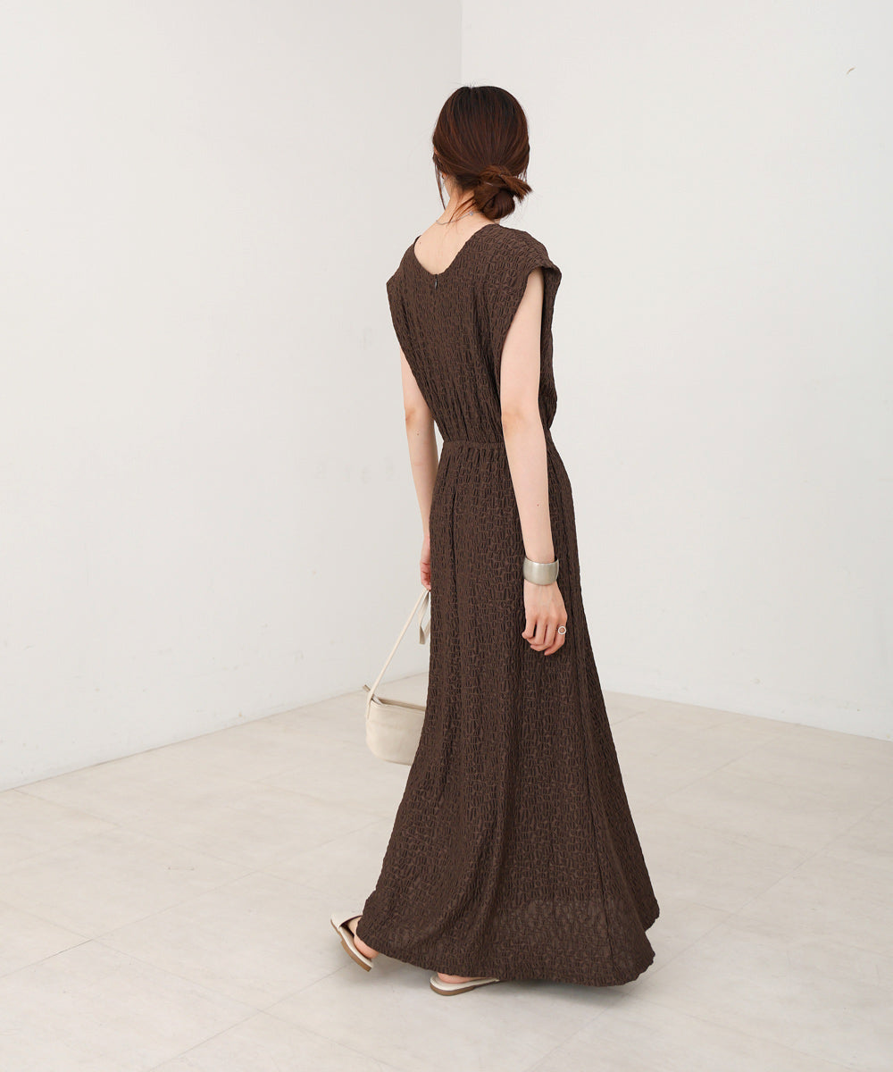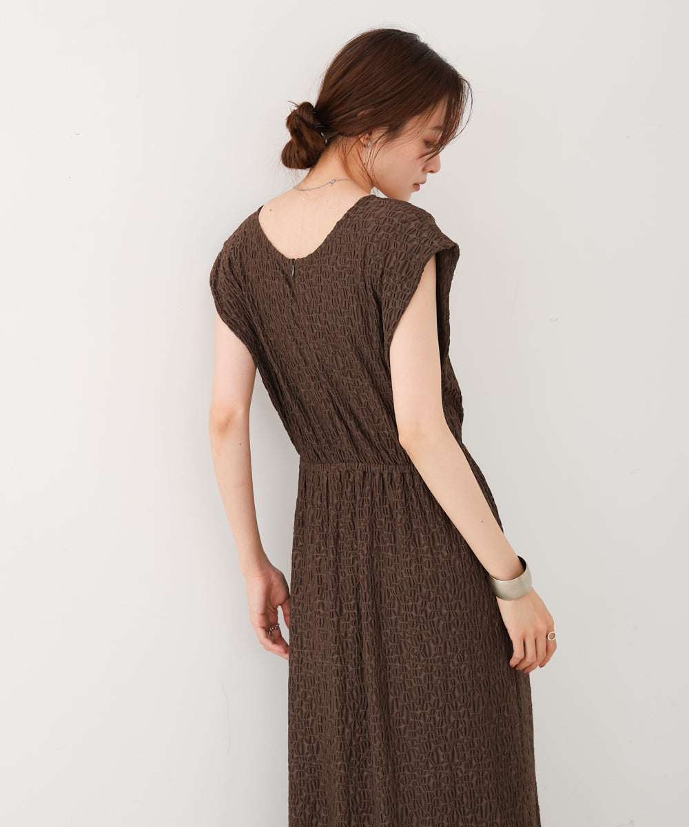 前後2WAYウェーブ柄シュシュ付ワンピース・オールインワン