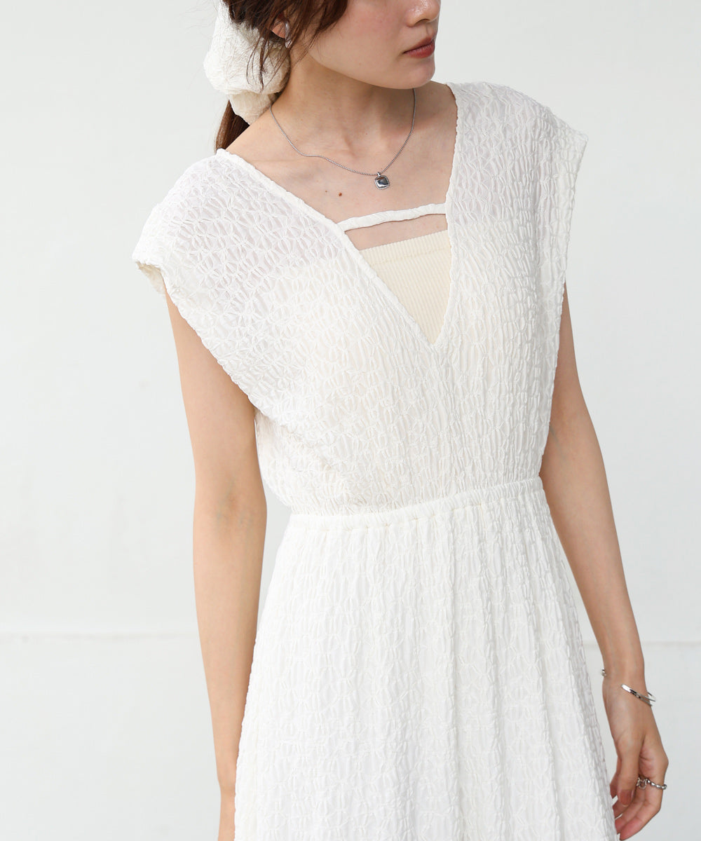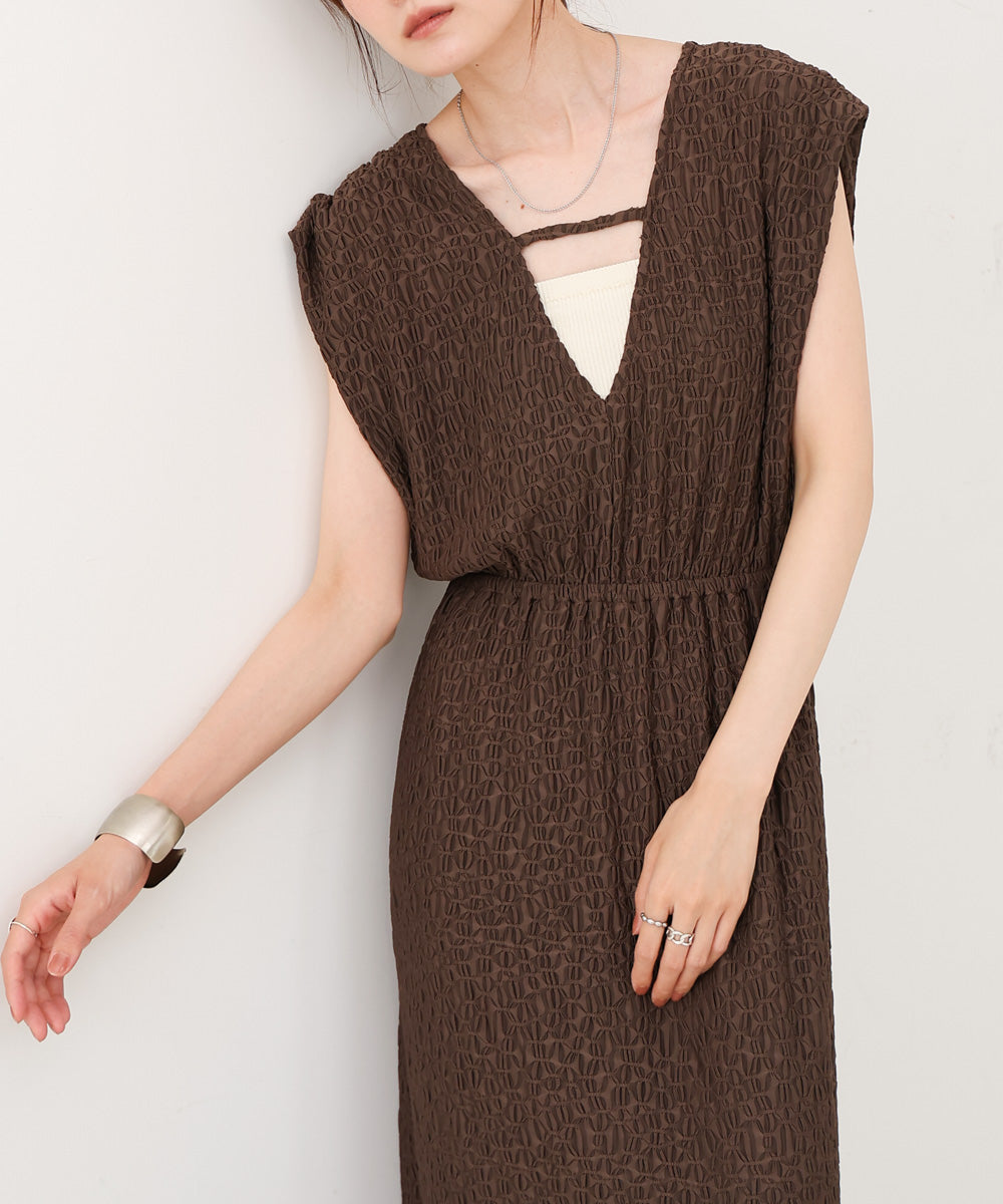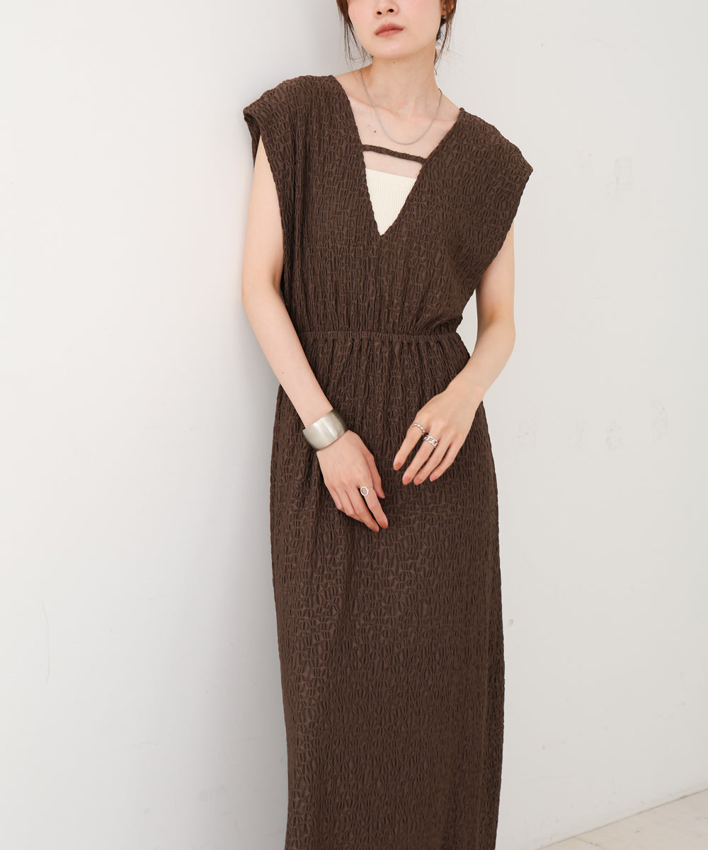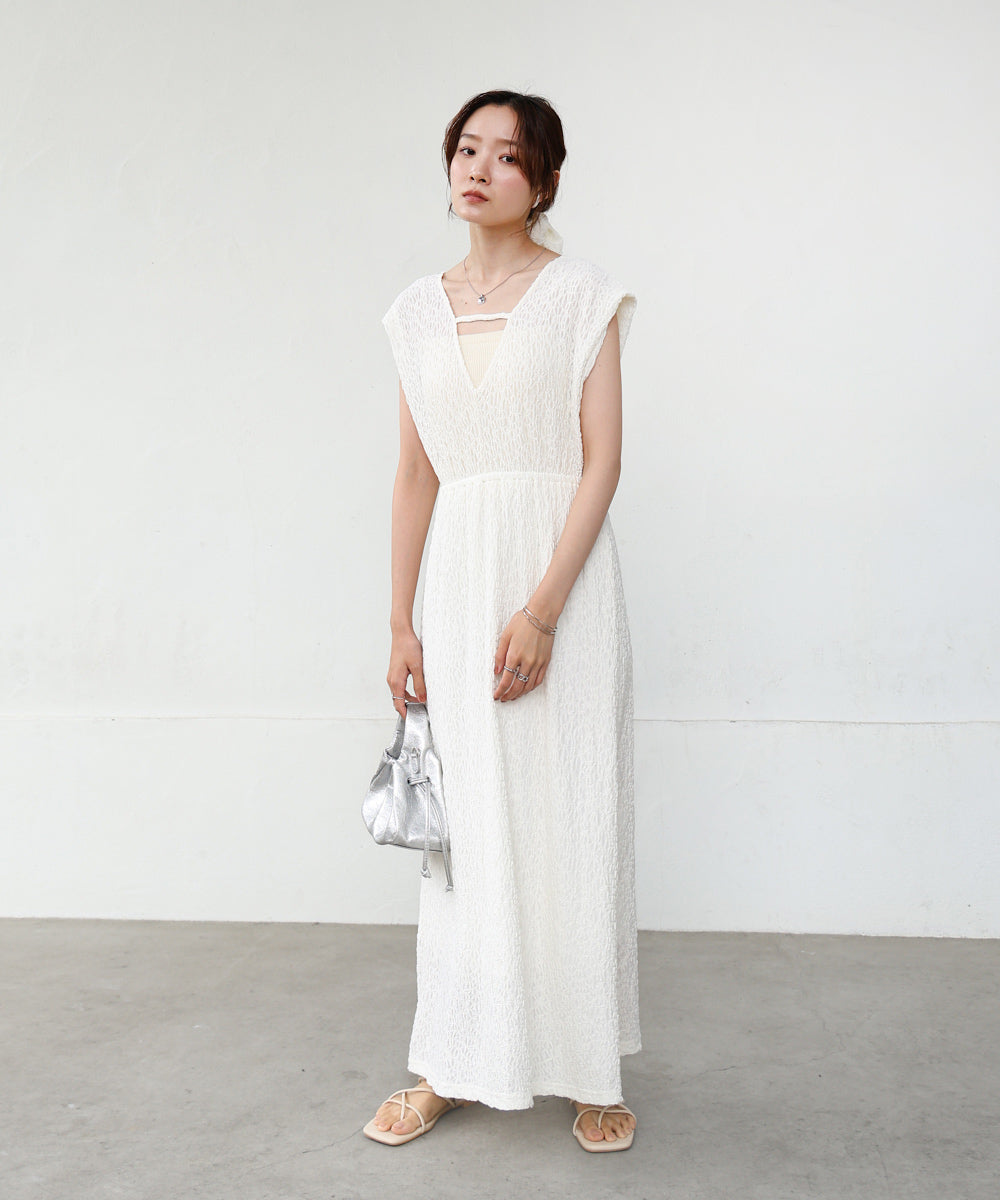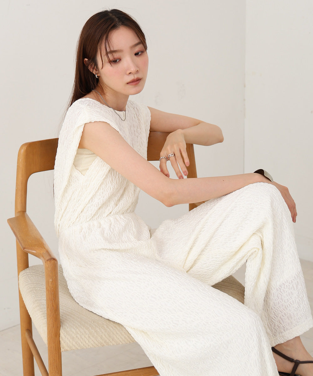 キャミソールなどを着て一枚でまとめていただいたり、中に薄手のカットソーを着ていただくスタイルなどがおすすめです!カジュアルにもきれいめにもなるのでスニーカーやサンダル合わせでも、ヒール合わせでも決まる一枚になっています!