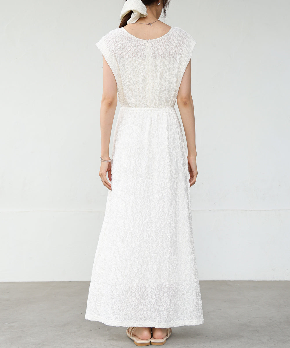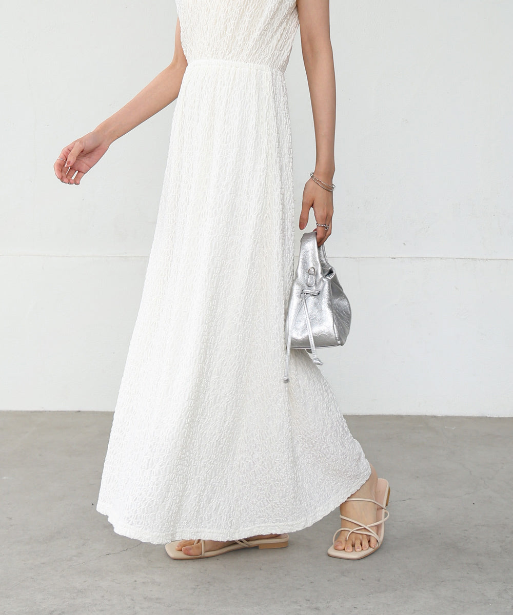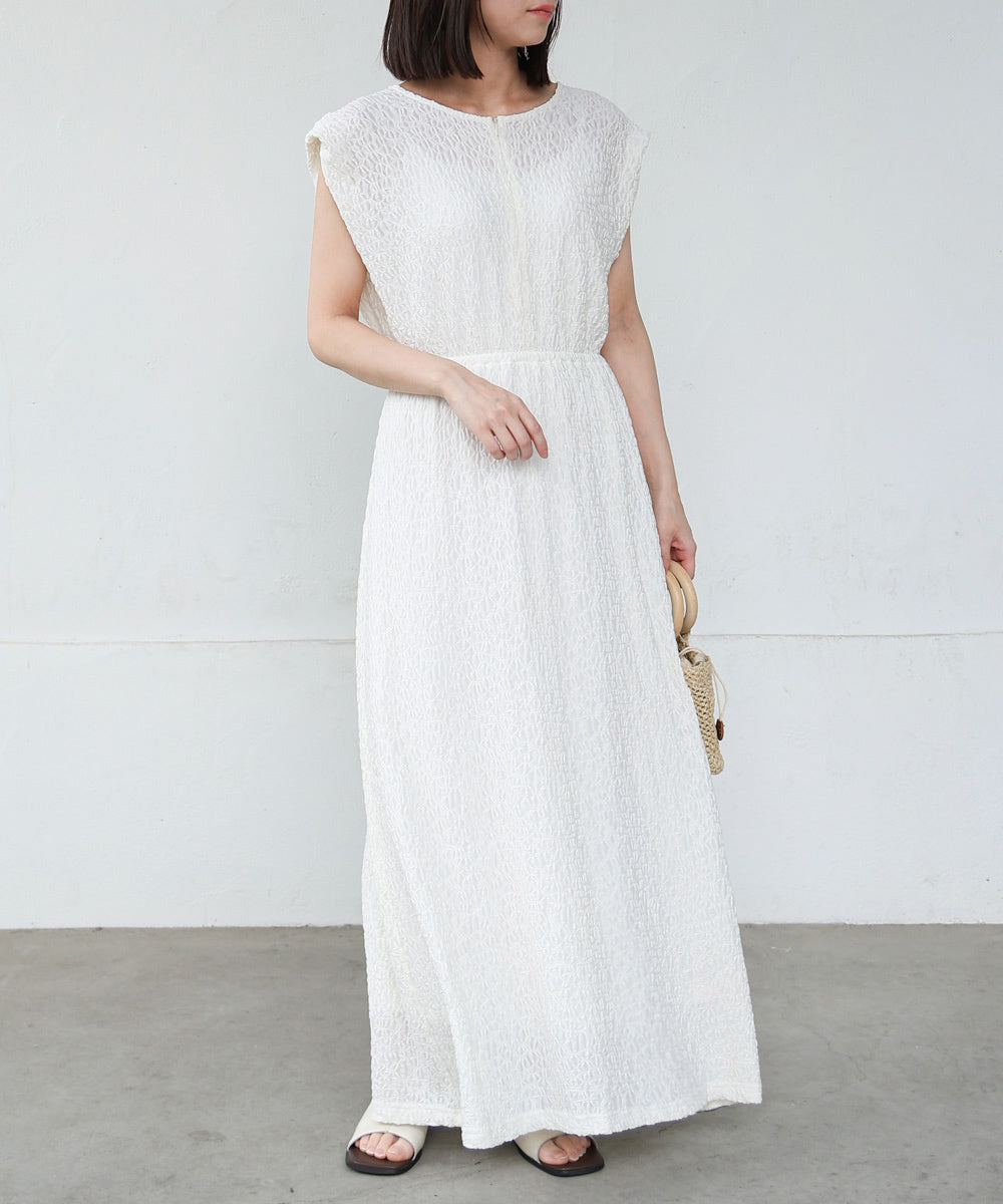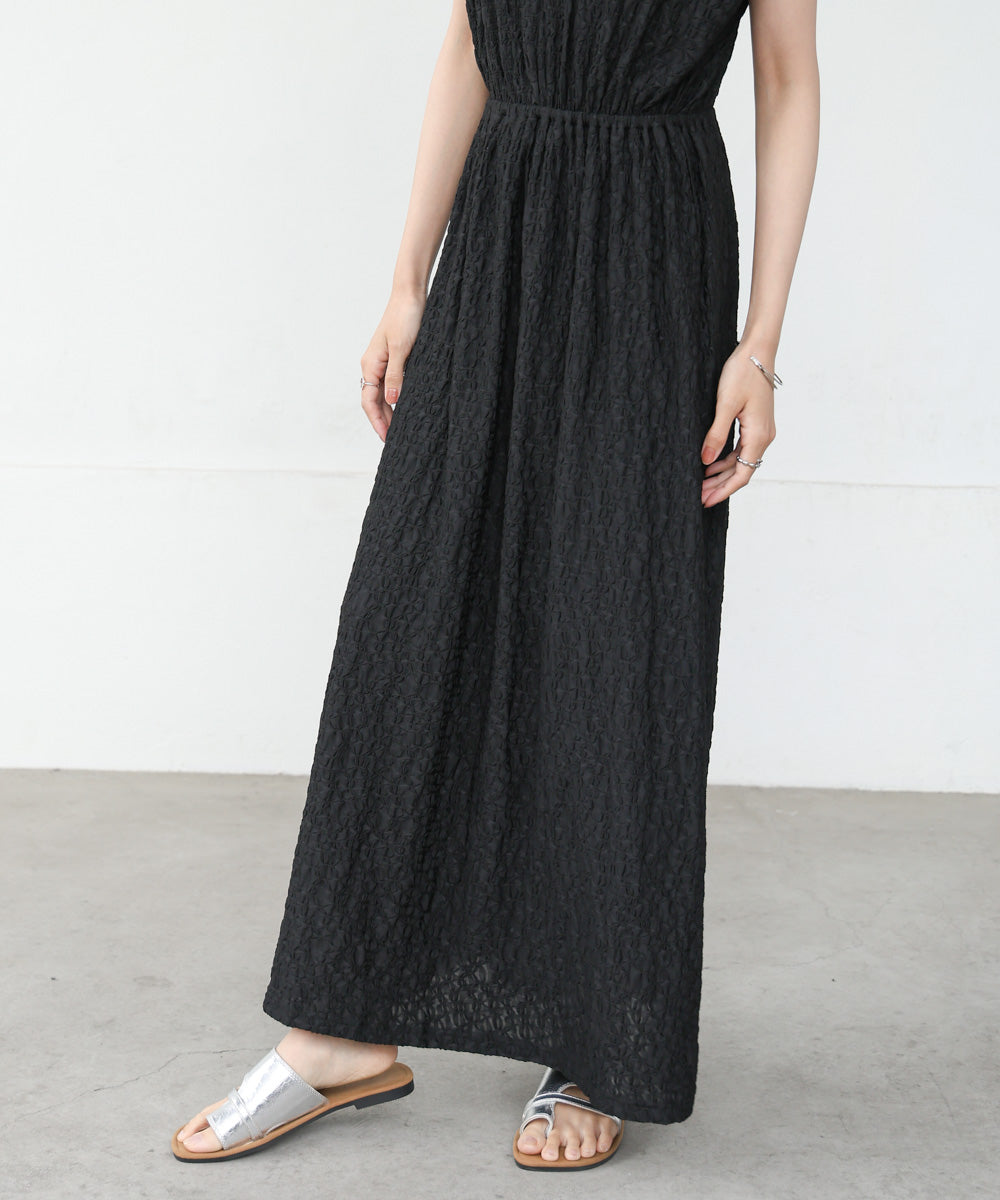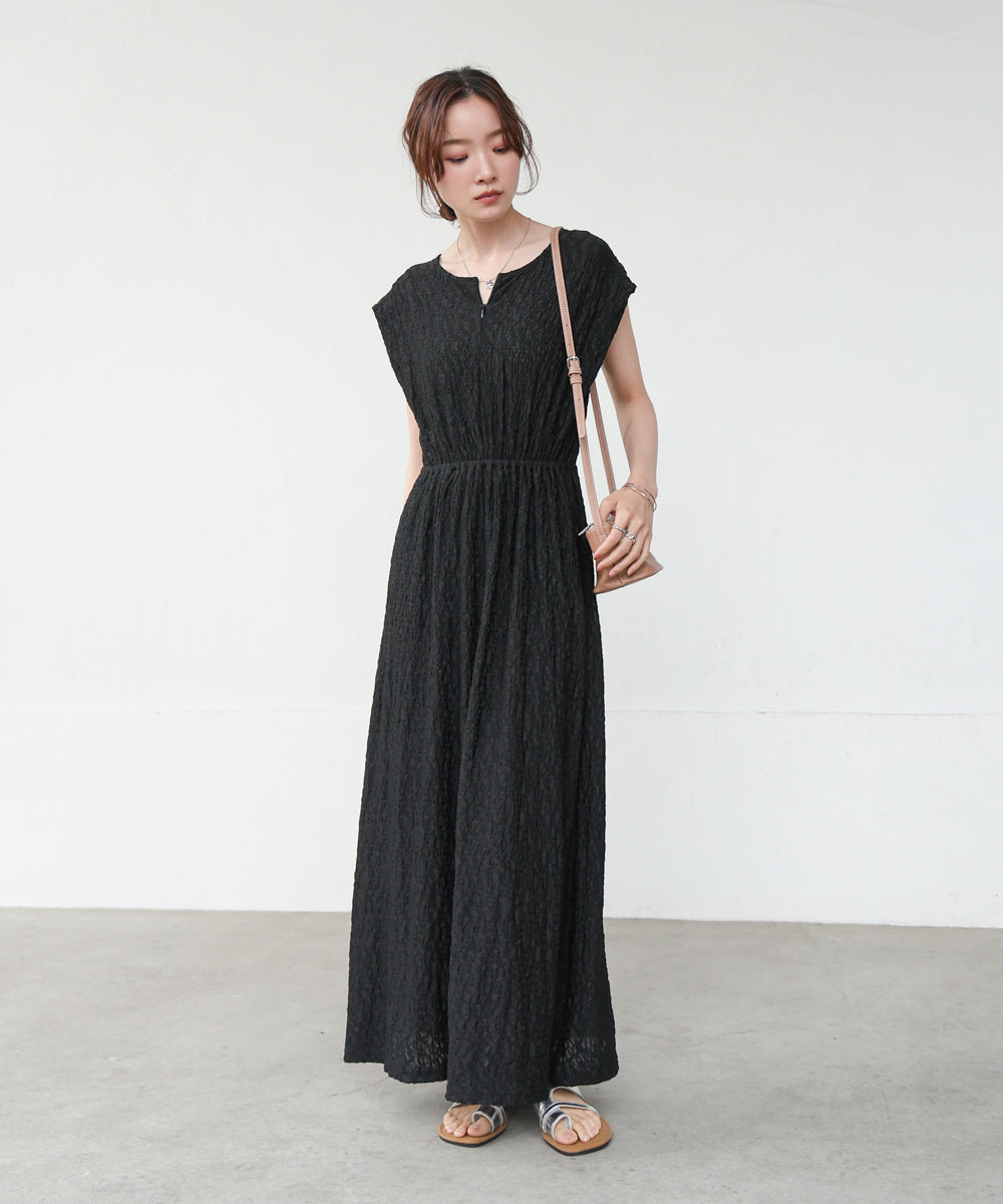 Sサイズを着用しました。ワンピースはくるぶしあたりの上品な着丈で床につく心配はありません。