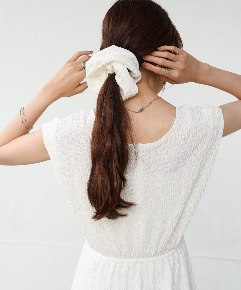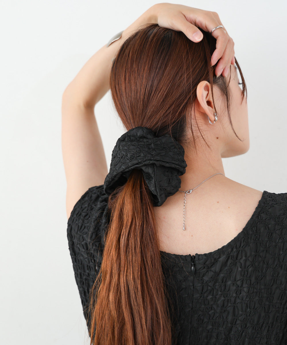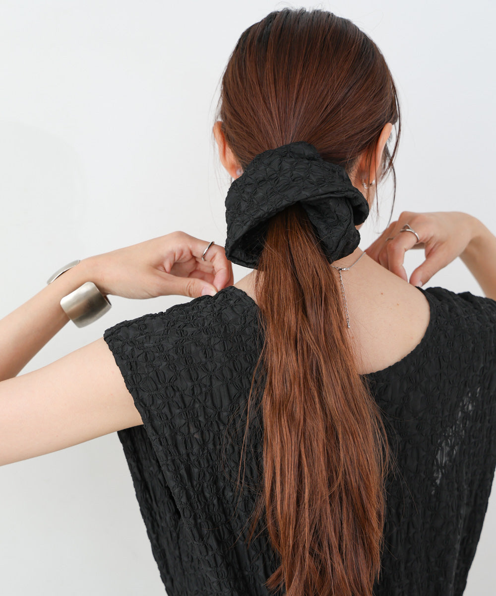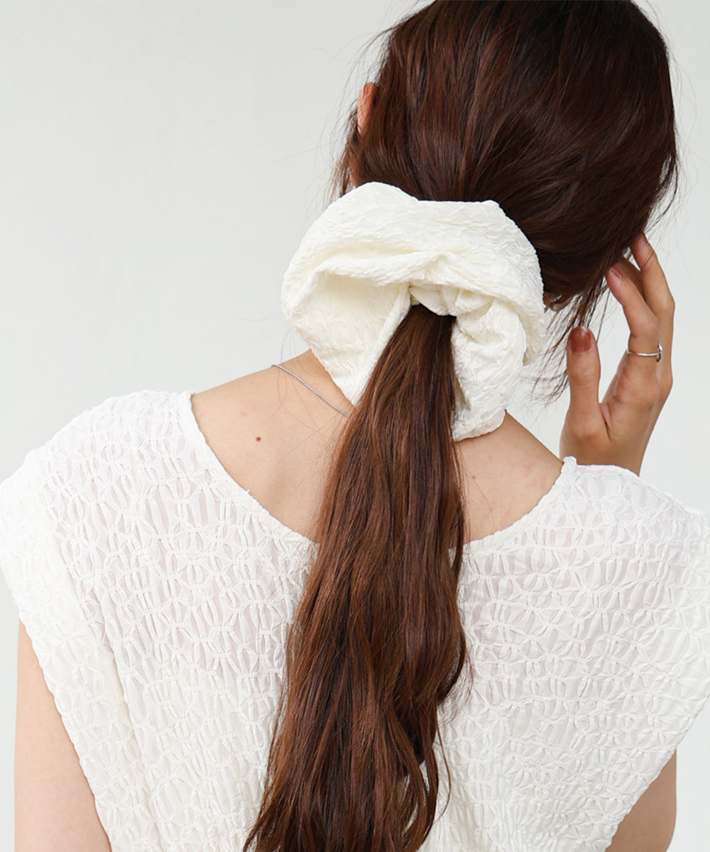 付属のシュシュも同じ素材で作られていて柔らかく軽やかなのが特徴です!