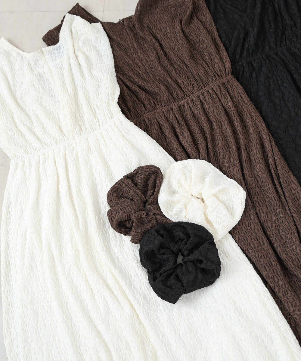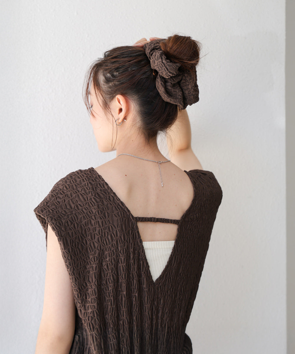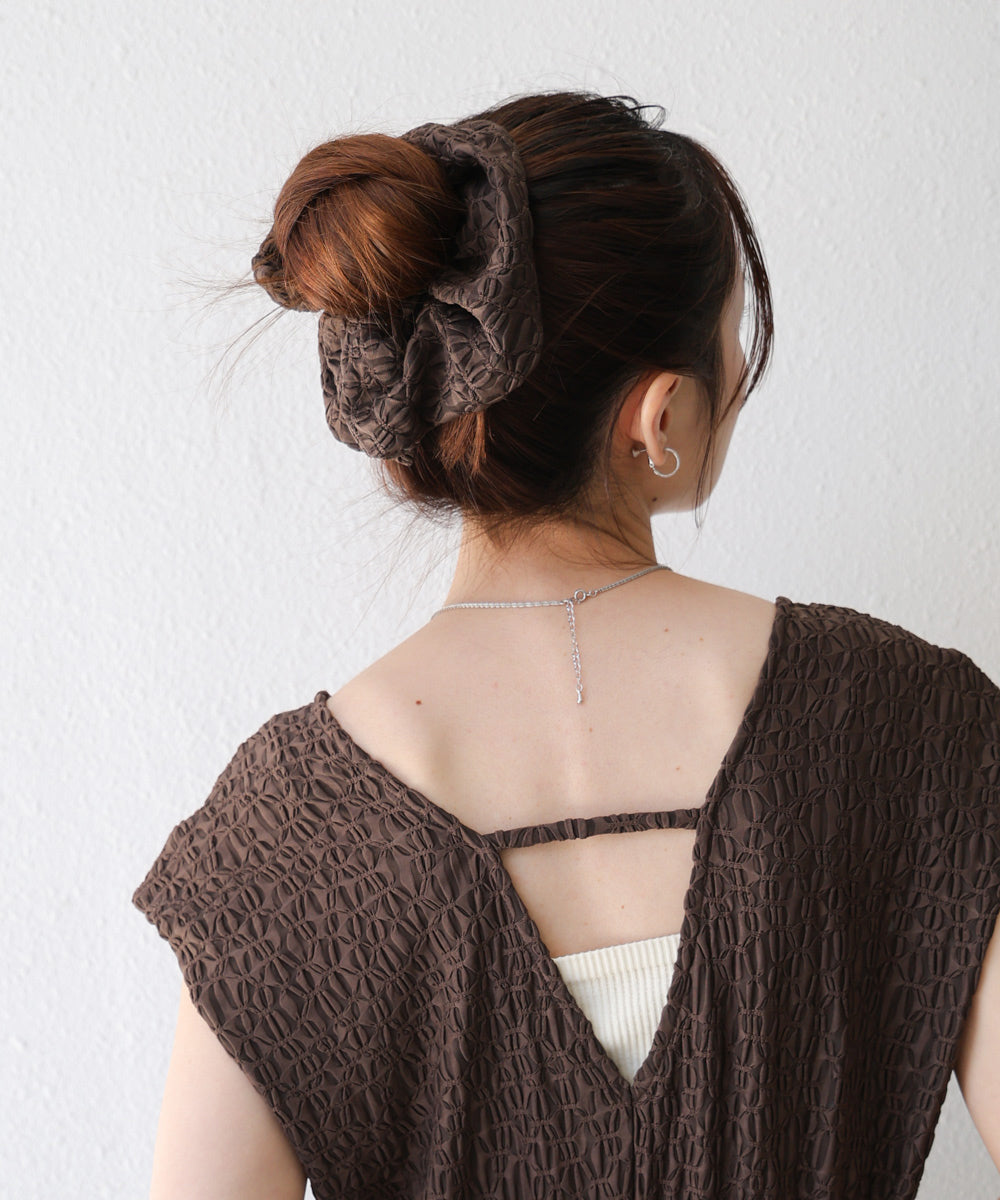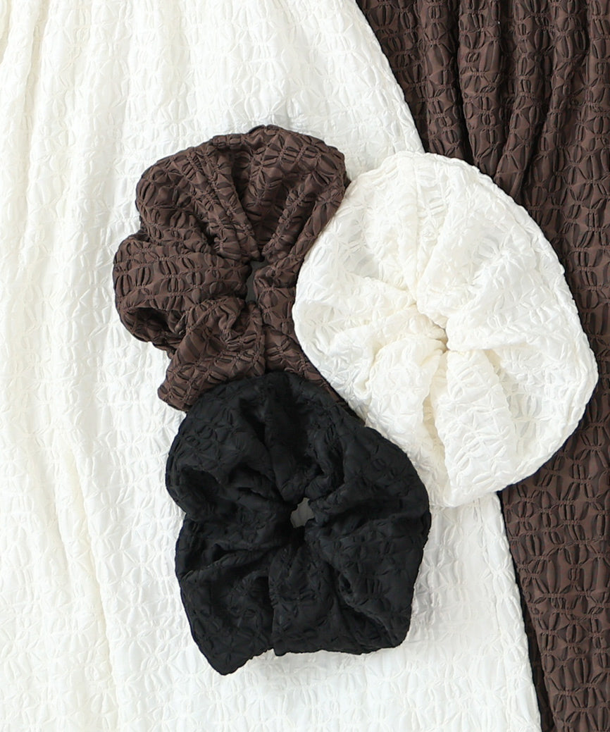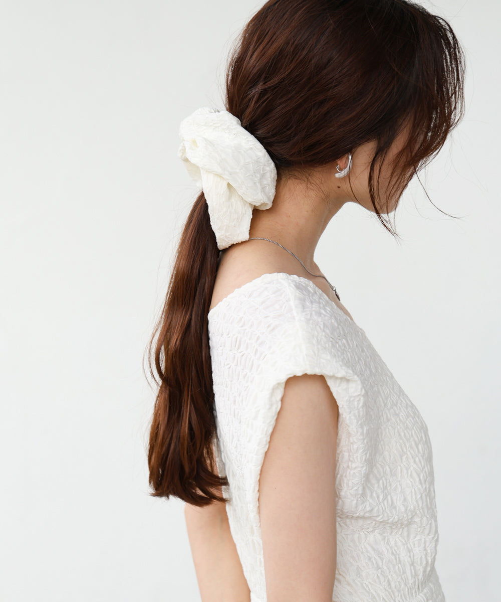 付属のシュシュも同じ素材で作られていて柔らかく軽やかなのが特徴です!