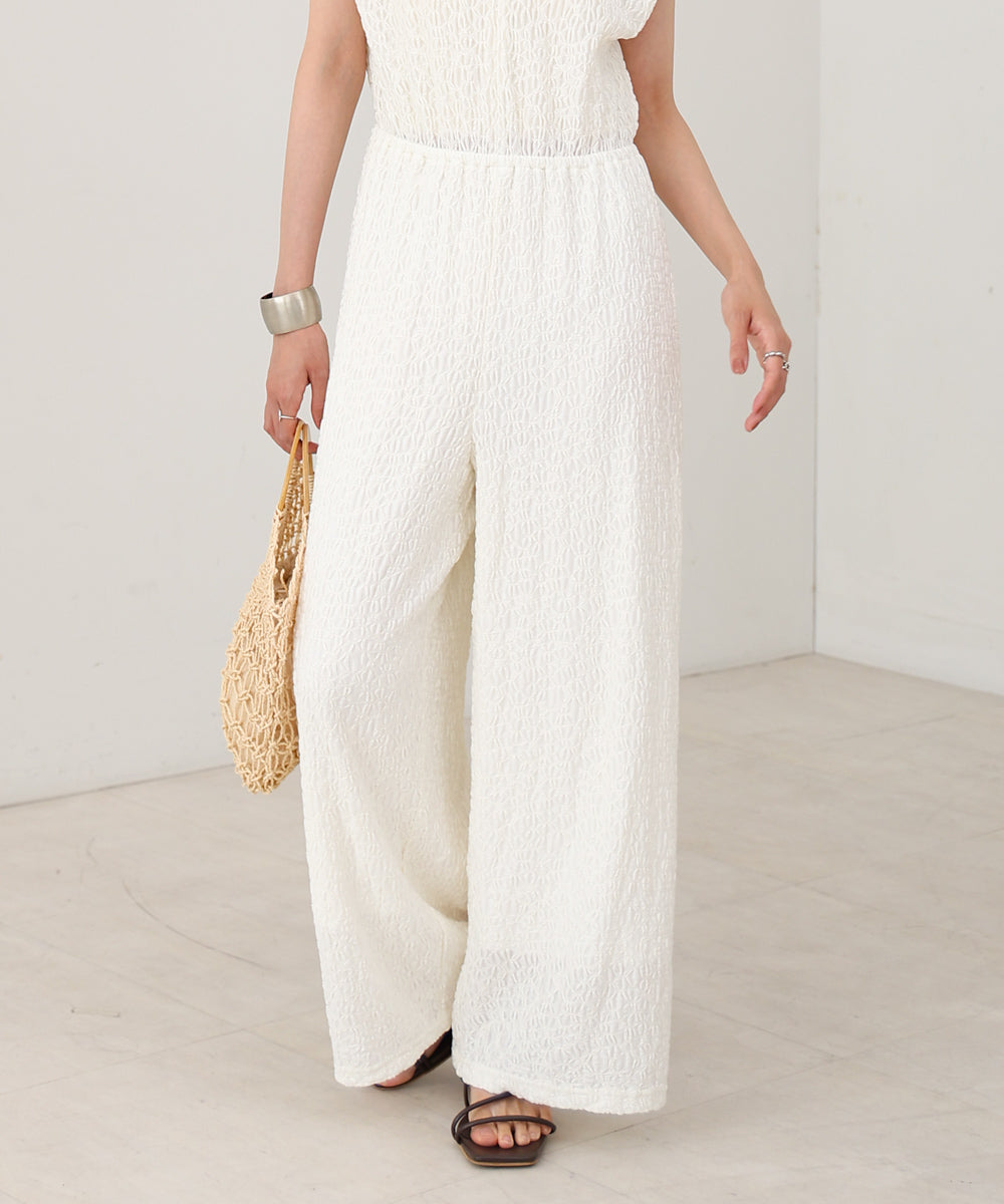 Mサイズを着用しました。足首が見えるあたりの着丈で、これから暖かくなる季節には抜け感が出て丁度いいバランスだと思います!