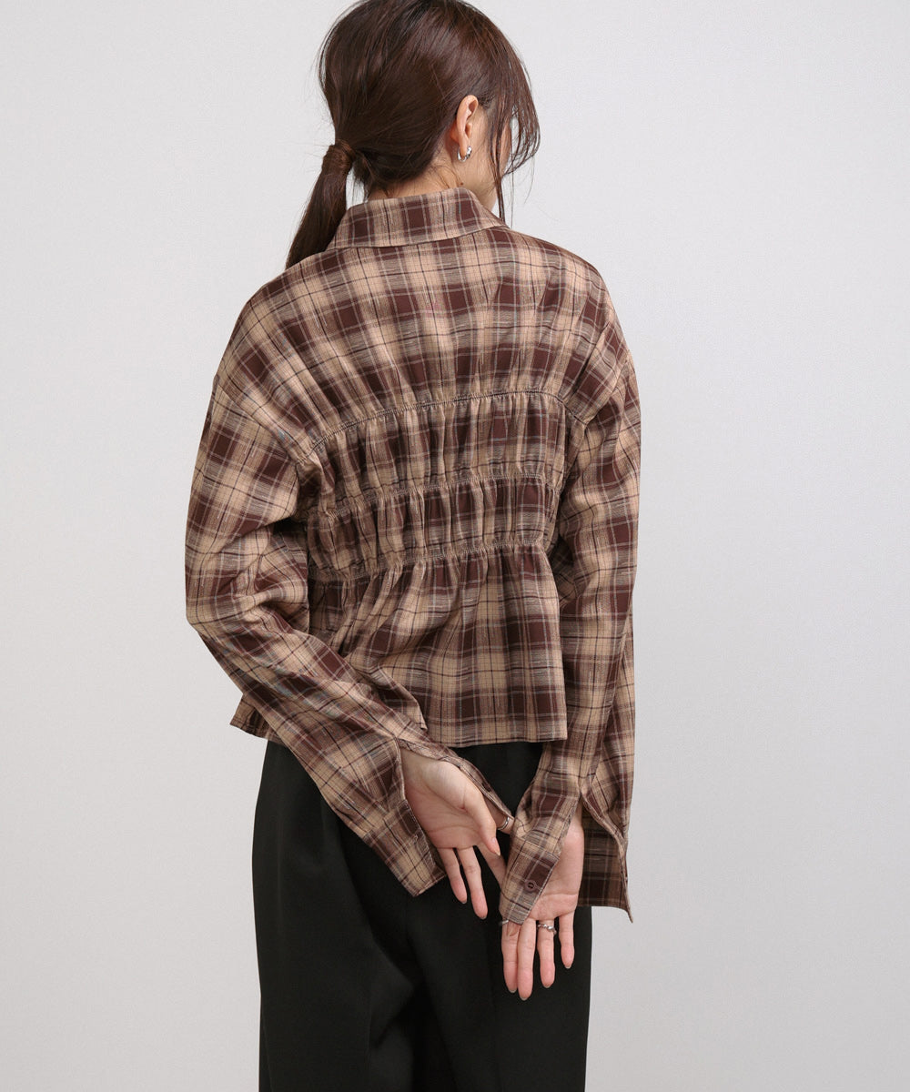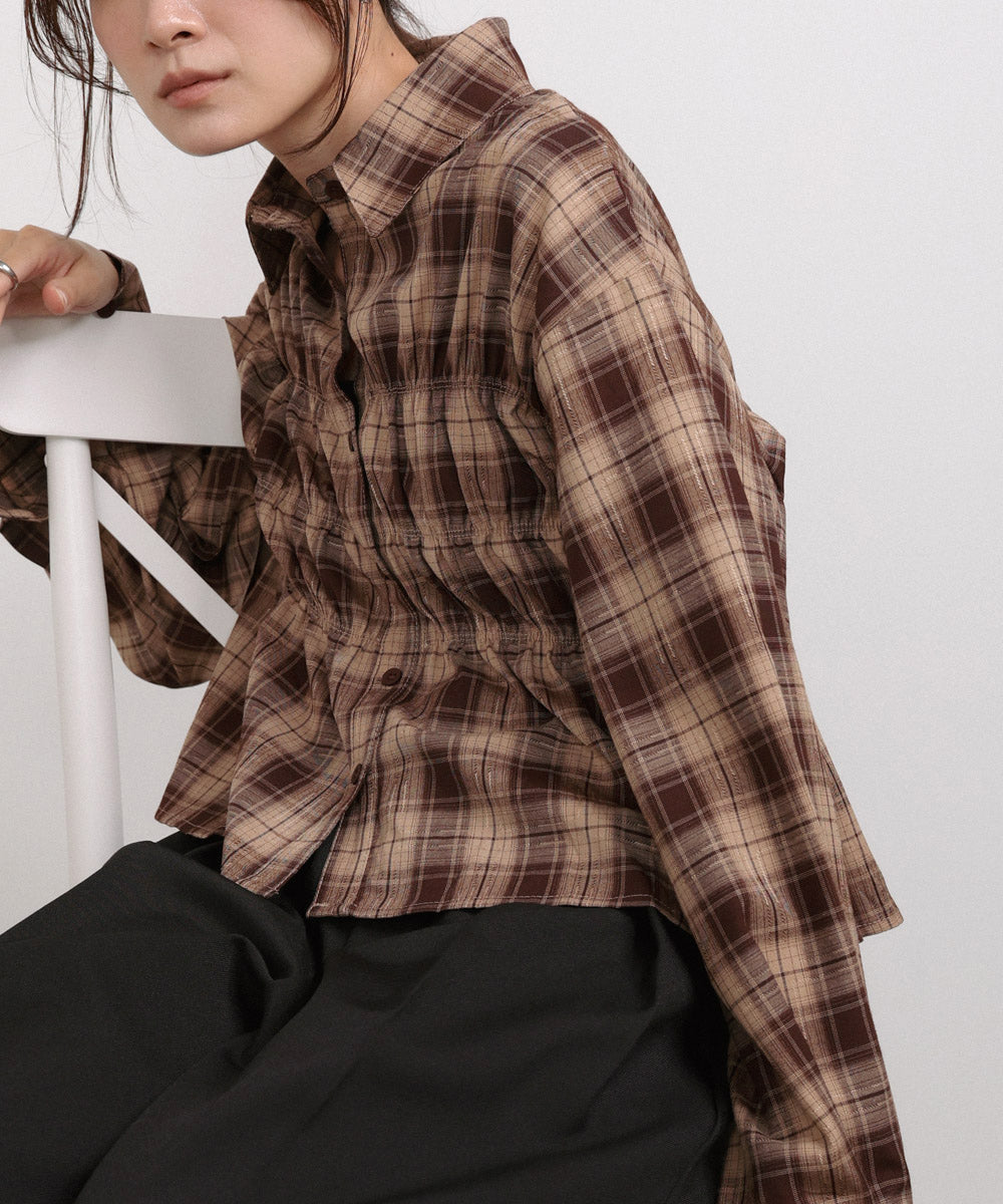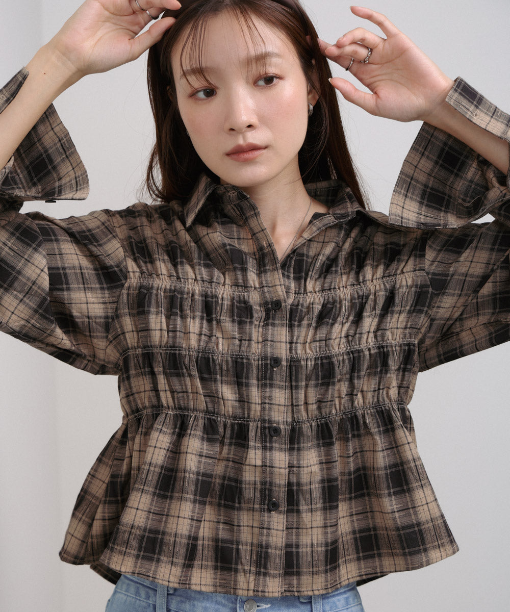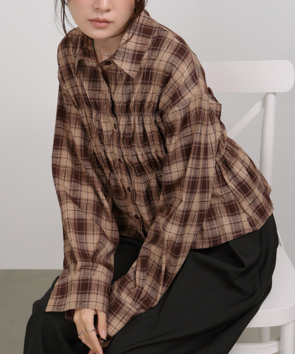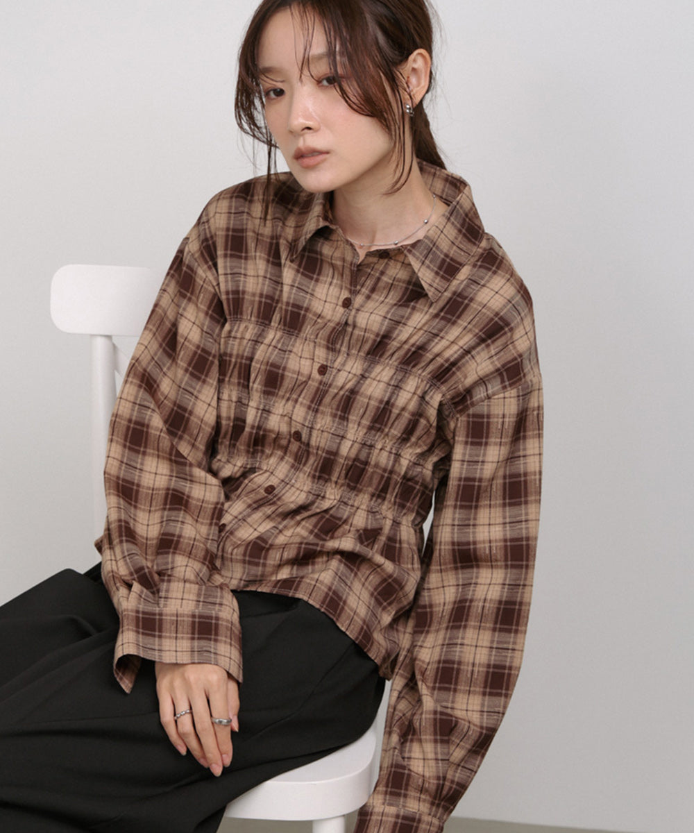 シャーリングビスチェ風デザインチェックシャツ