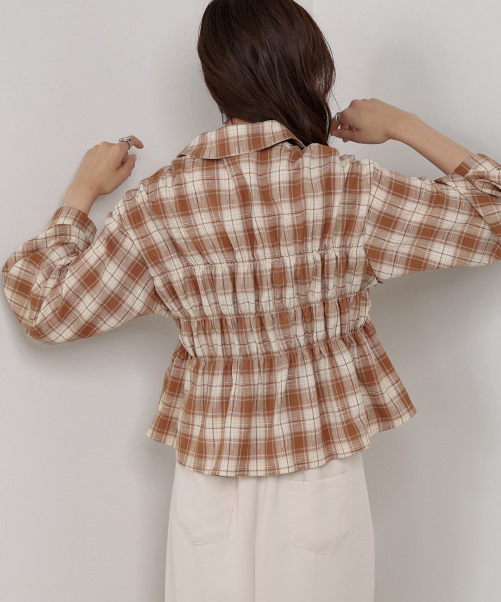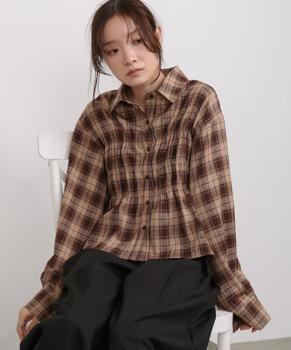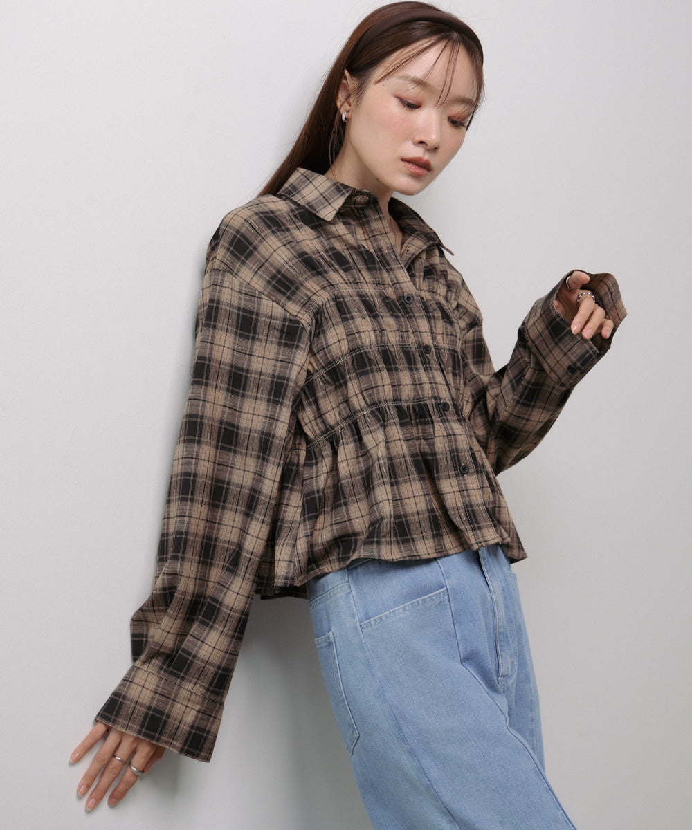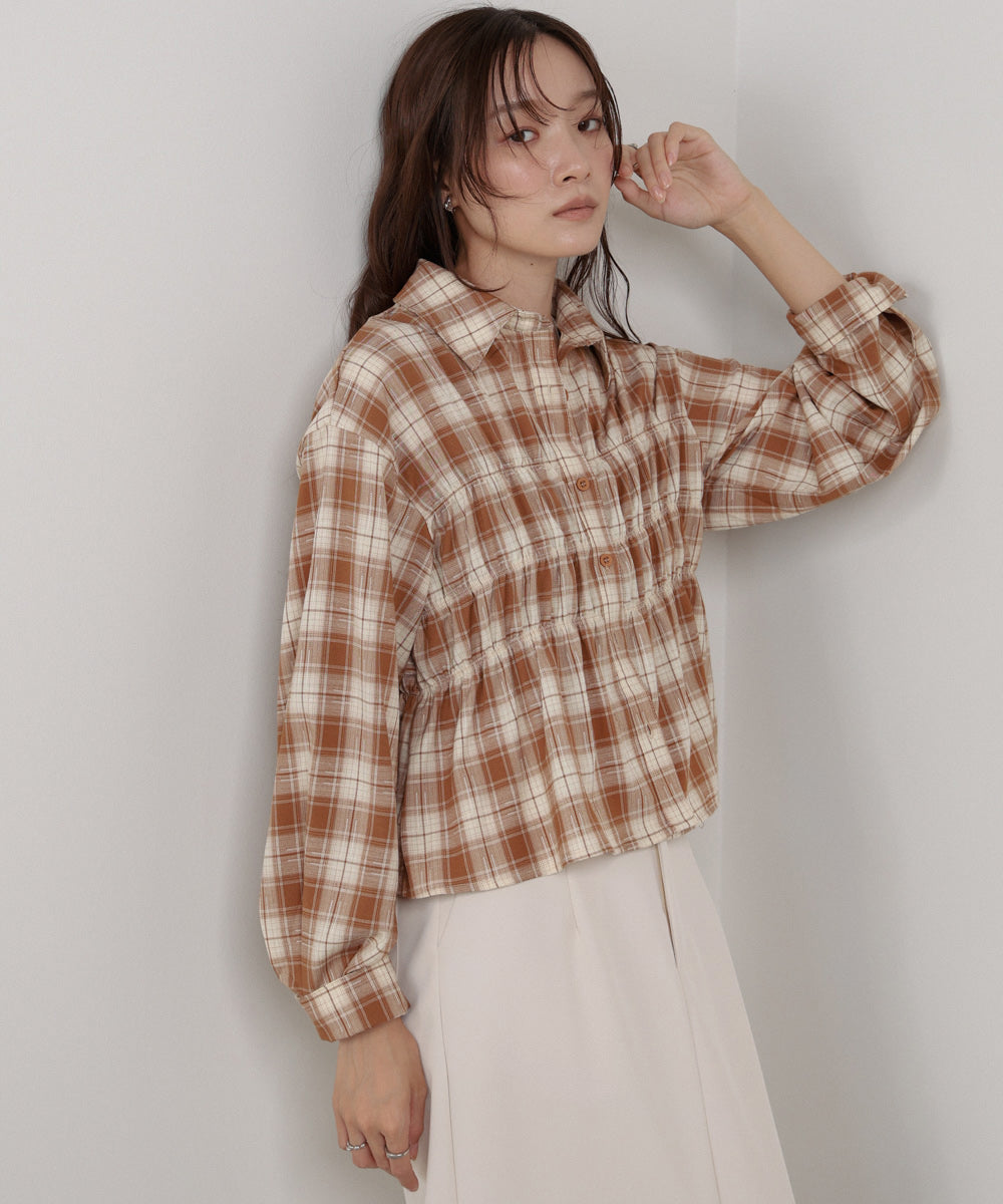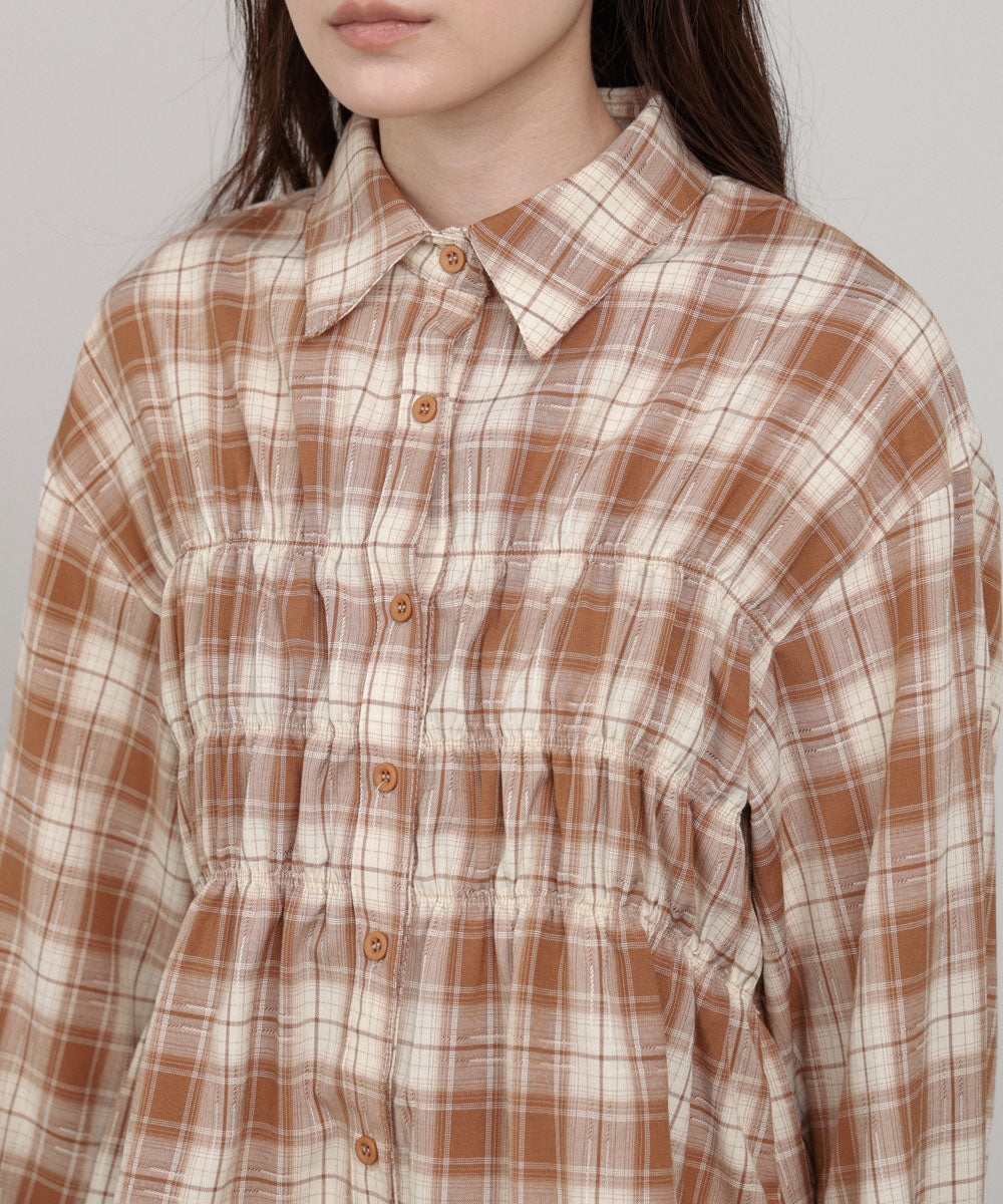 シャーリングビスチェ風デザインチェックシャツ
