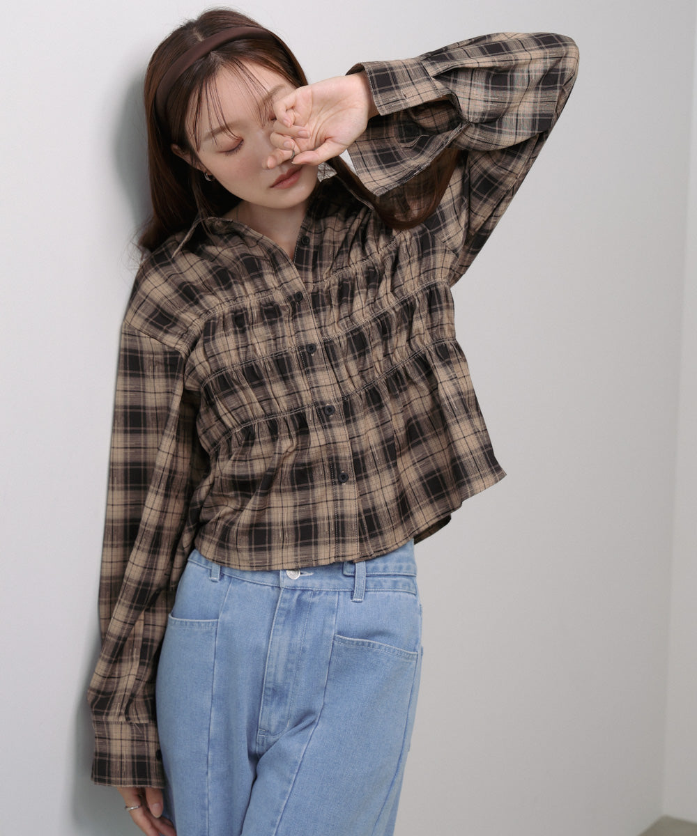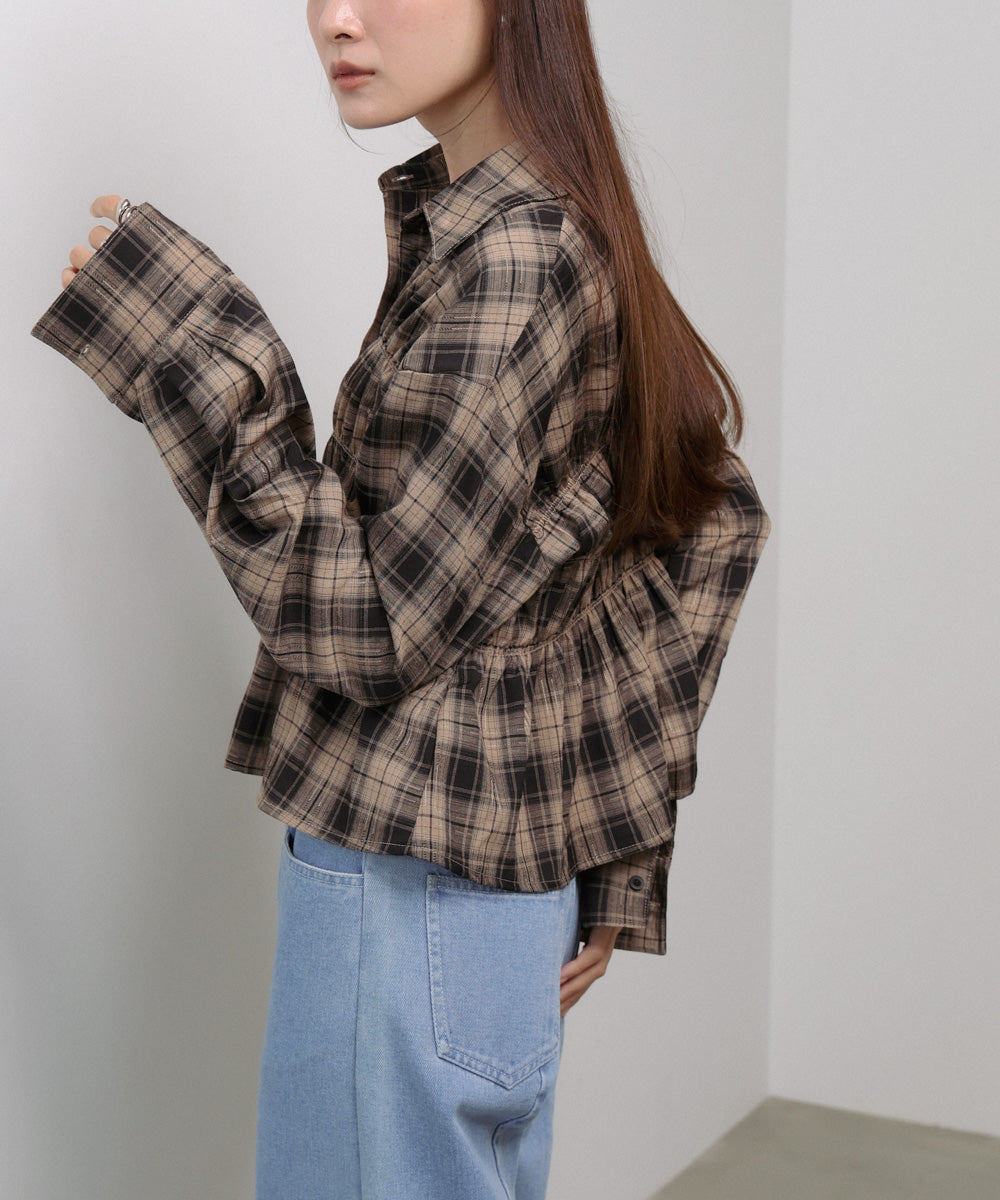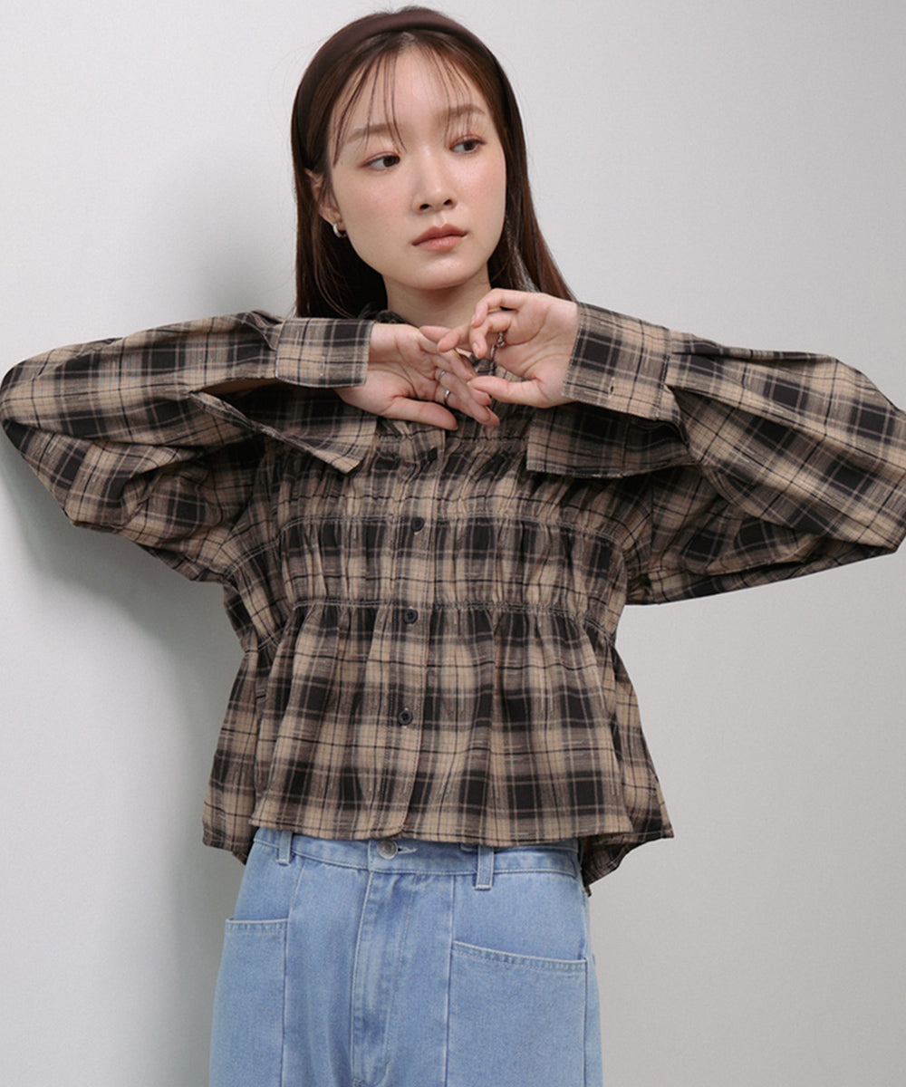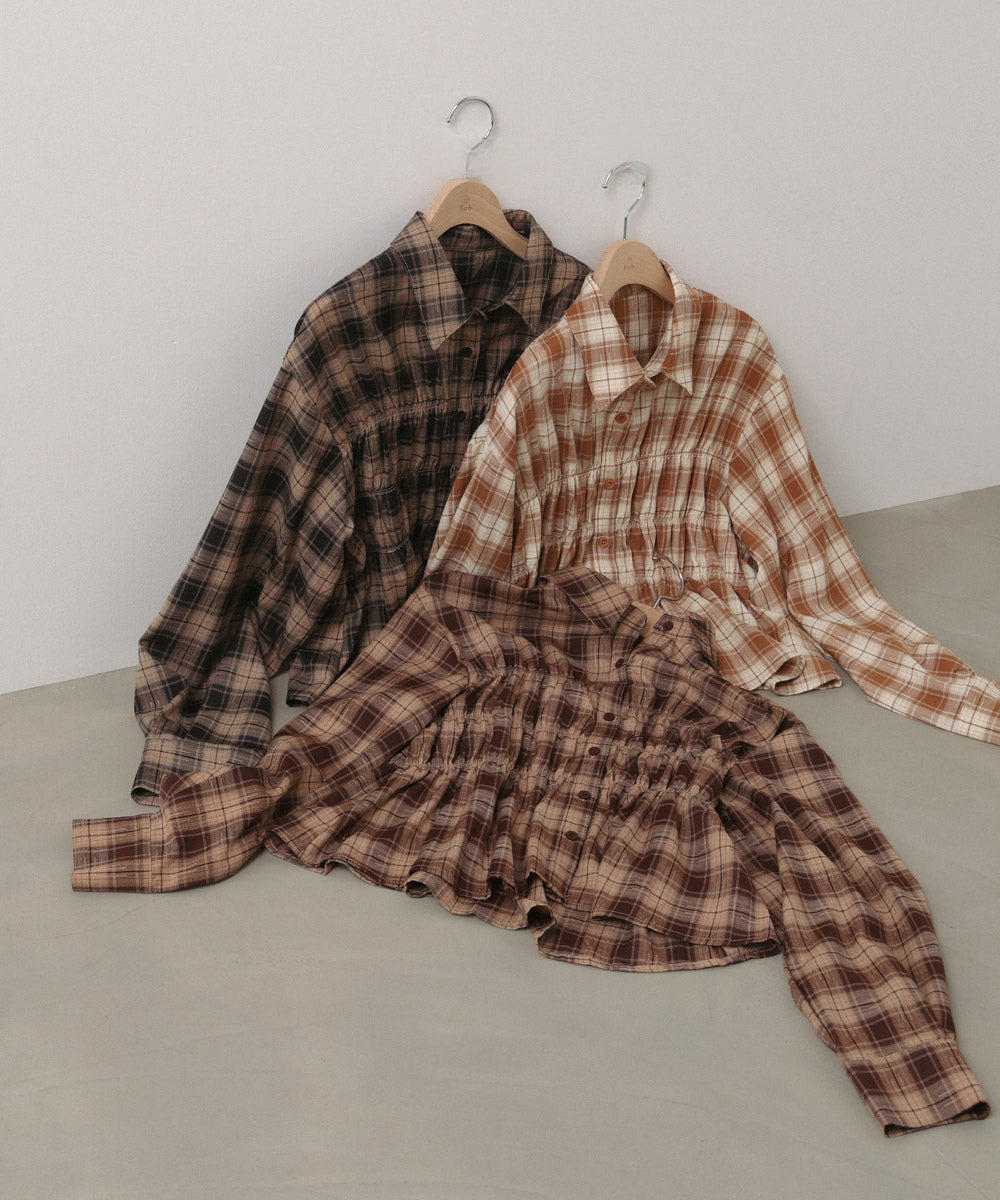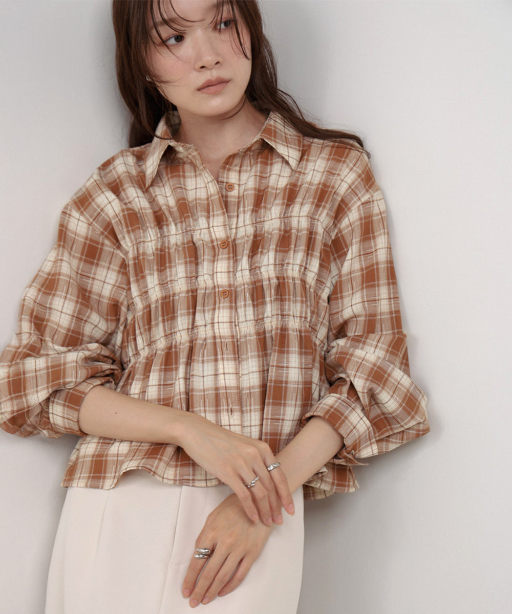 シャーリングビスチェ風デザインチェックシャツ