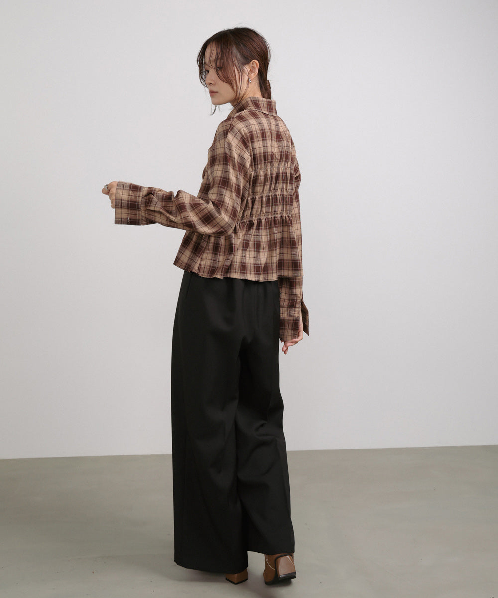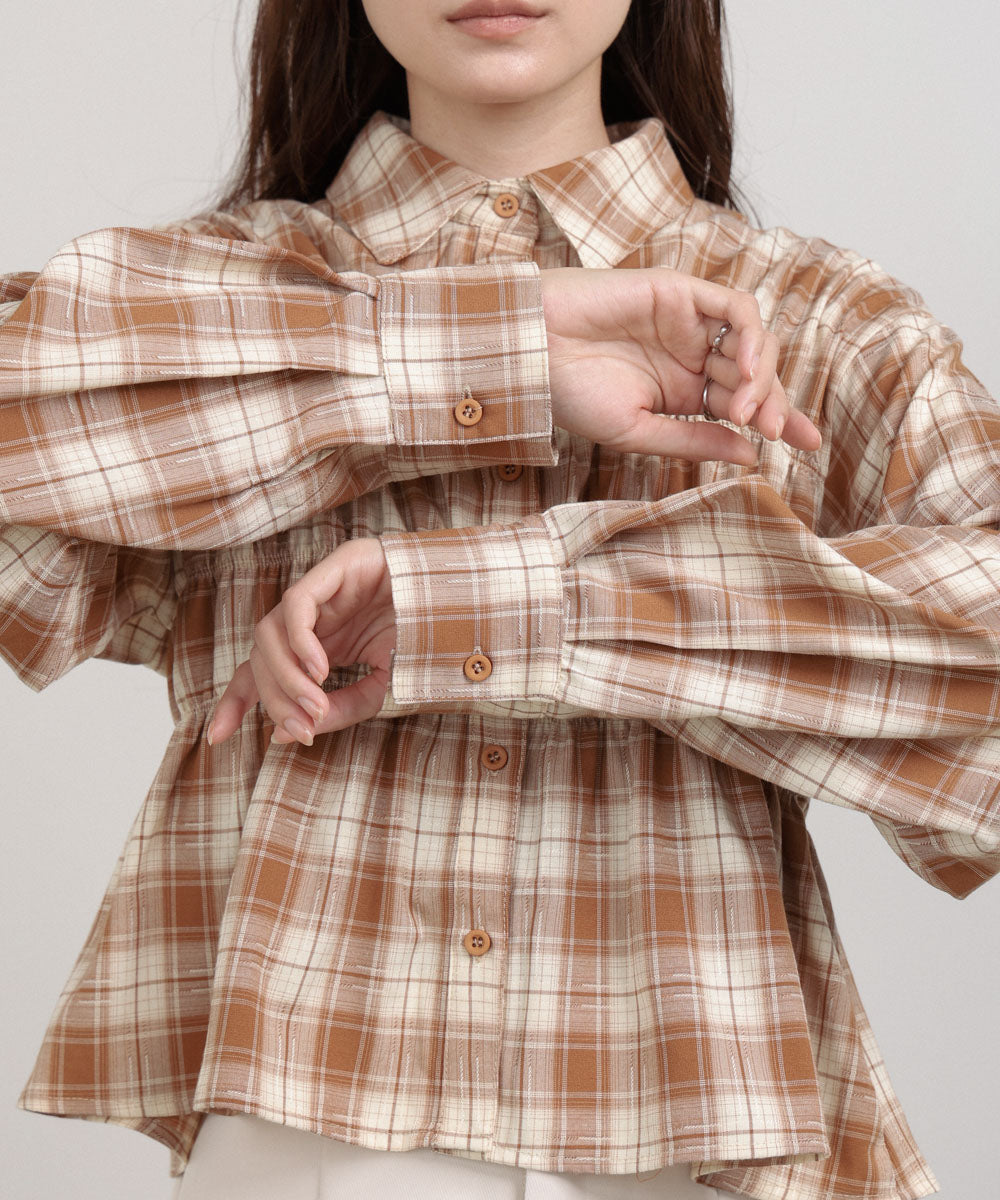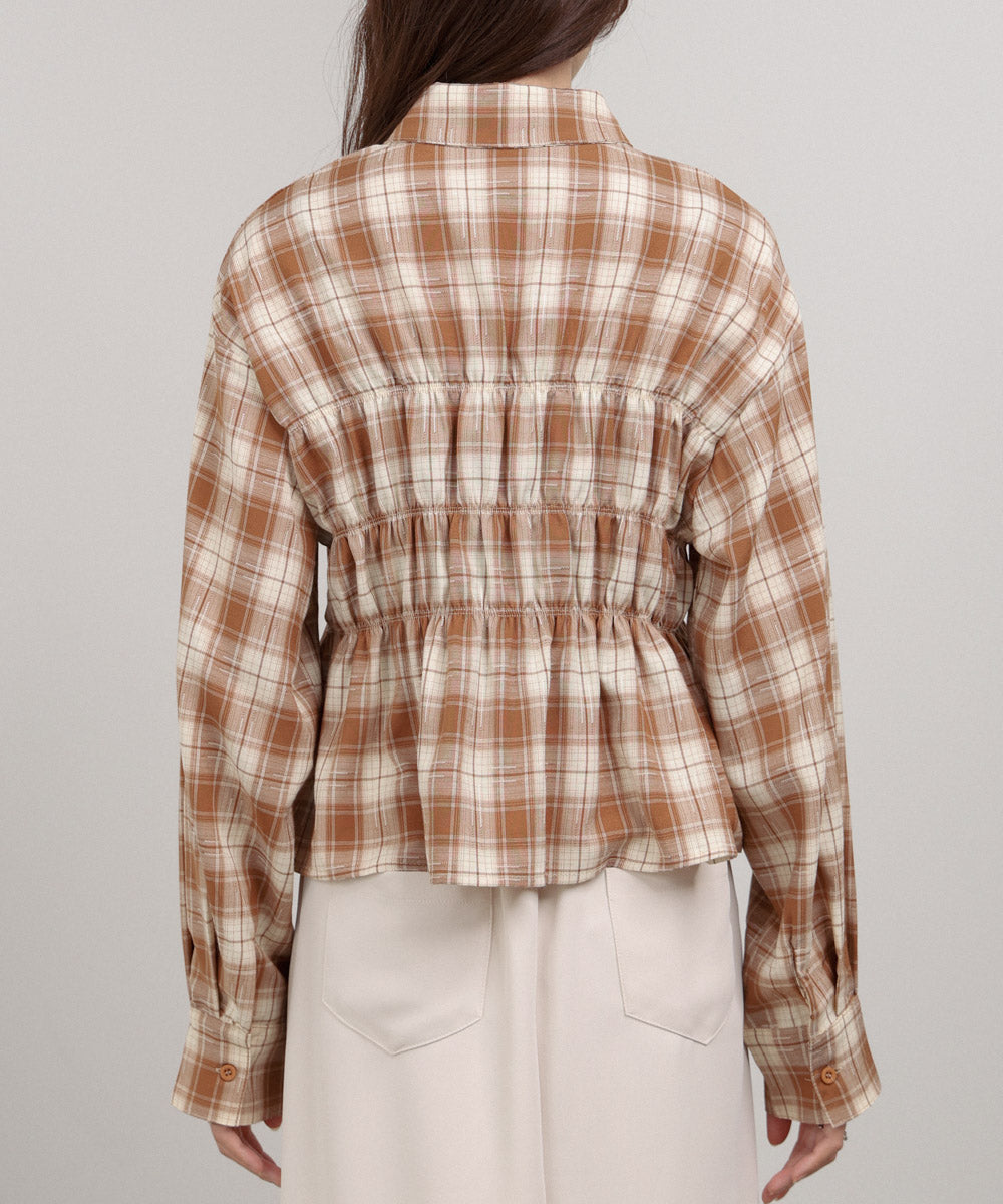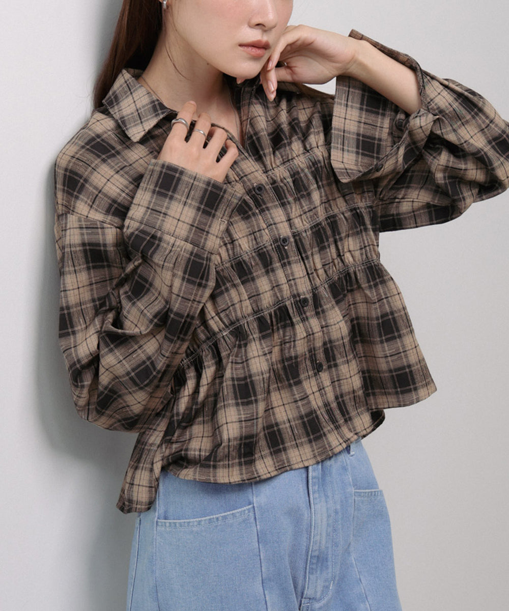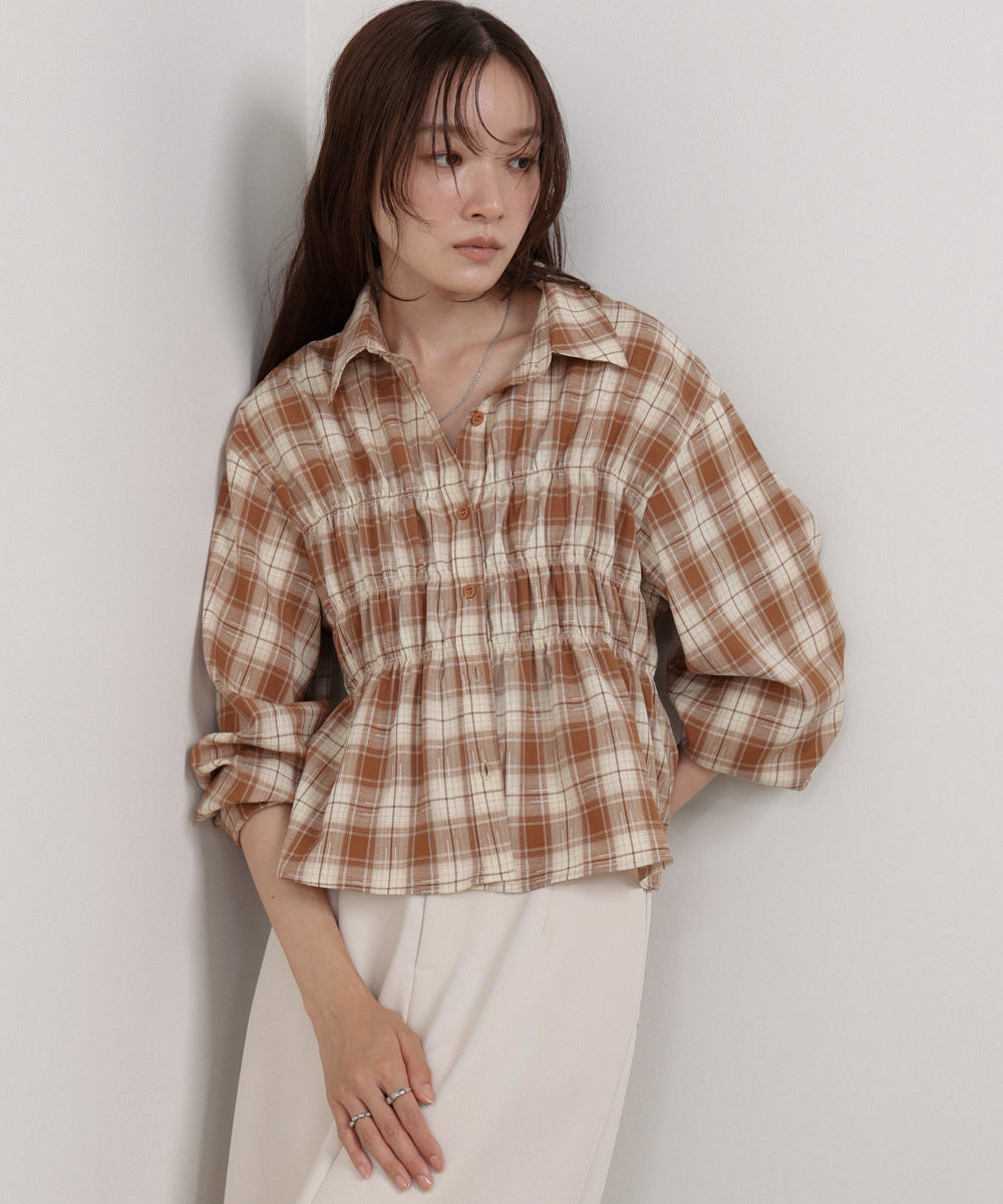 シャーリングビスチェ風デザインチェックシャツ