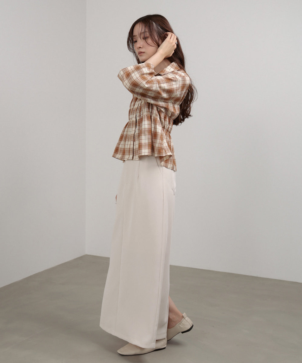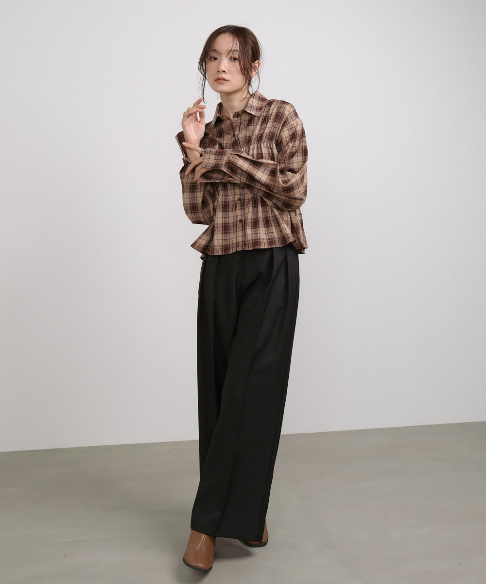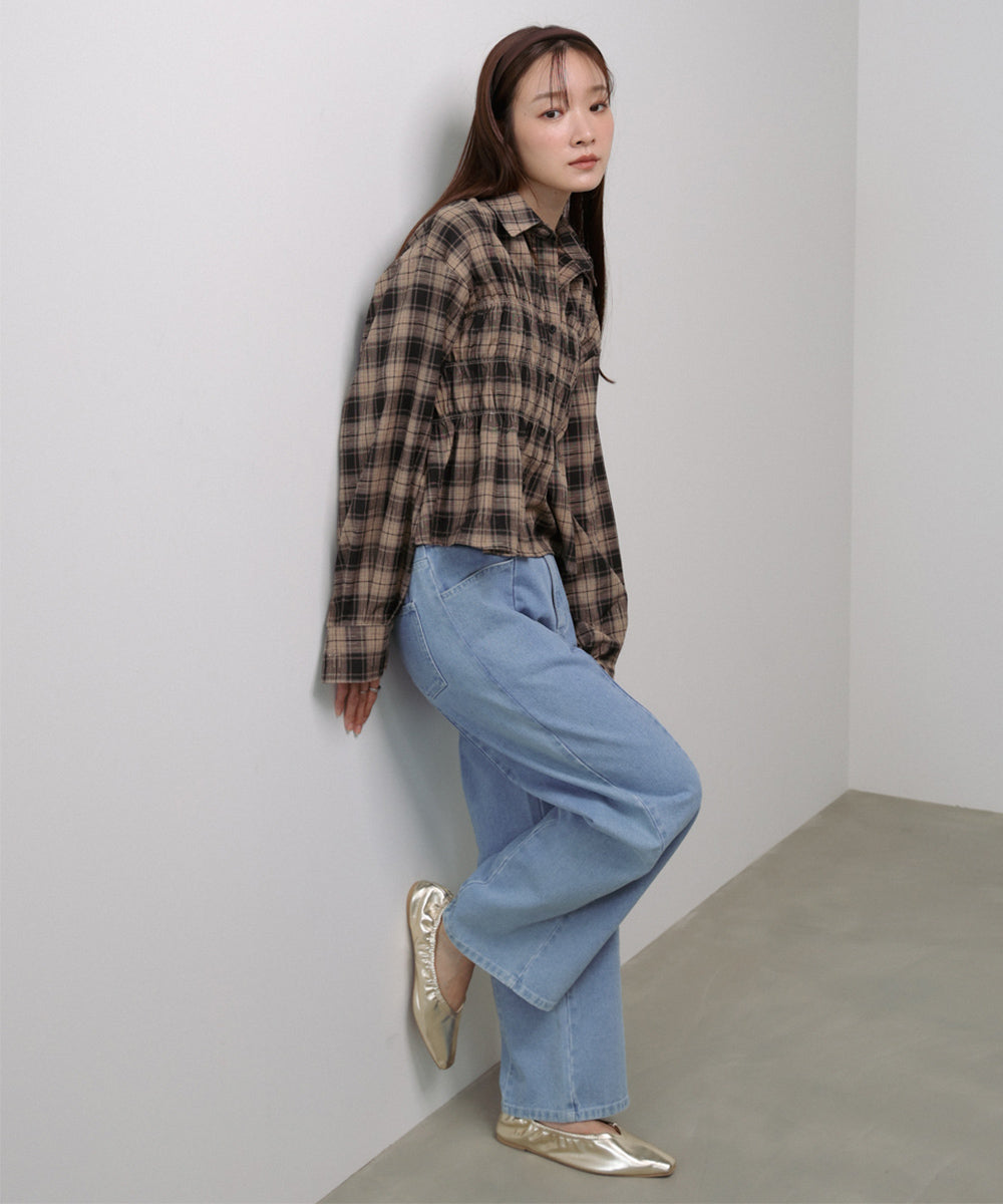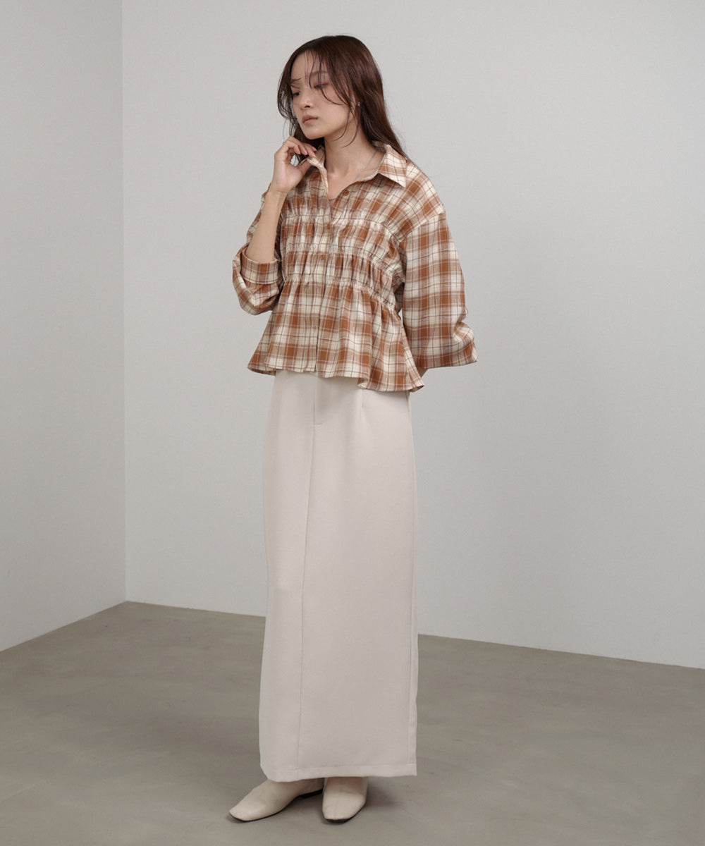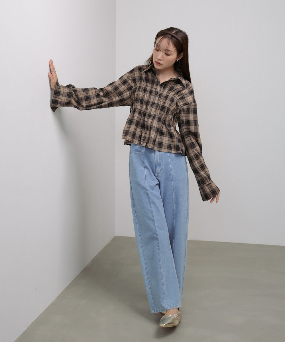 シャーリングビスチェ風デザインチェックシャツ