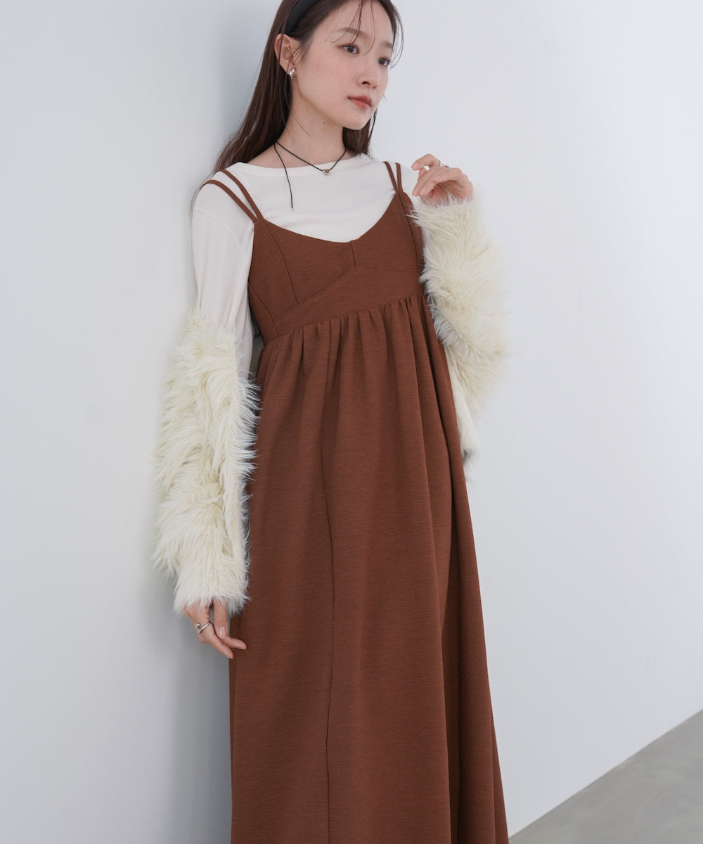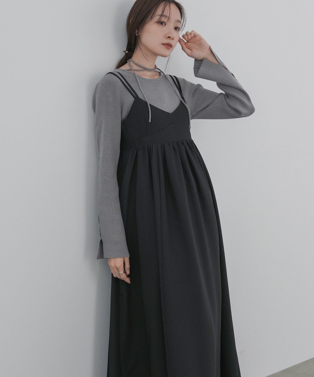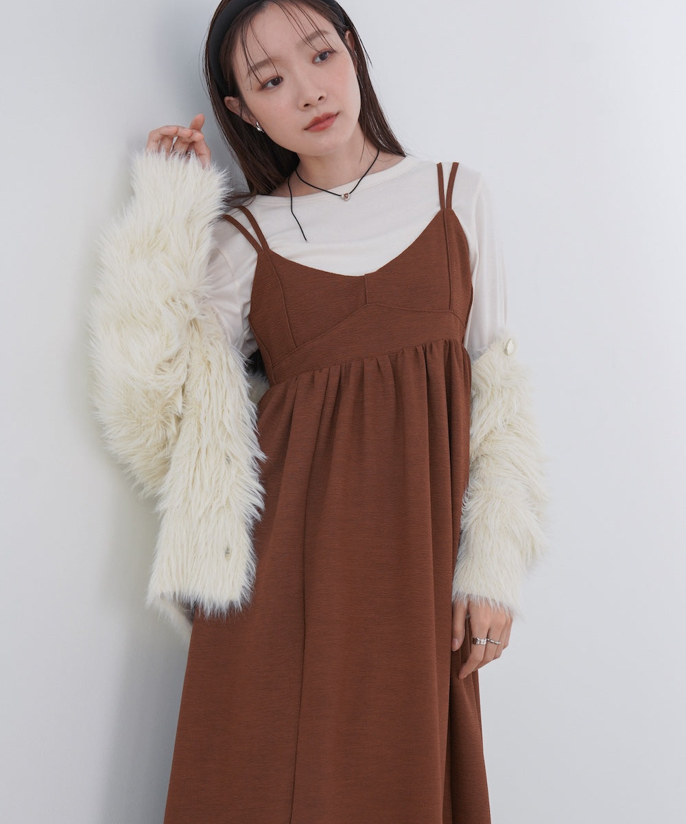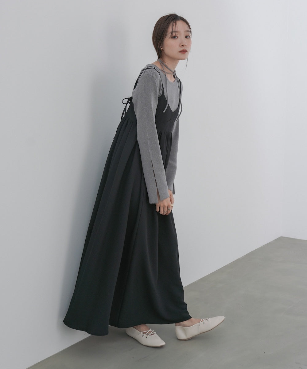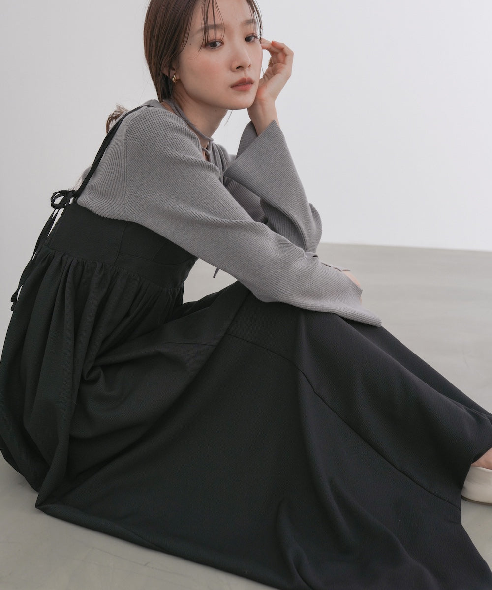 【S・Mサイズ展開】前後2WAYニットカーディガン+ニットキャミワンピース