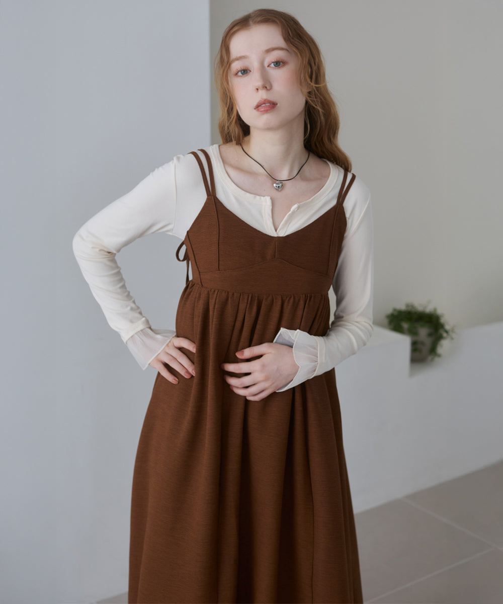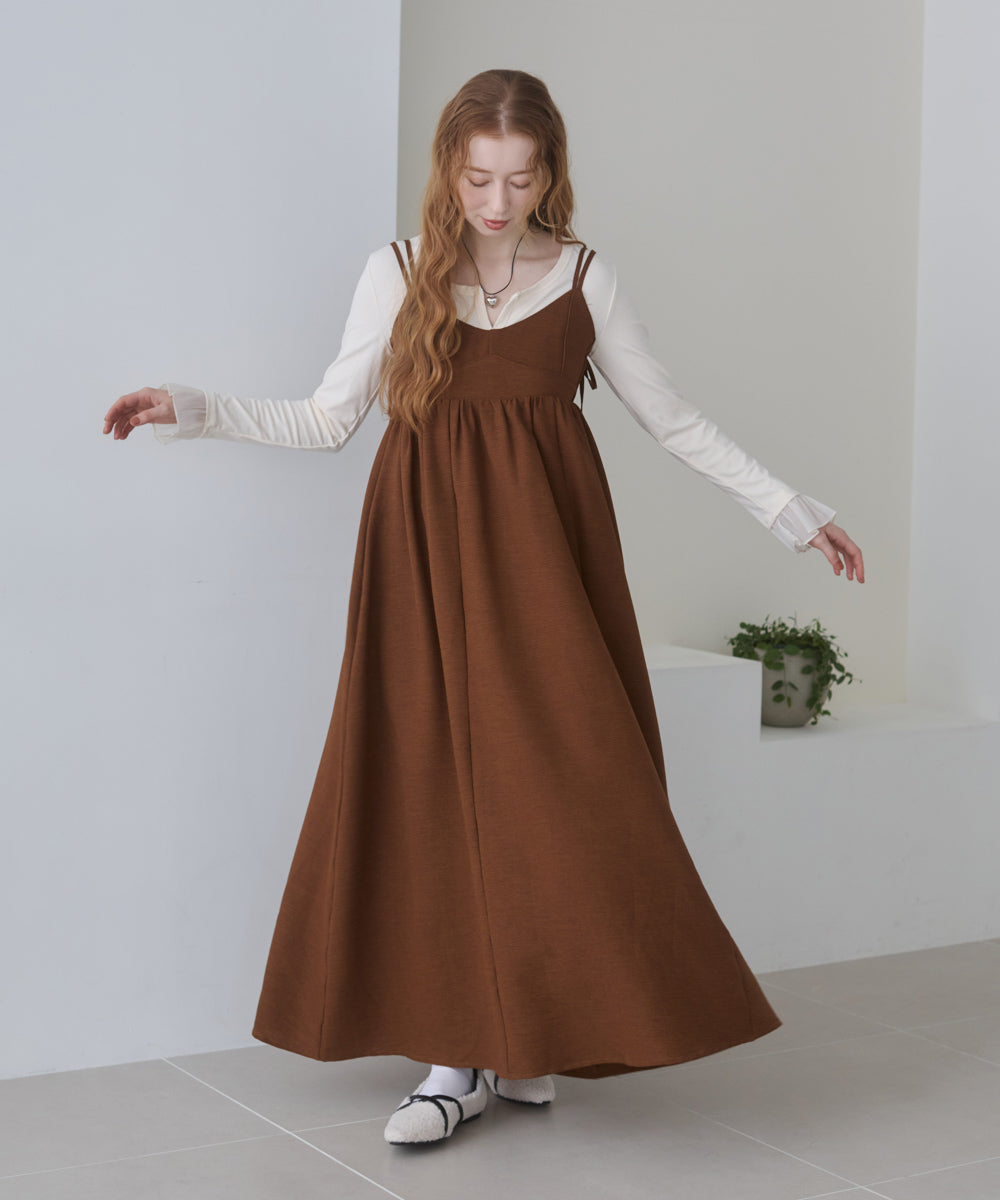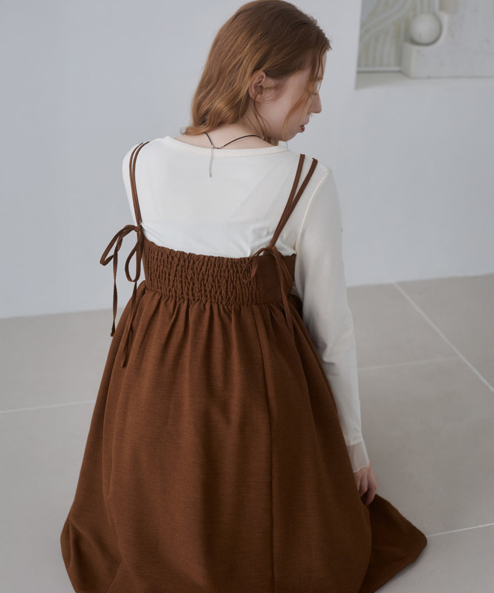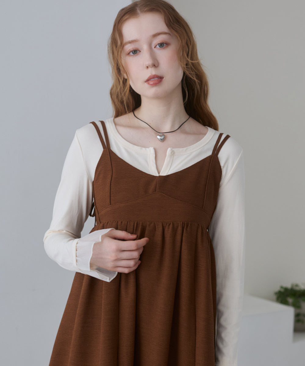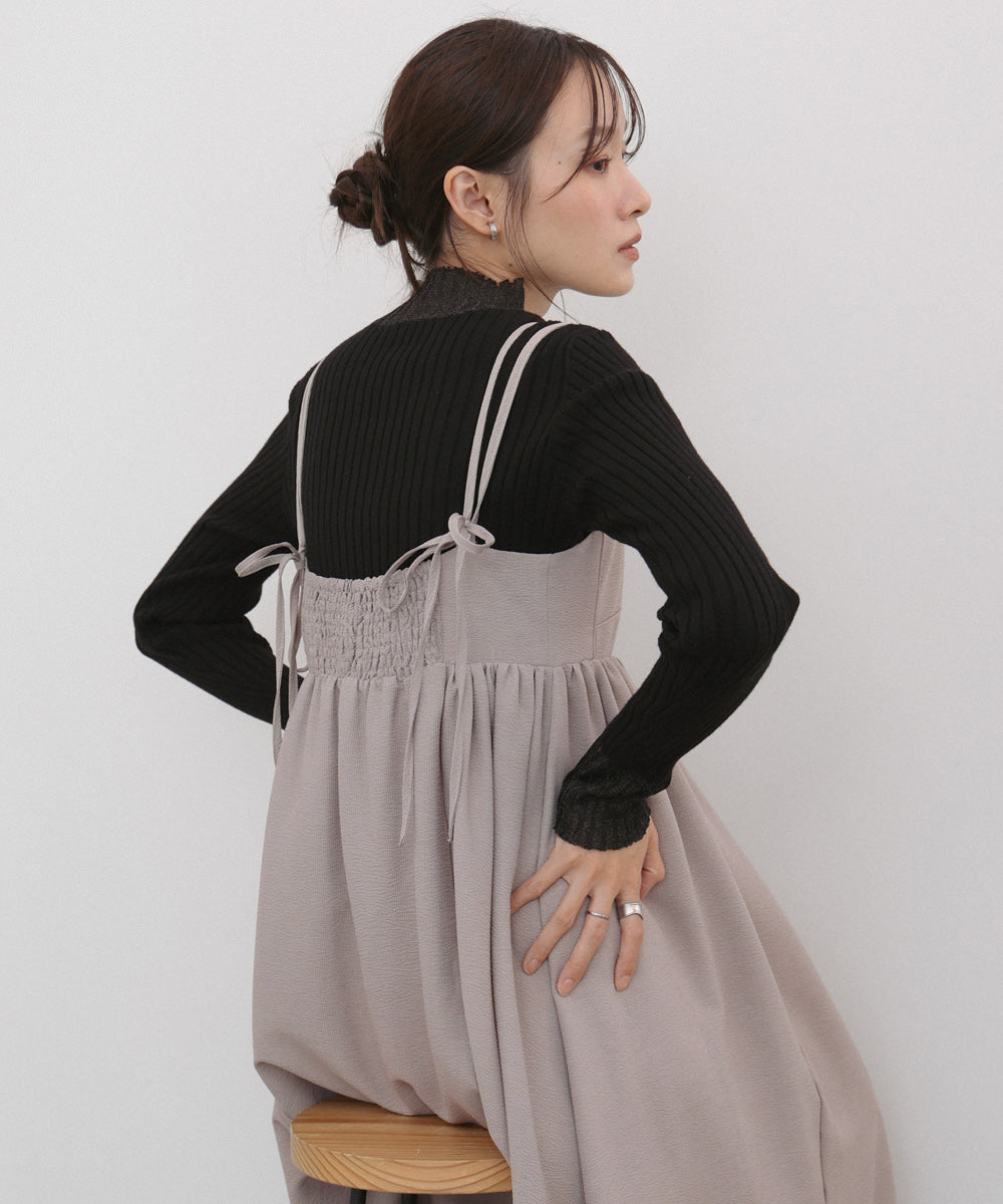 【S・Mサイズ展開】前後2WAYニットカーディガン+ニットキャミワンピース