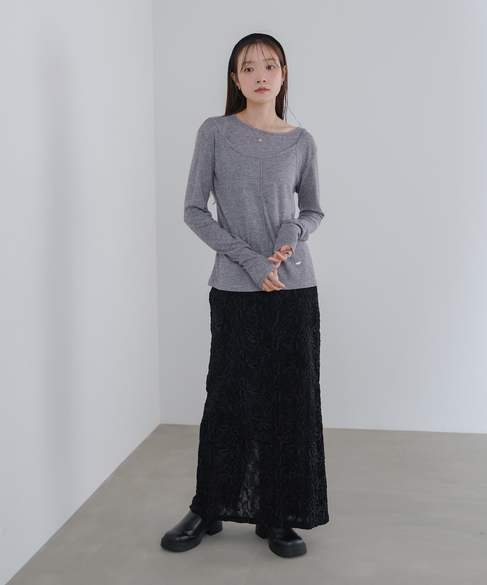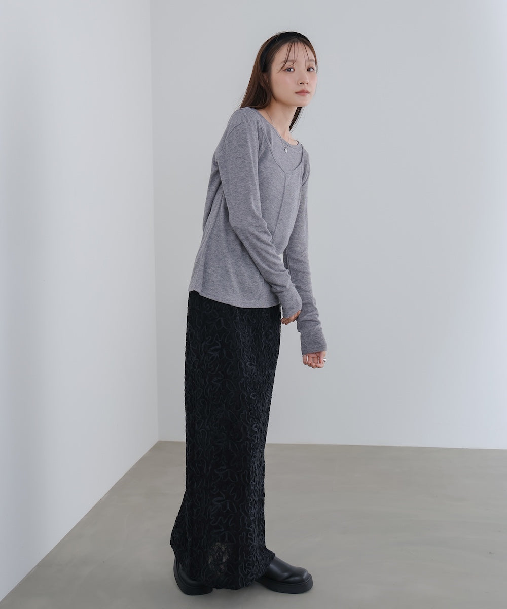【選べるネック】チュールレイヤードリブニット
