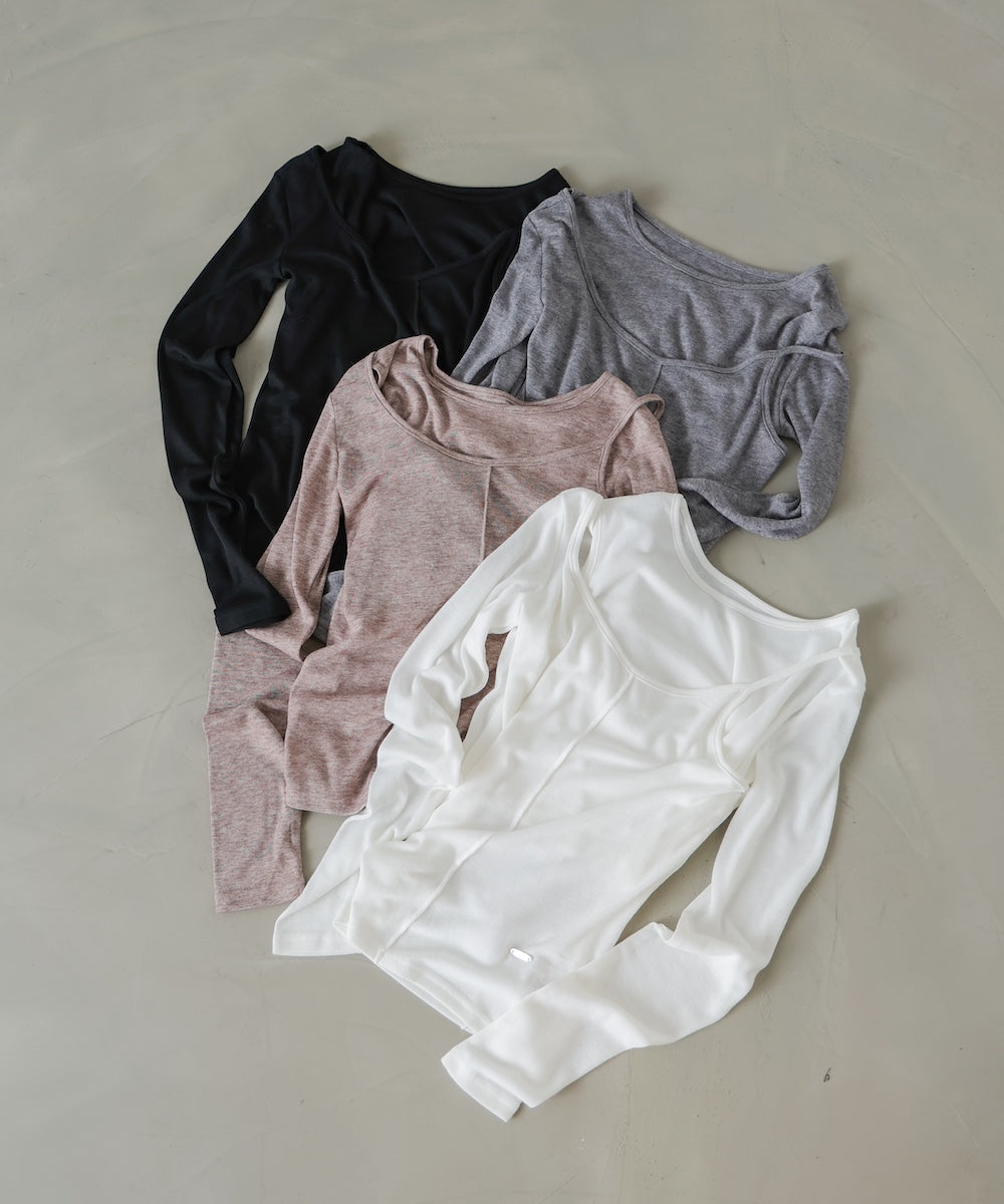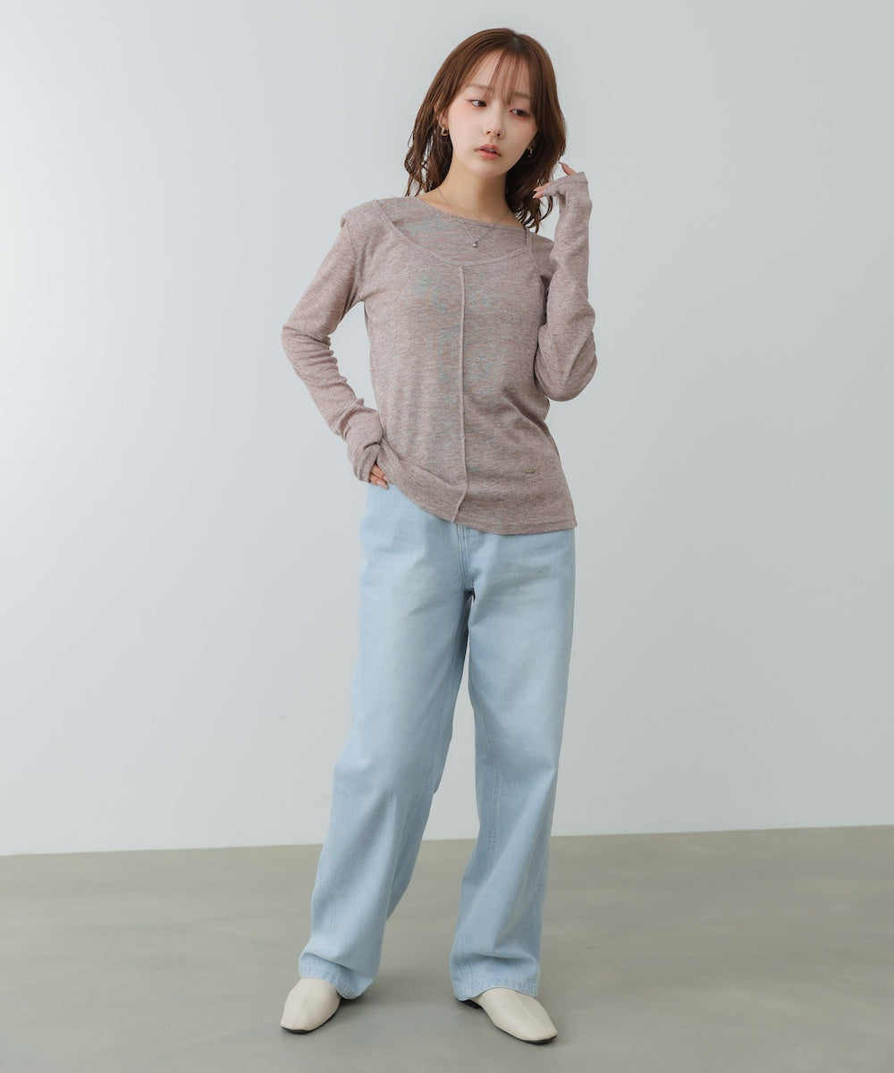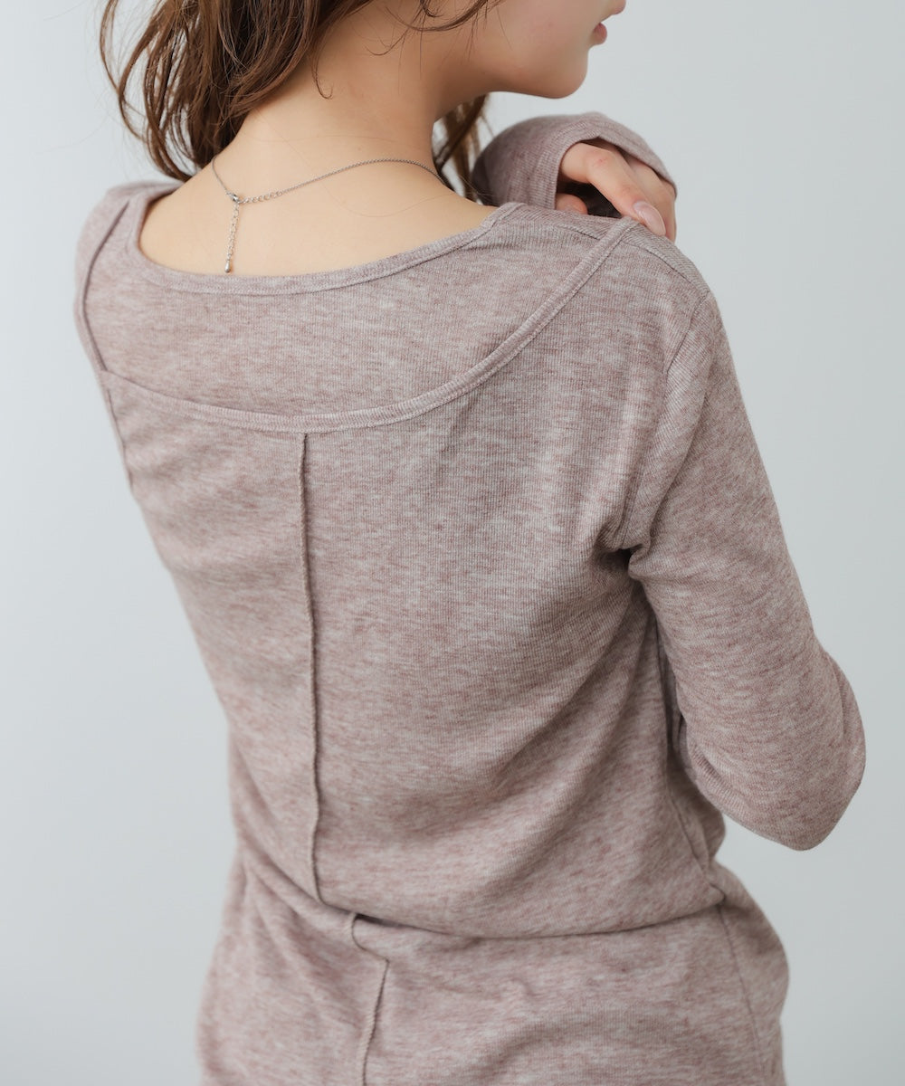 【選べるネック】シアー使いリブニットトップス