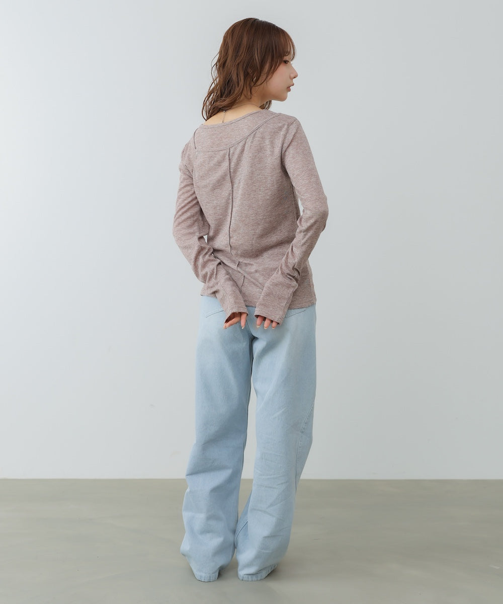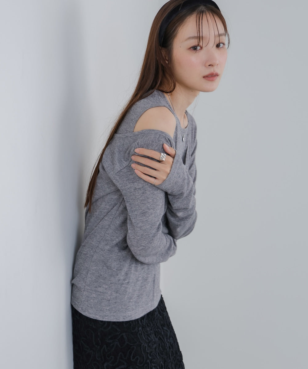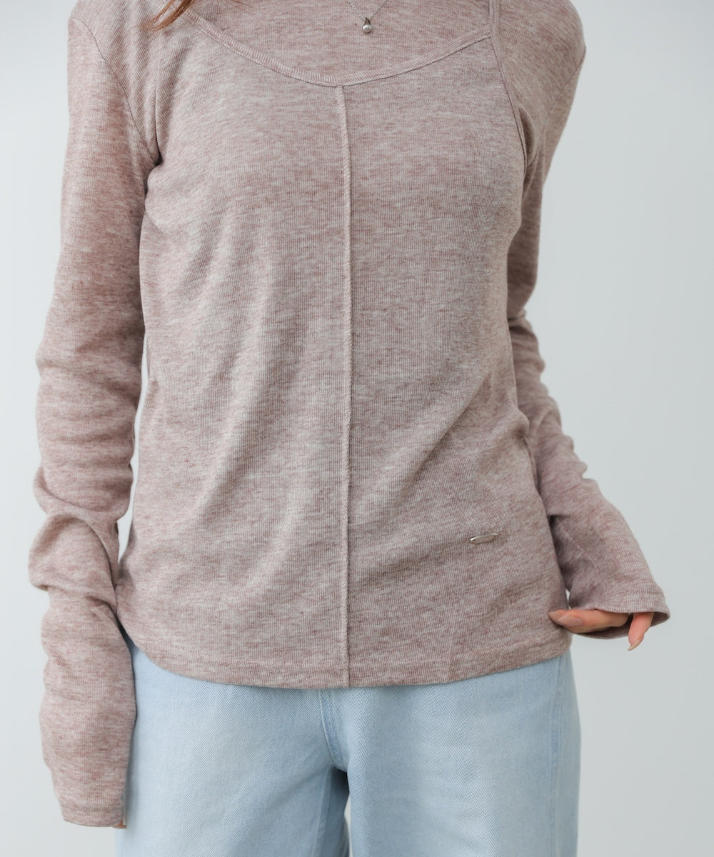 【選べるネック】シアー使いリブニットトップス