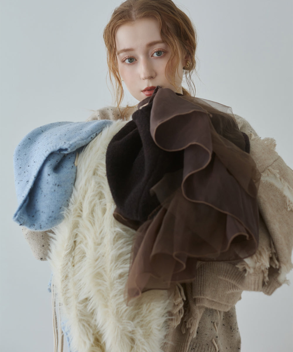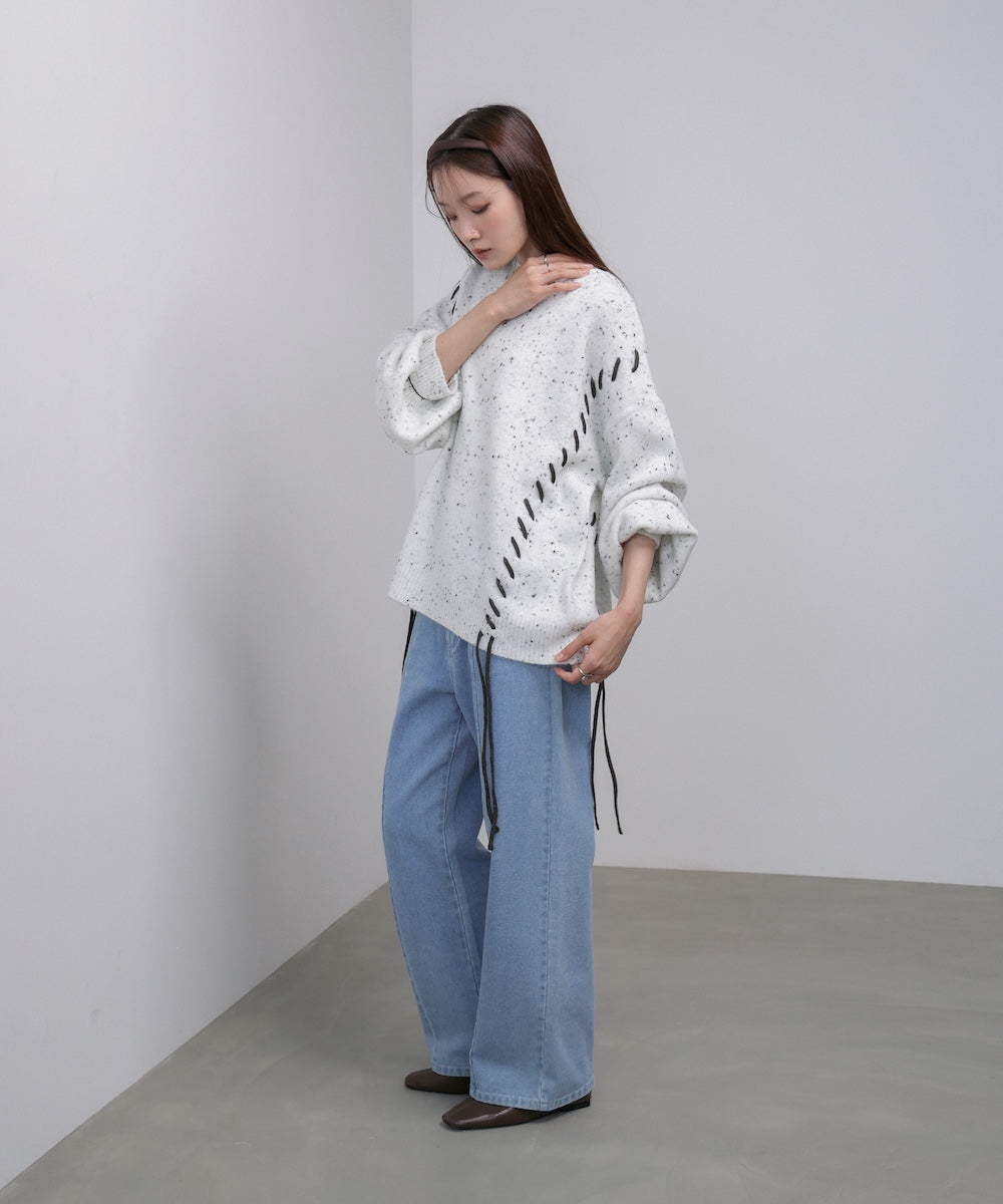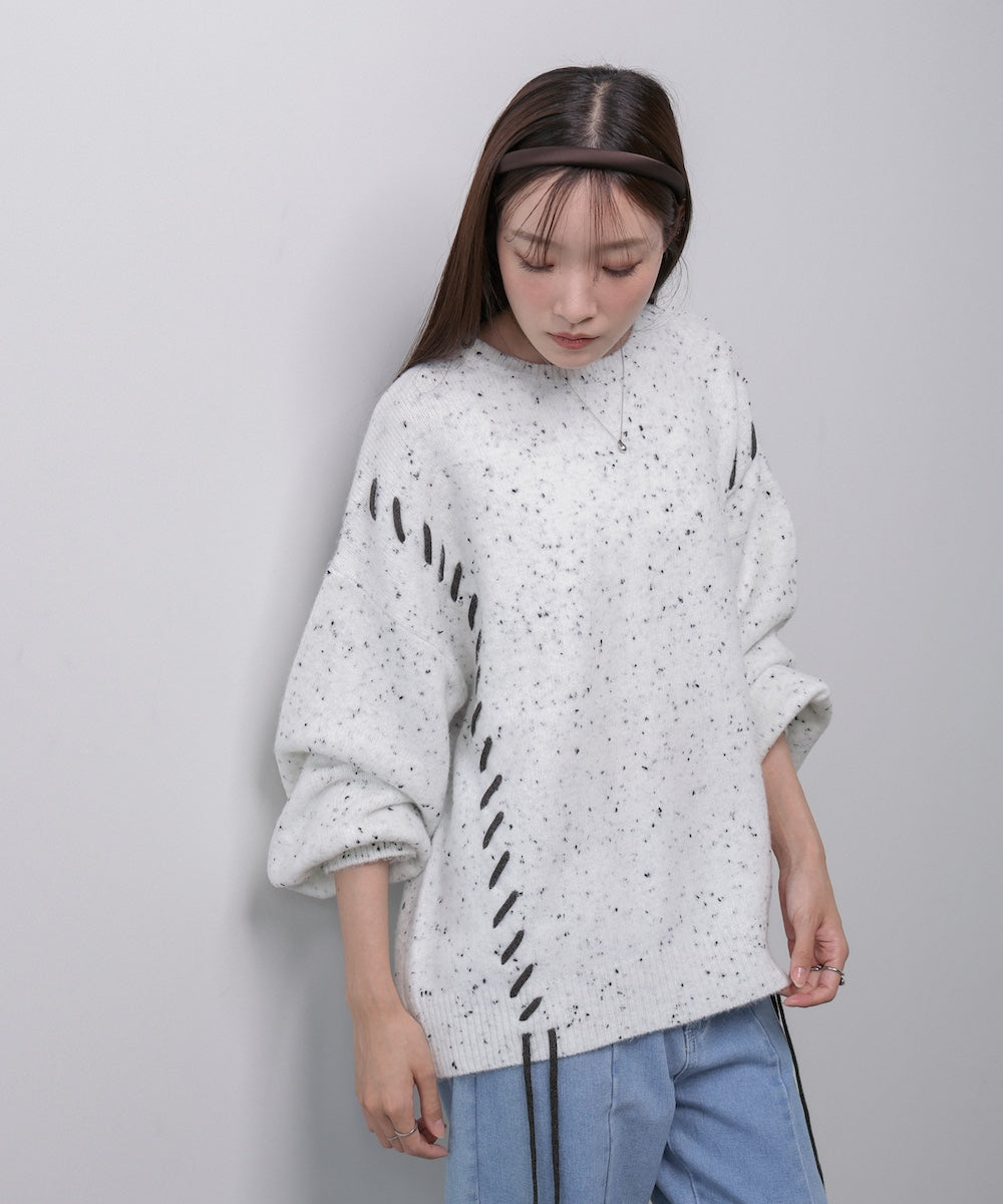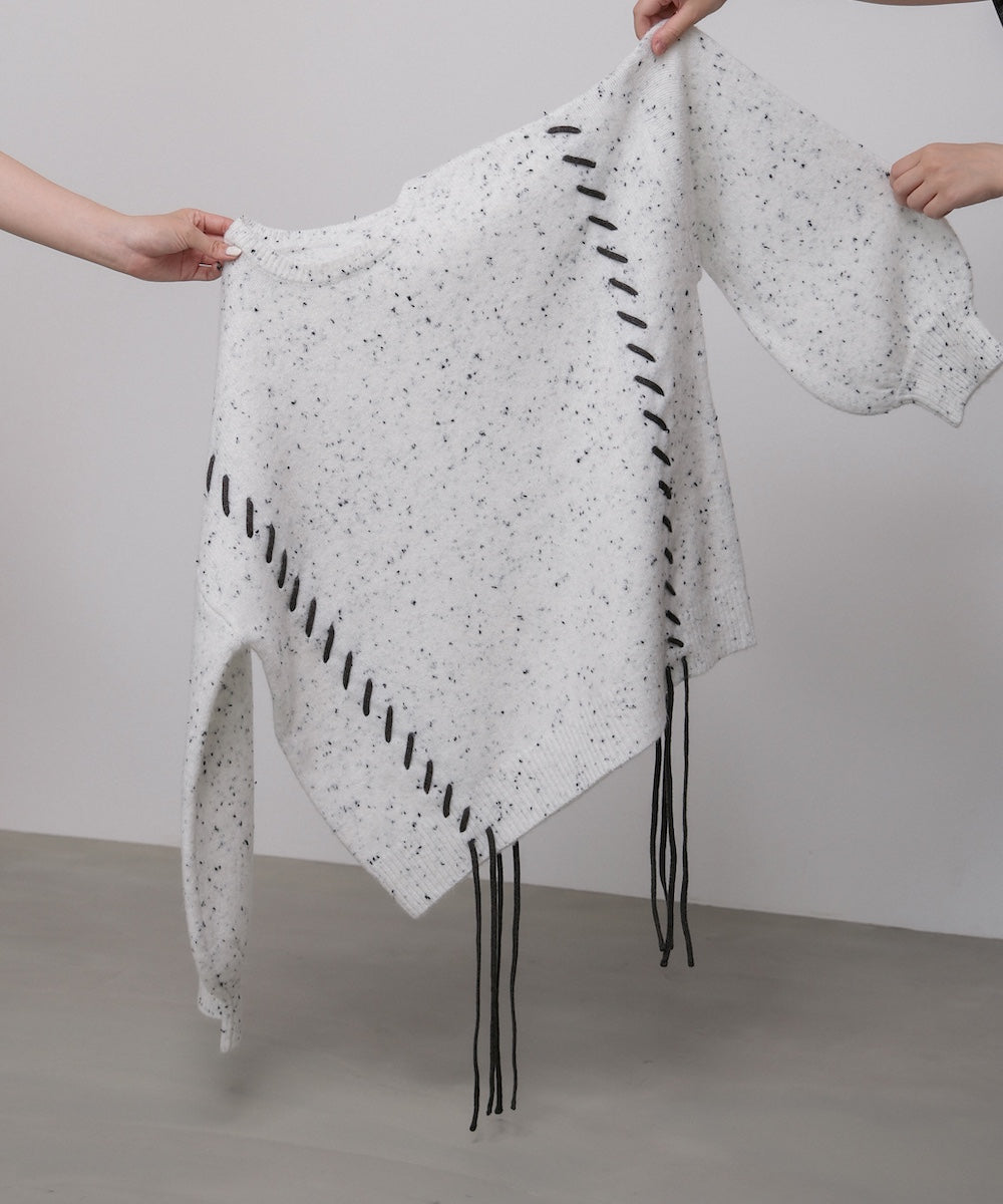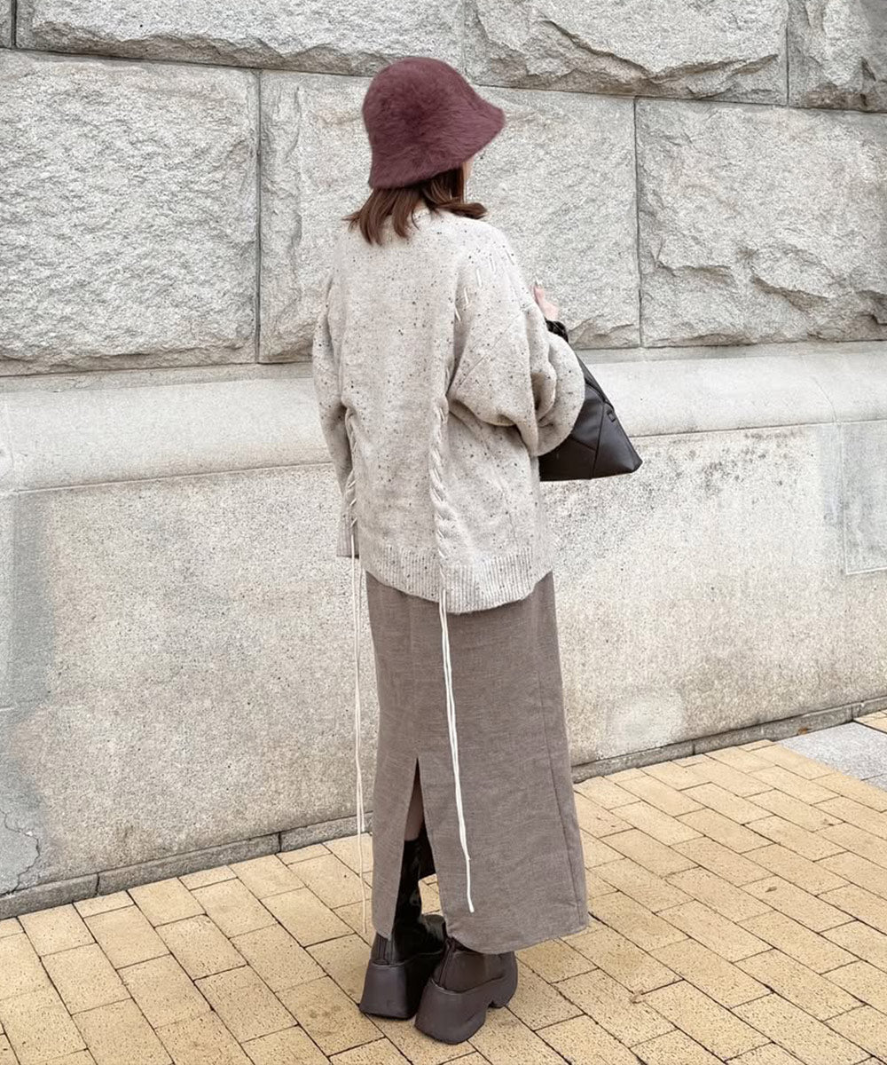 去年大人気だったチョコチップニットトップスが新しいカラーを加えて登場!ネップヤーンの暖かみがシーズンムード満載なニットトップス!控えめに浮き出た表面感が、まるでチョコチップのような可愛らしいルックスです。ショルダー部分から施された編み上げのデザインが目を惹くアクセントになり、1枚でお召し頂いても華やかさ際立つディティールに。ルーズなシルエットがフェミニンさを引き立て、大人女子のカジュアルスタイルをさらにブラッシュアップしてくれるアイテムになりました。
