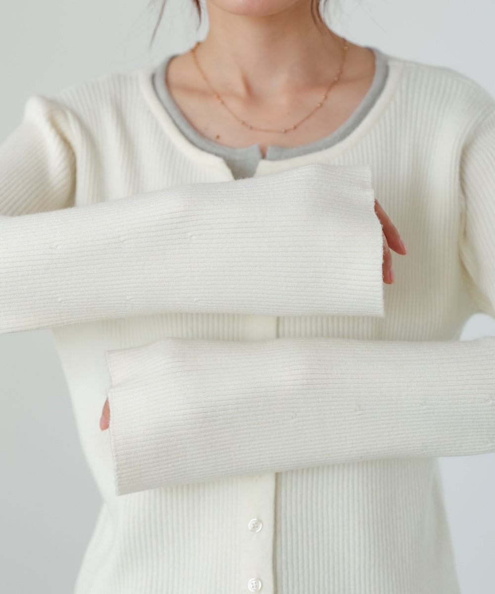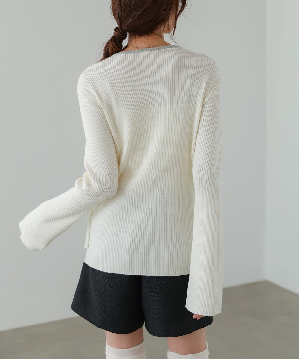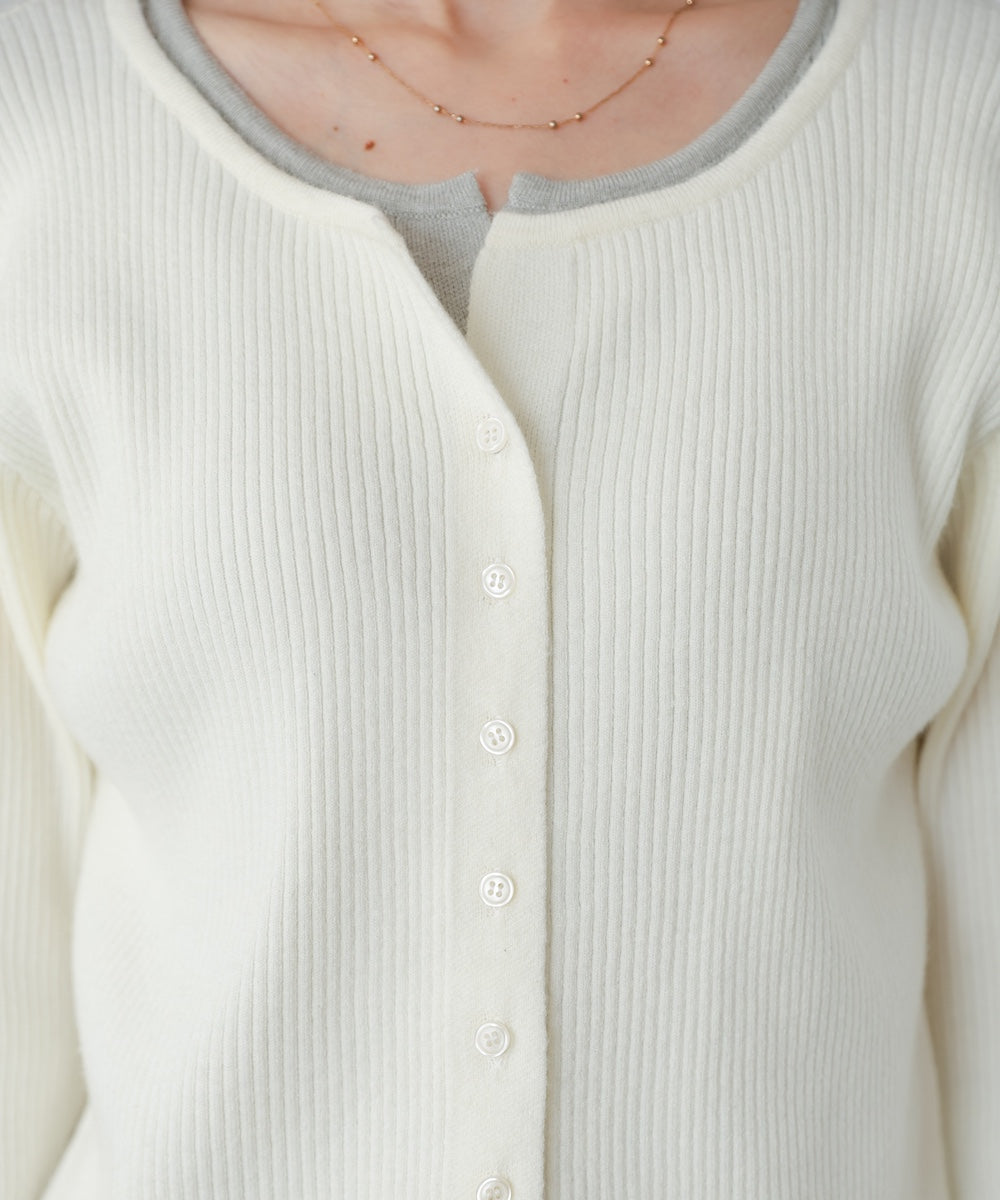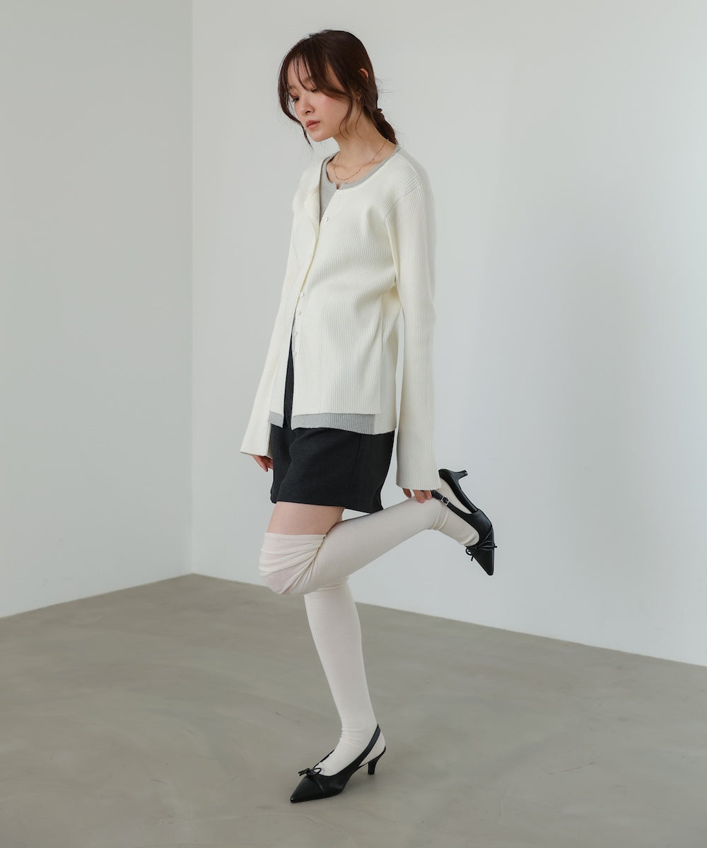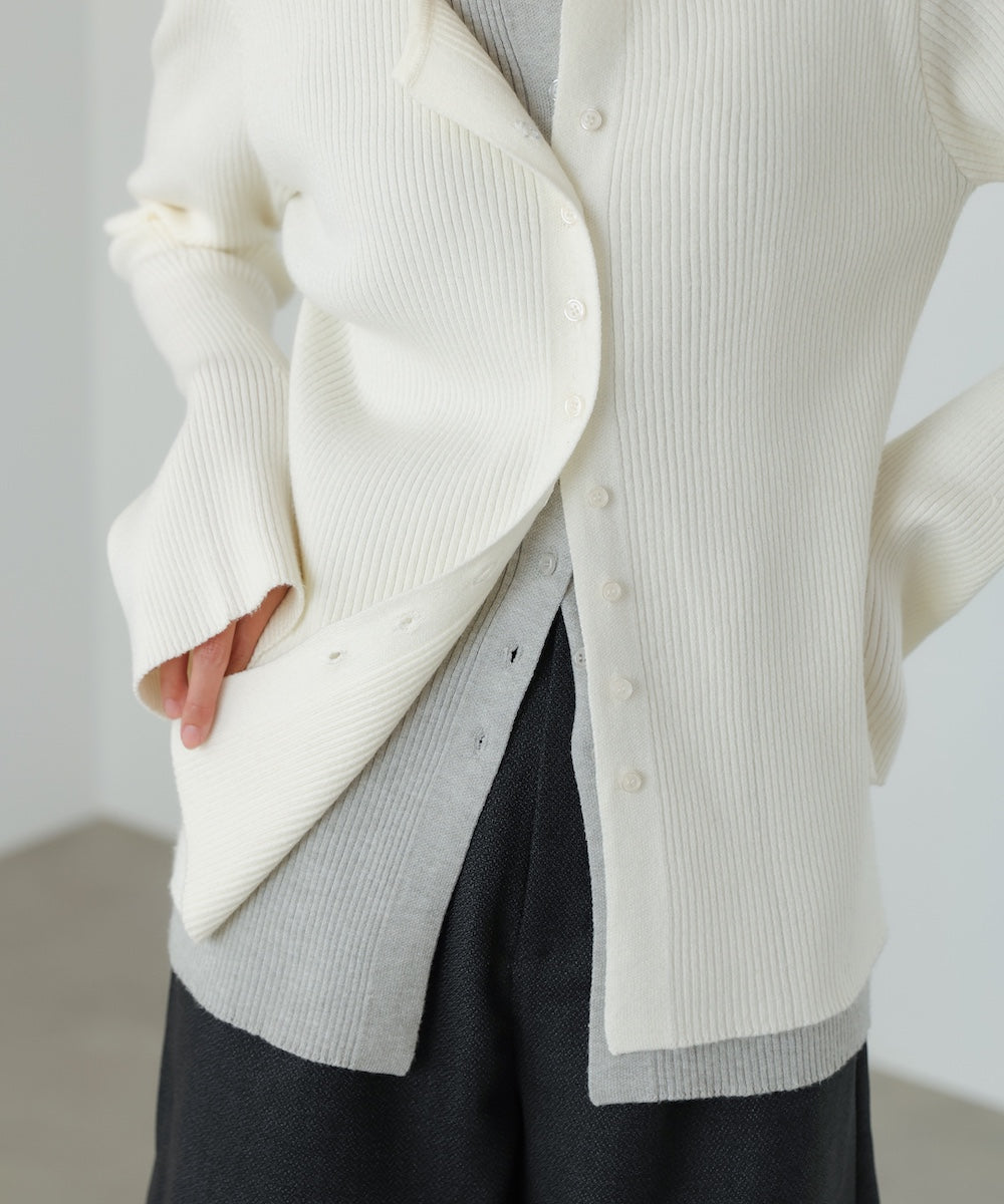 配色デザインでレイヤード風に見せた、着映え力のあるニットカーディガン。実は一体型になっており、重ね着いらずでバランスの取れたスタイリングが完成します。ボタンの開け閉めによって印象を変えられるので、きちんと感のある着こなしから程よく抜け感のあるスタイルまで幅広く対応。アイボリー×グレーは上品に、ブラック×ブルーは洗練された印象に、グレー×ピンクはさりげなく女性らしいムードを演出してくれます。通勤からデイリーまで活躍するレイヤードニットです。