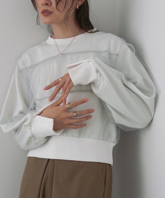 軽やかなクロシェ編み地で重たく見えず、抜け感のあるシルエットで涼しげな印象に。