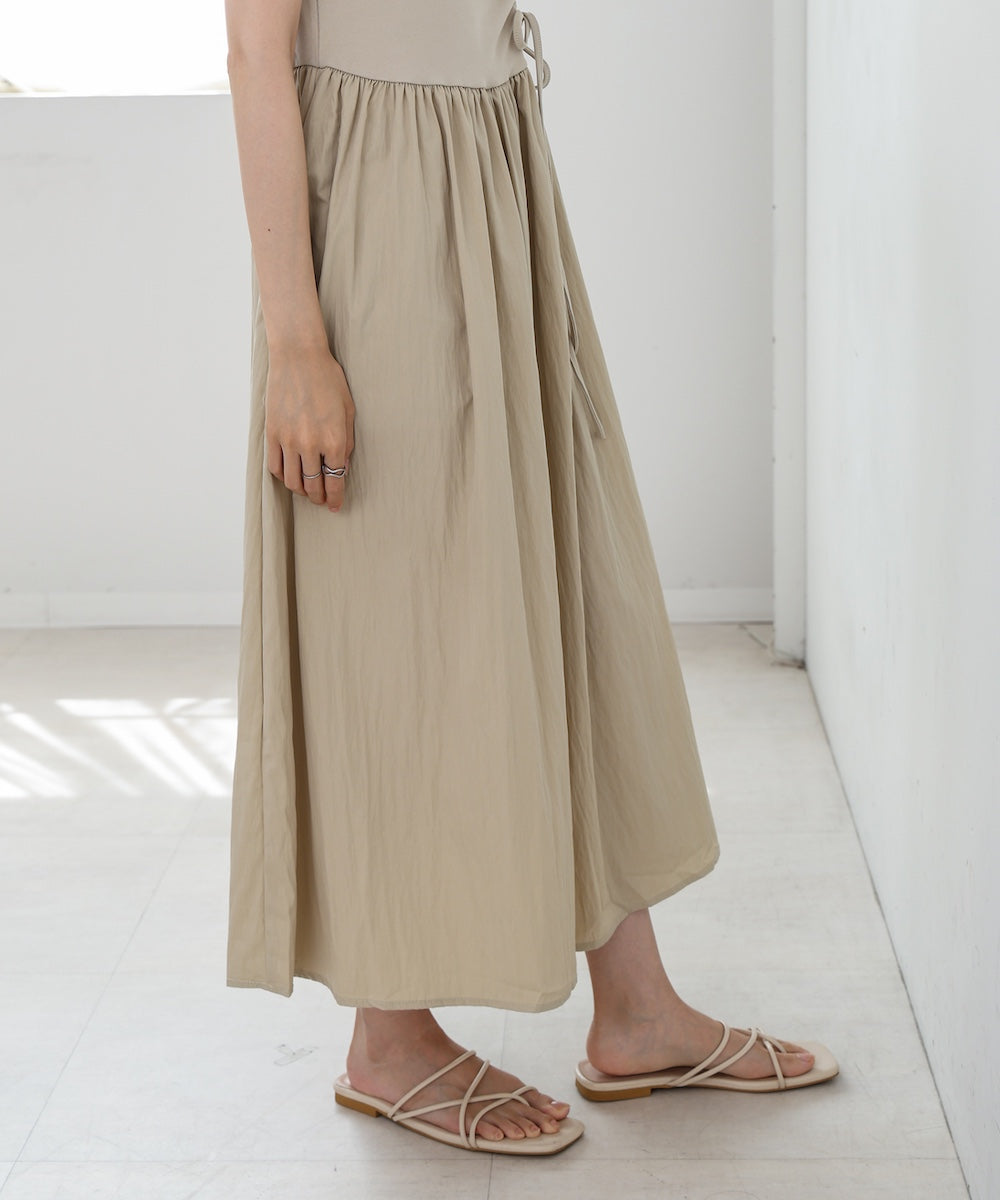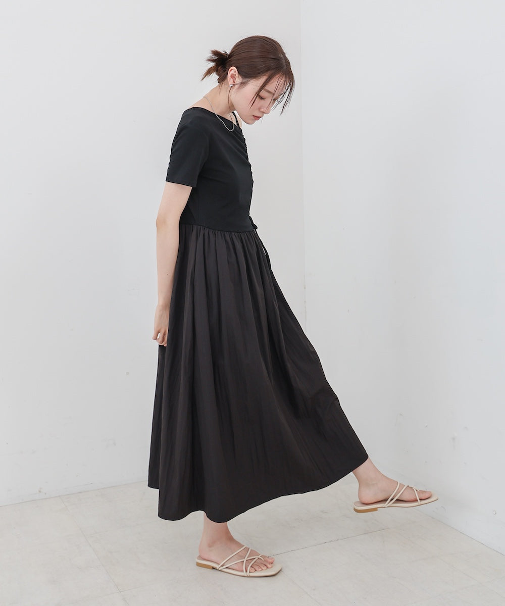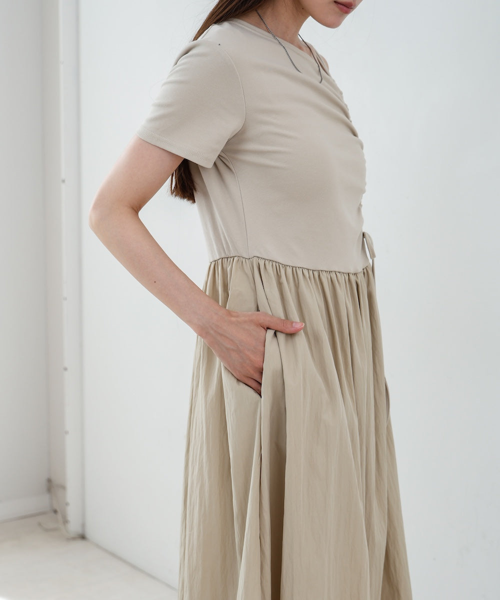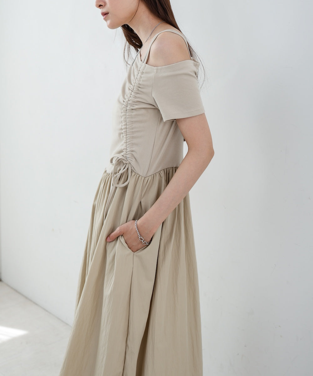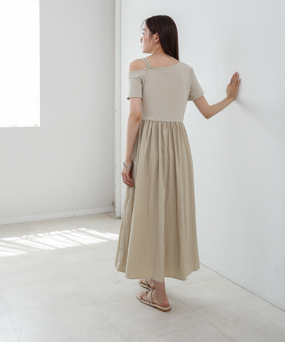 アシンメトリーデザイン×シャーリングが生み出す、立体的で印象的なシルエットが魅力の一着。片側に寄せたシャーリングディテールがウエストまで伸び、自然とスタイルアップを叶えてくれます。アシンメトリーデザイン部分も肩ひもがついているので安心して着ていただけます。