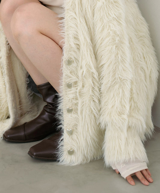 【選べる着丈】前後2WAYハートボタンシャギーニットカーディガン