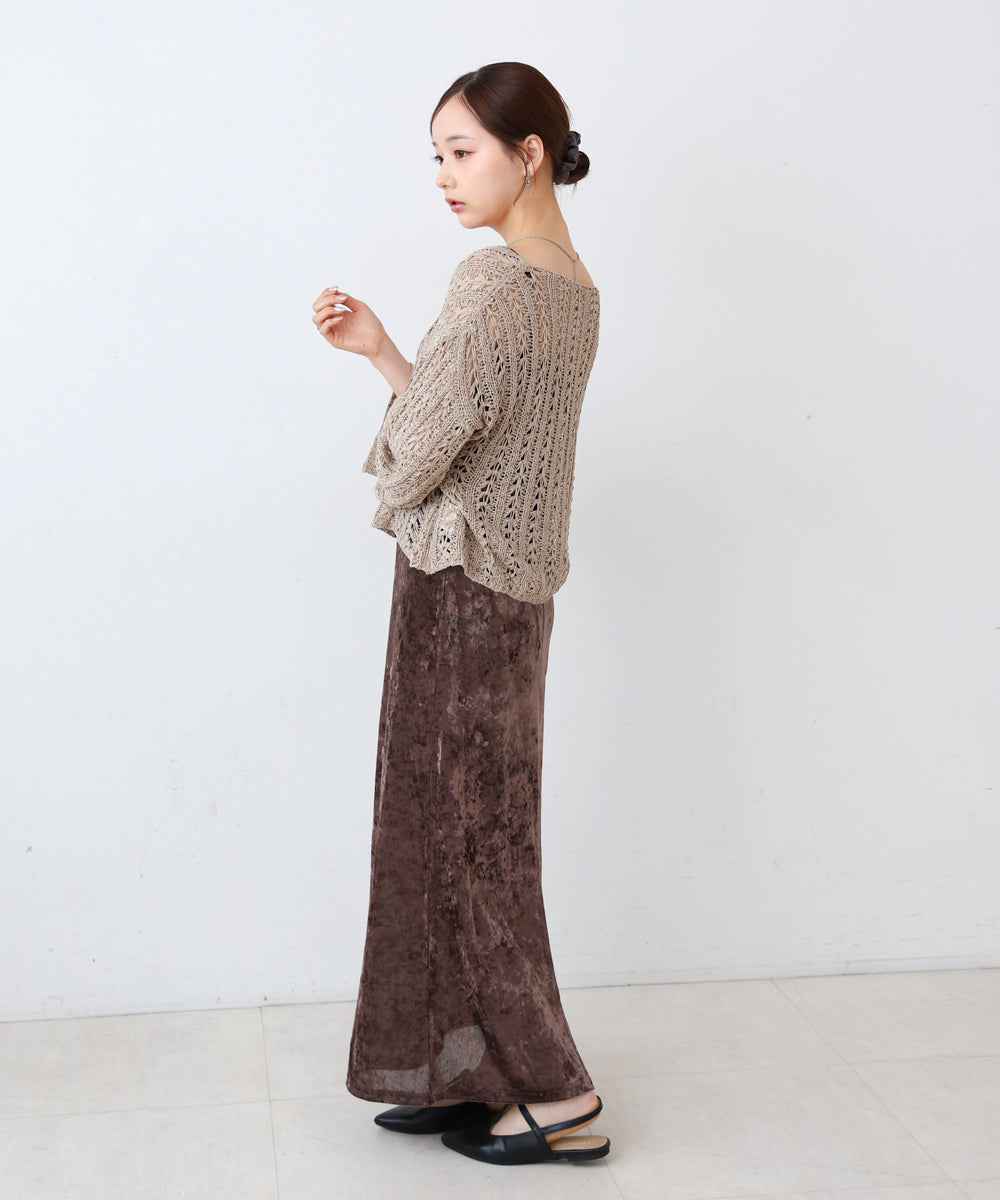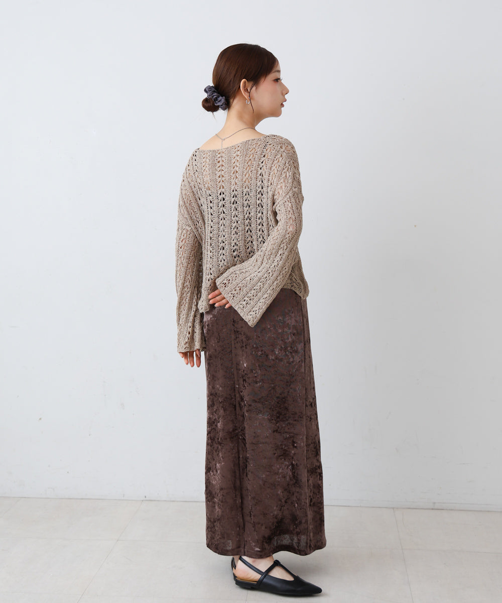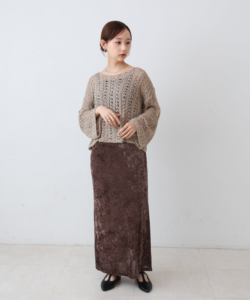 ストレッチ性のきいているニットトップスになっているので着心地よくご着用いただけます。